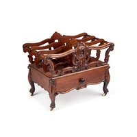 of typical rectangular form, raised on scroll legs. 28cm high, 78cm long, 43cm wide
