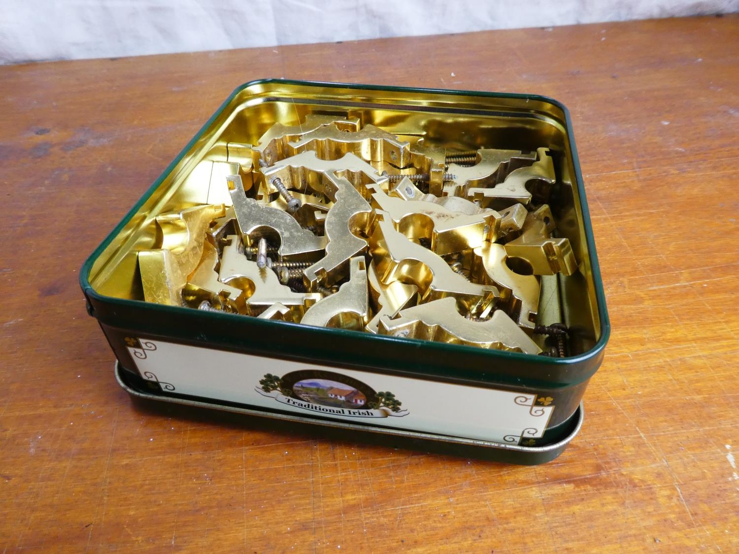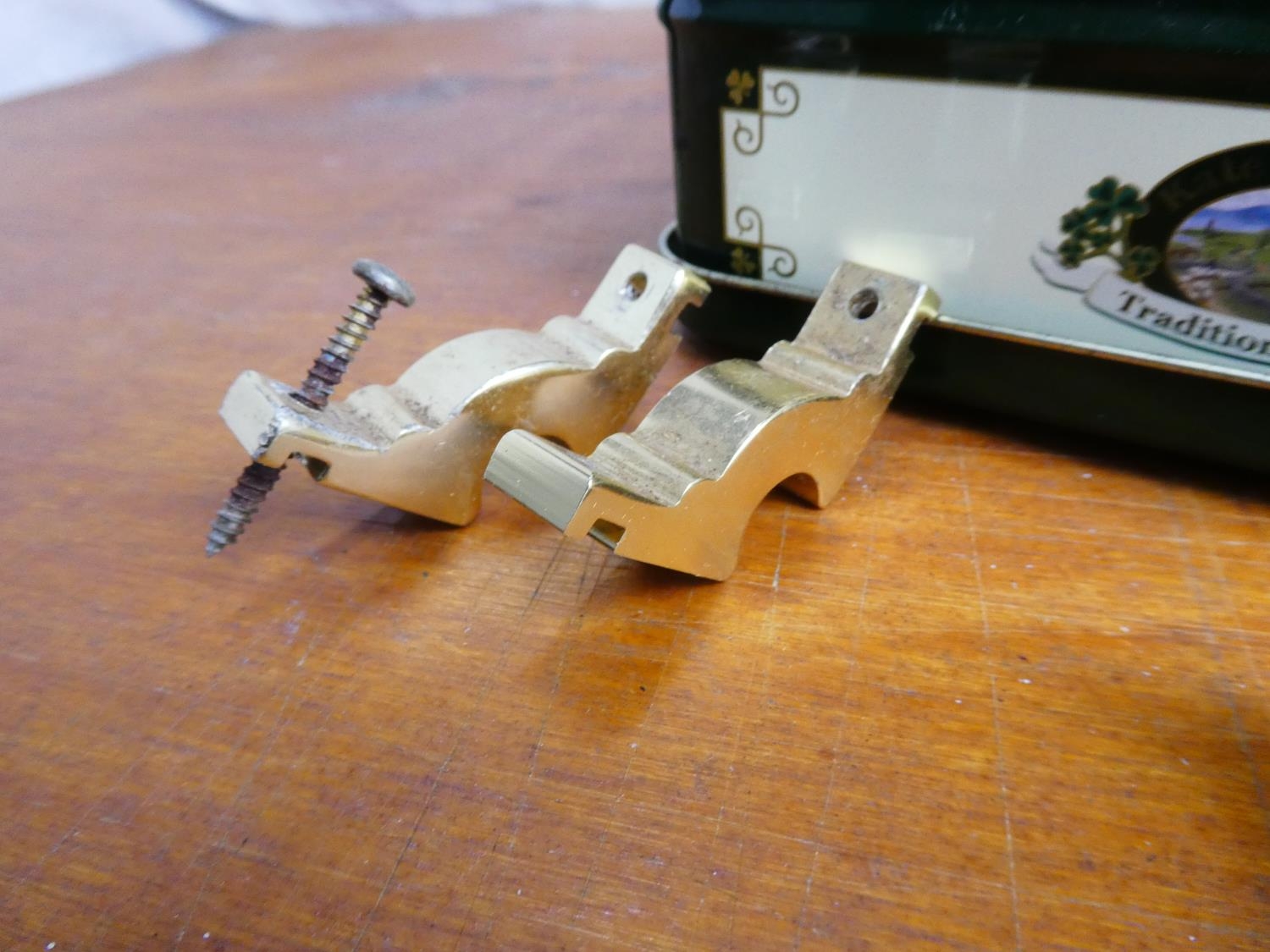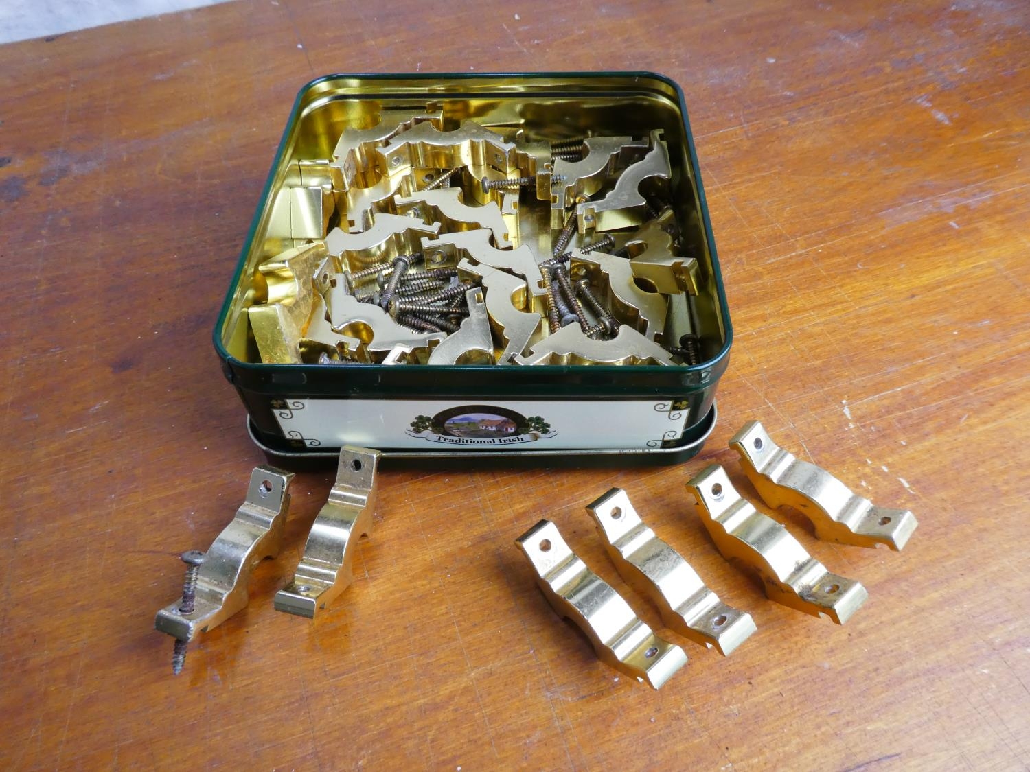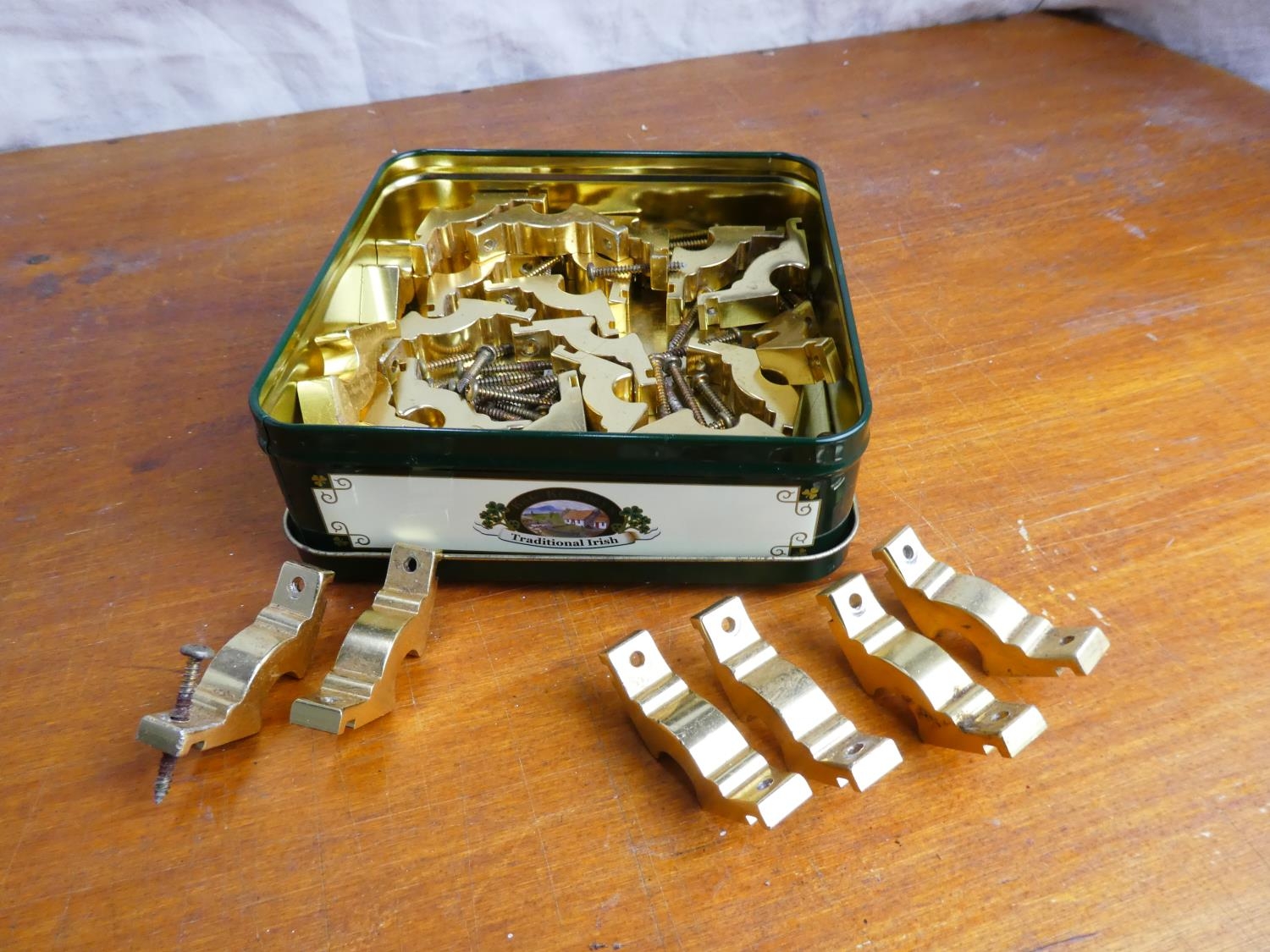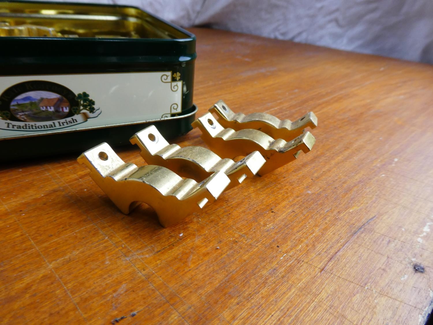 A lot of brass stair rod brackets.
