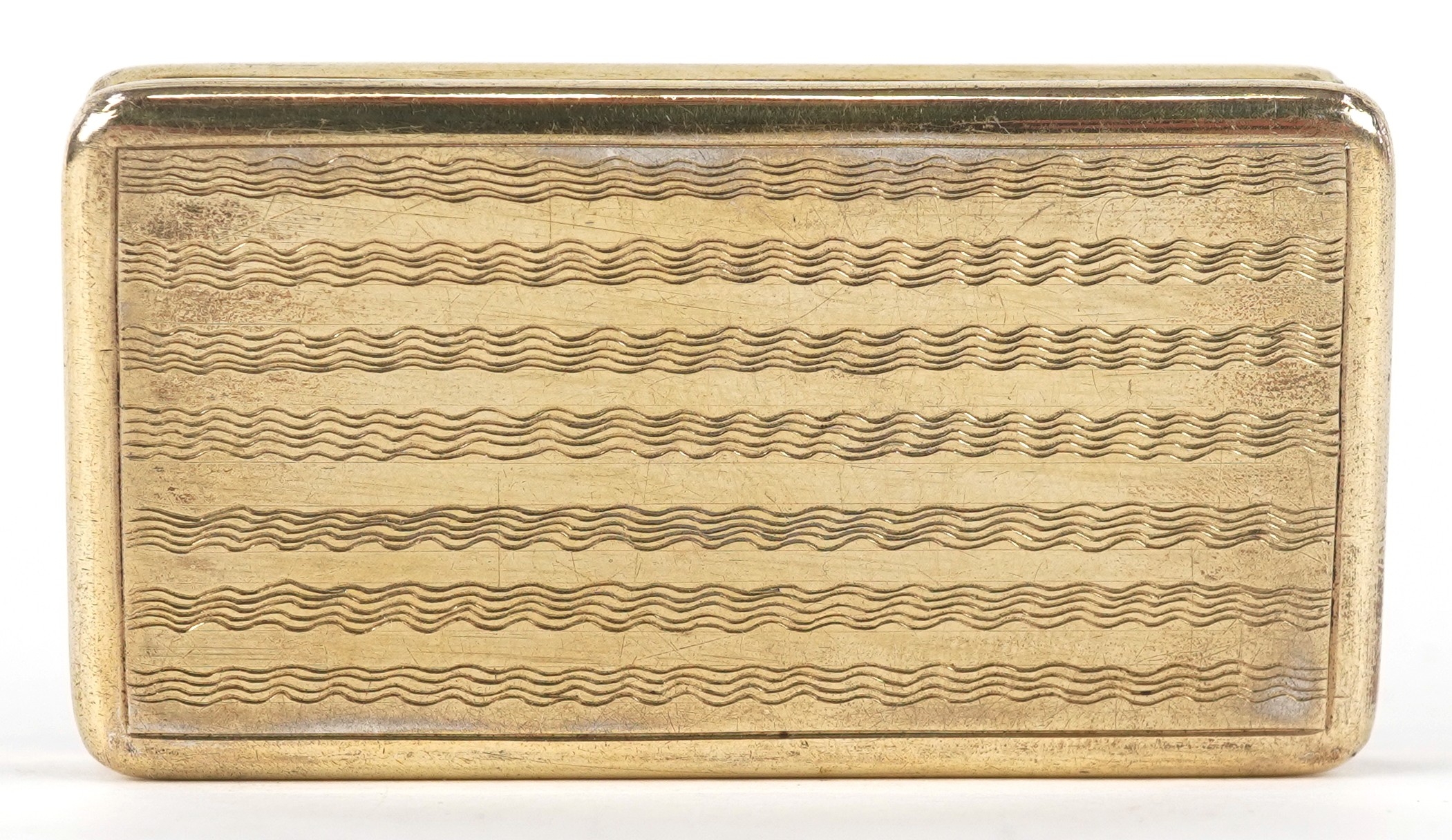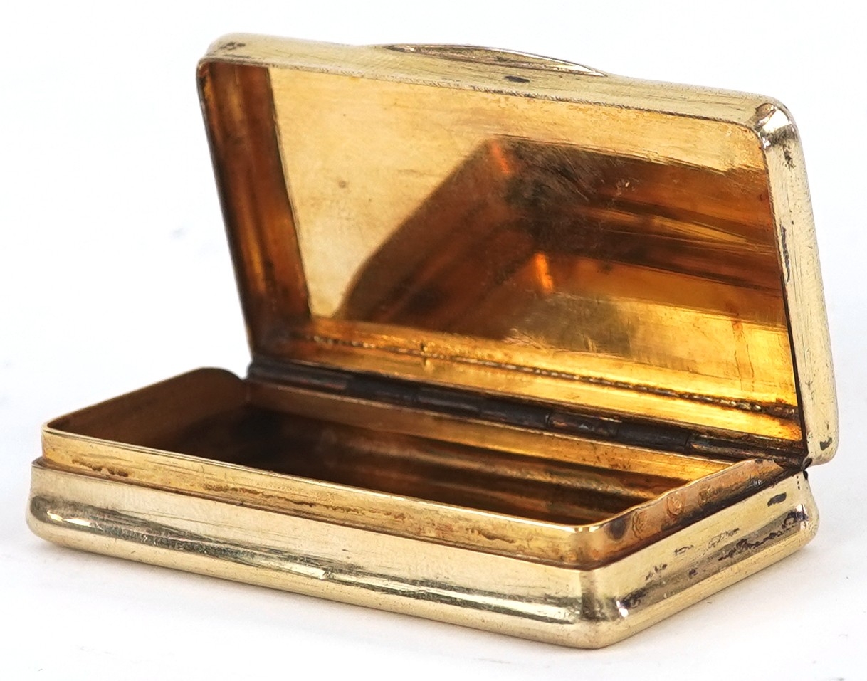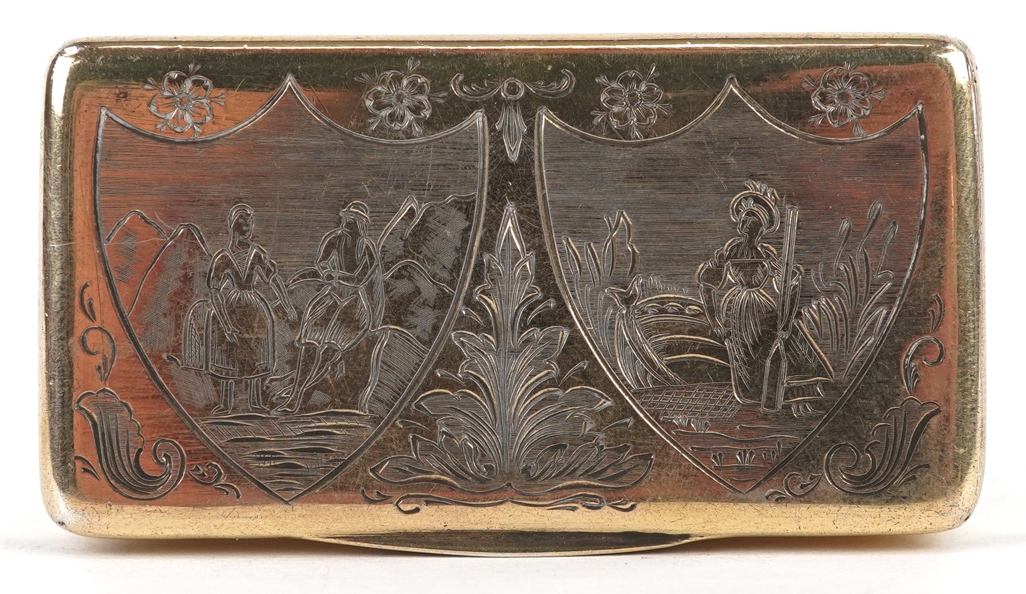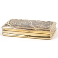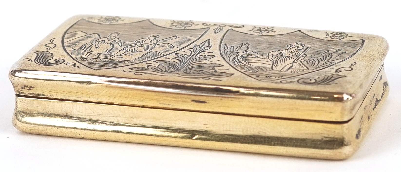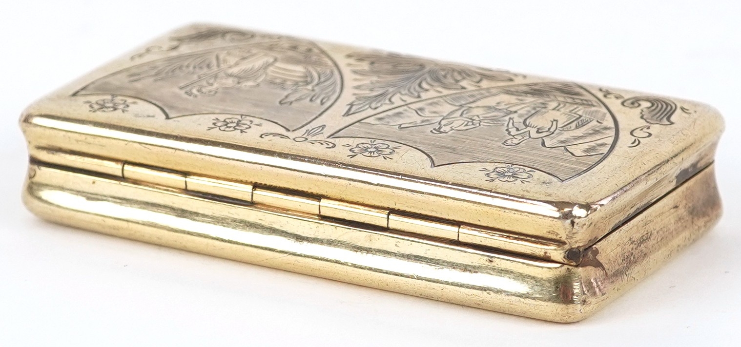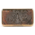 A 19th century Dutch silver gilt snuff box with engraved decoration, bearing marks to the interior, 6cm wide, 43.0g.