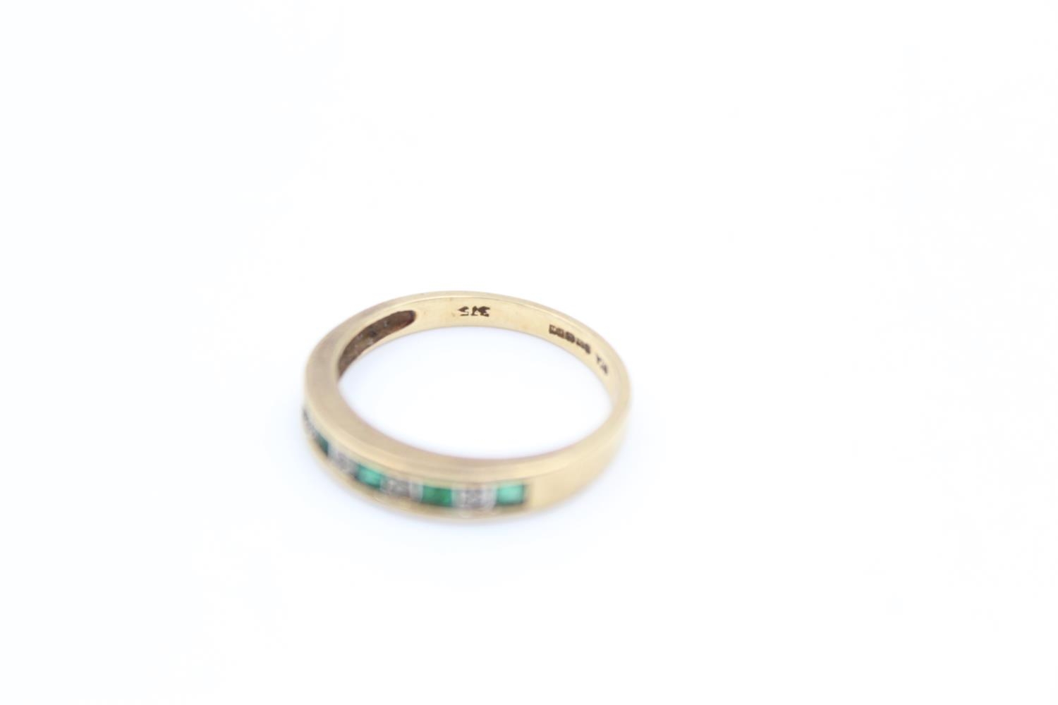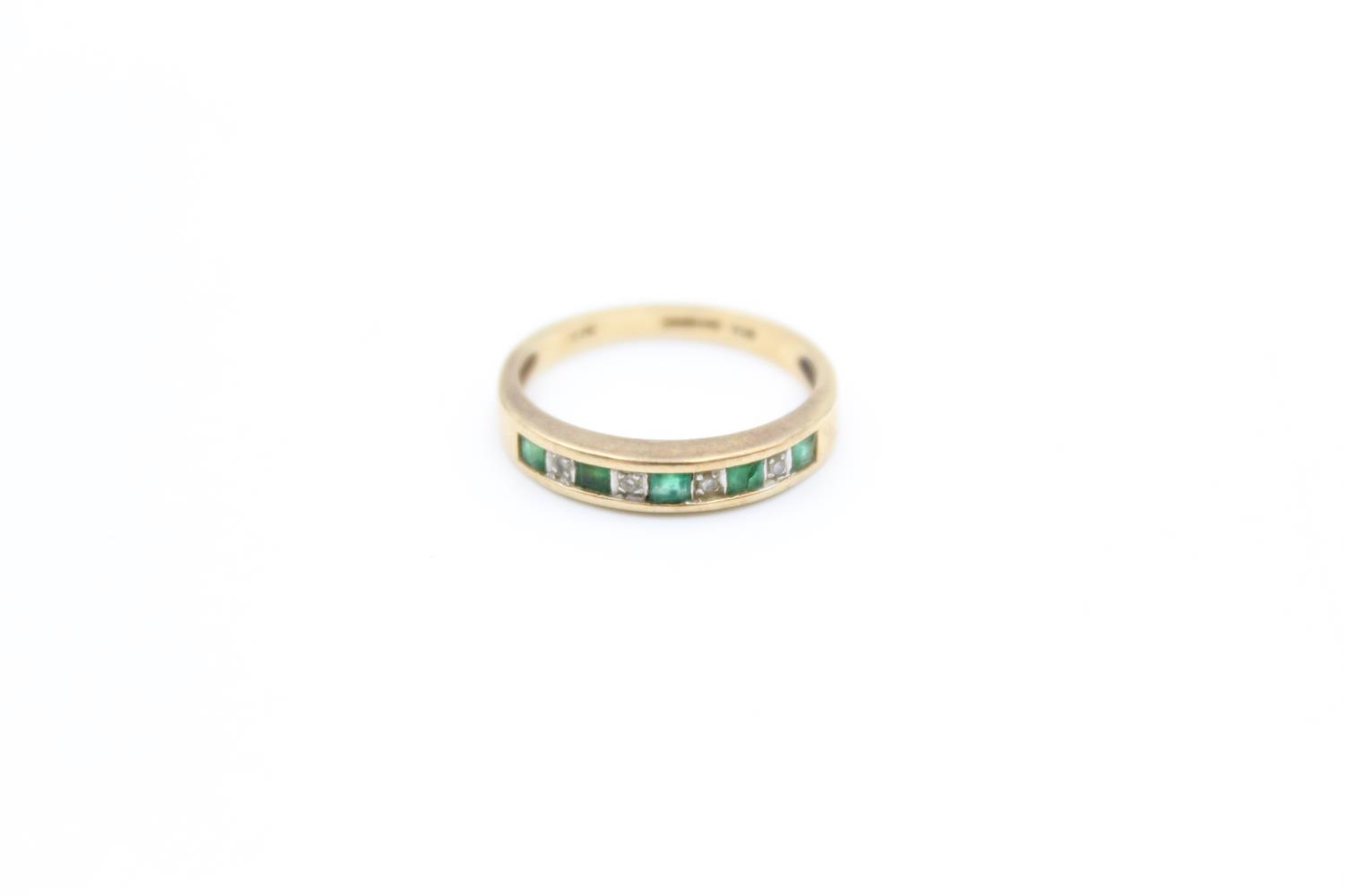 A 9ct gold emerald & diamond half eternity ring, size L - approx. gross weight 1.8 grams