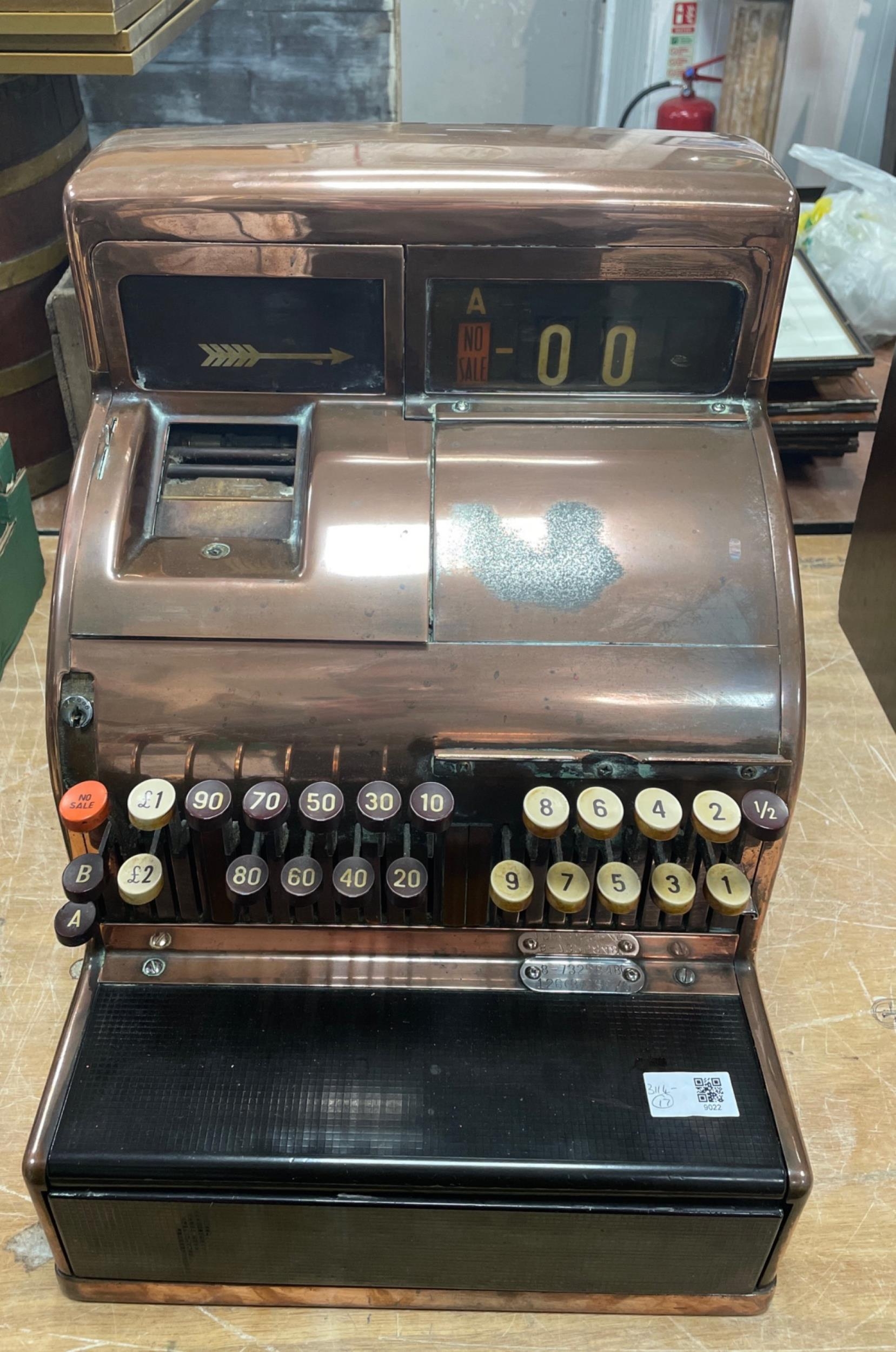 ANTIQUE! A BESPOKE and unique decorative COPPER cased NCR cash register (8-7325848C 126(3)2SP/5) stands 45Hx33Wx43cmD - safe to say 'ONE OF A KIND' with its copper casing! Till drawer 'opens on request'!