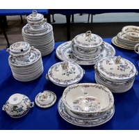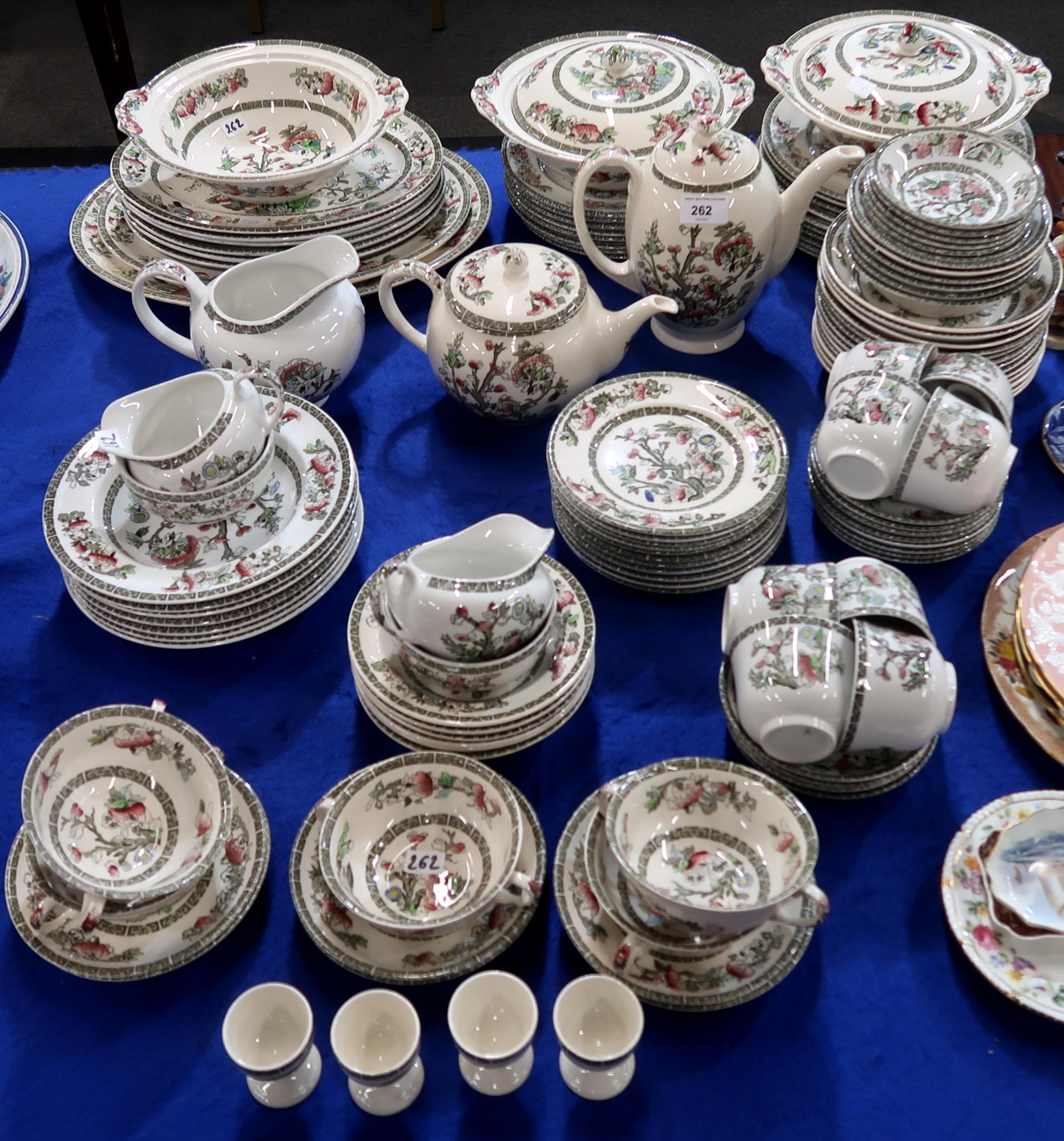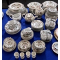 A quantity of Johnson Bros Indian Tree pattern tablewares including teapot, coffee pot, plates, bowls, tureens etc