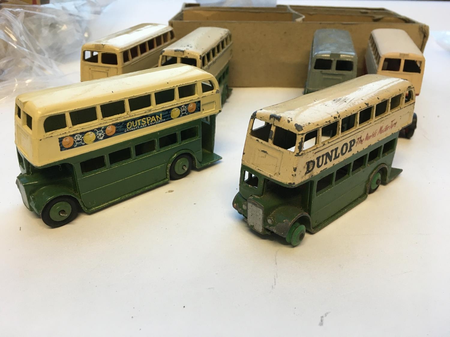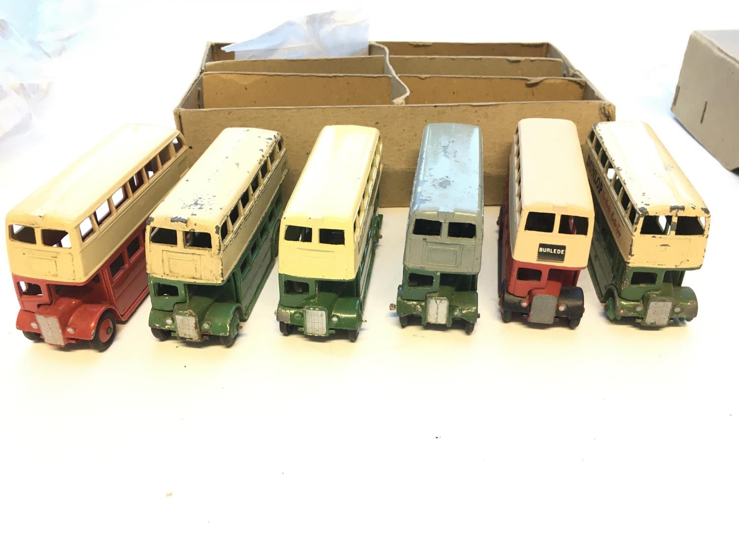 A Dinky Toys trade box containing 6 Double Deck Bus # 29C, playworn.