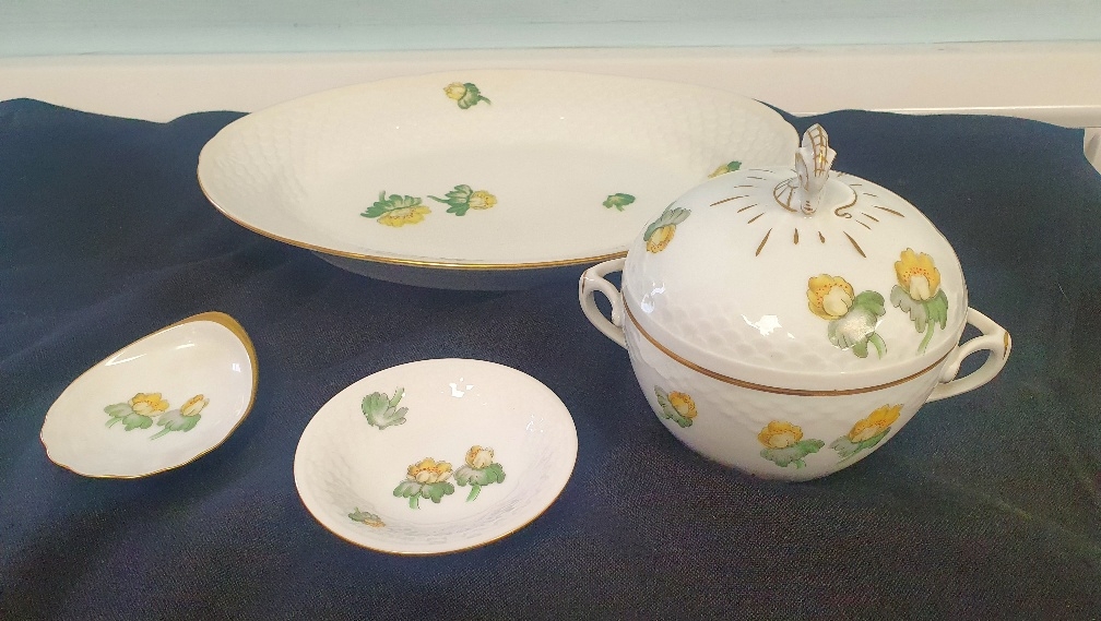 An amazing collection of approximately 220 Pieces of Bing and Grondahl Swedish Porcelain Tableware in the Erantis Design, including brochure and full product list