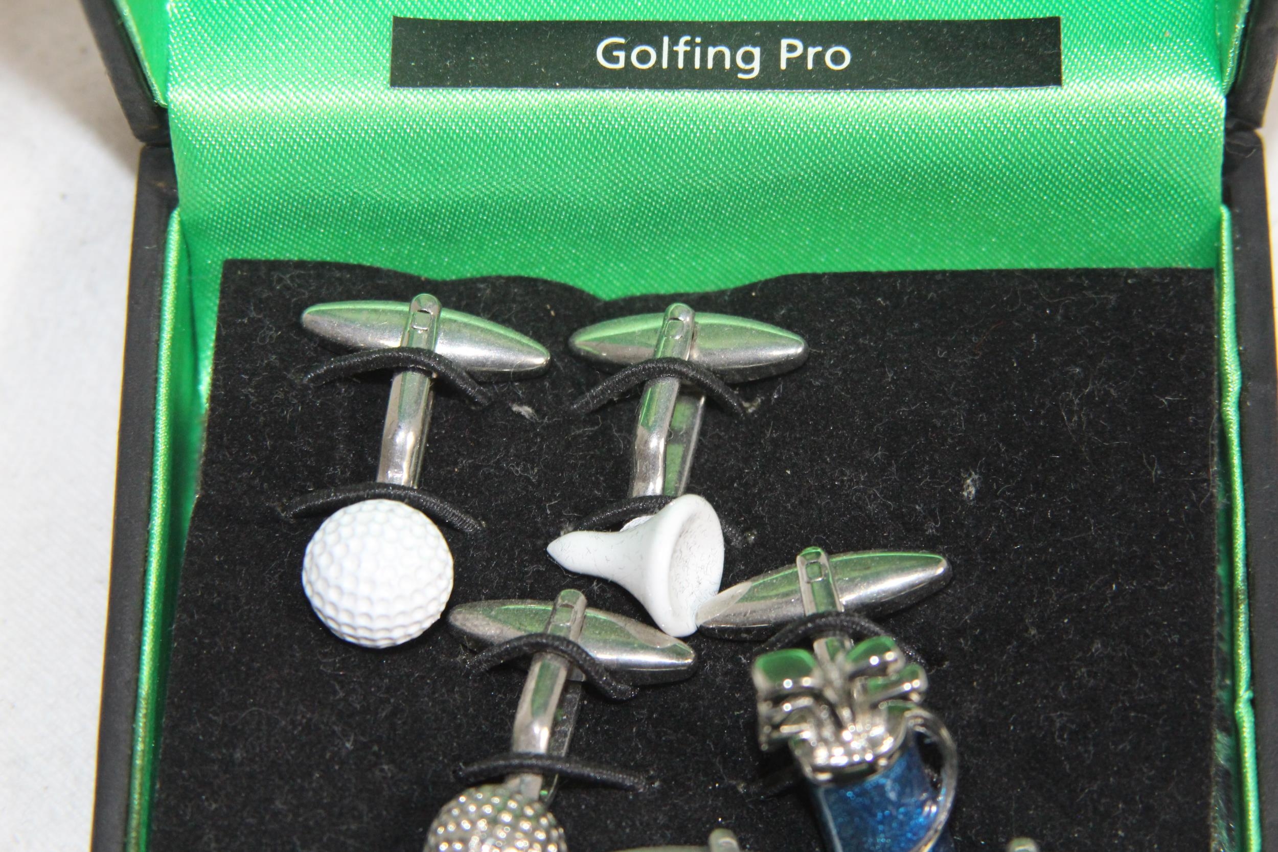 THOMAS NASH GOLFING PRO THREE PAIRS OF CUFFLINKS IN PRESENTA...