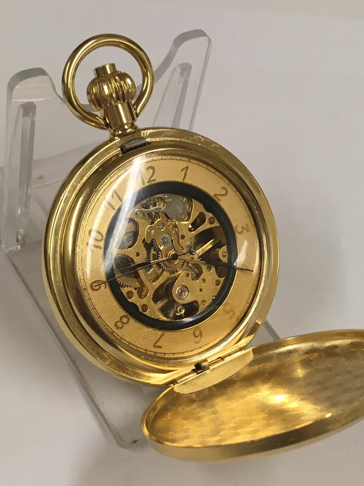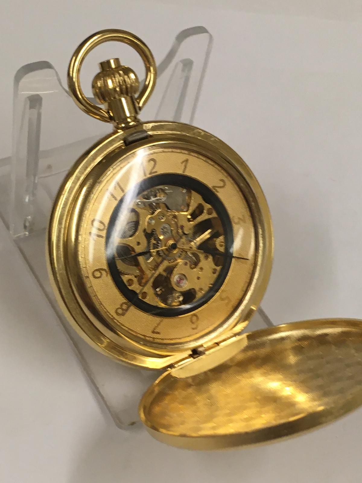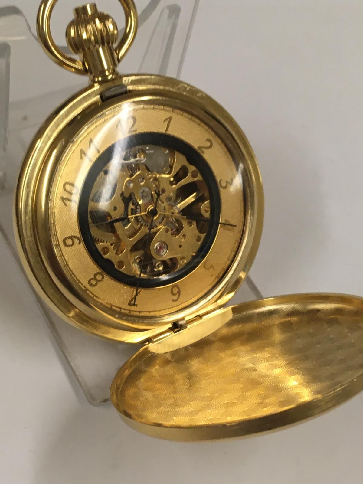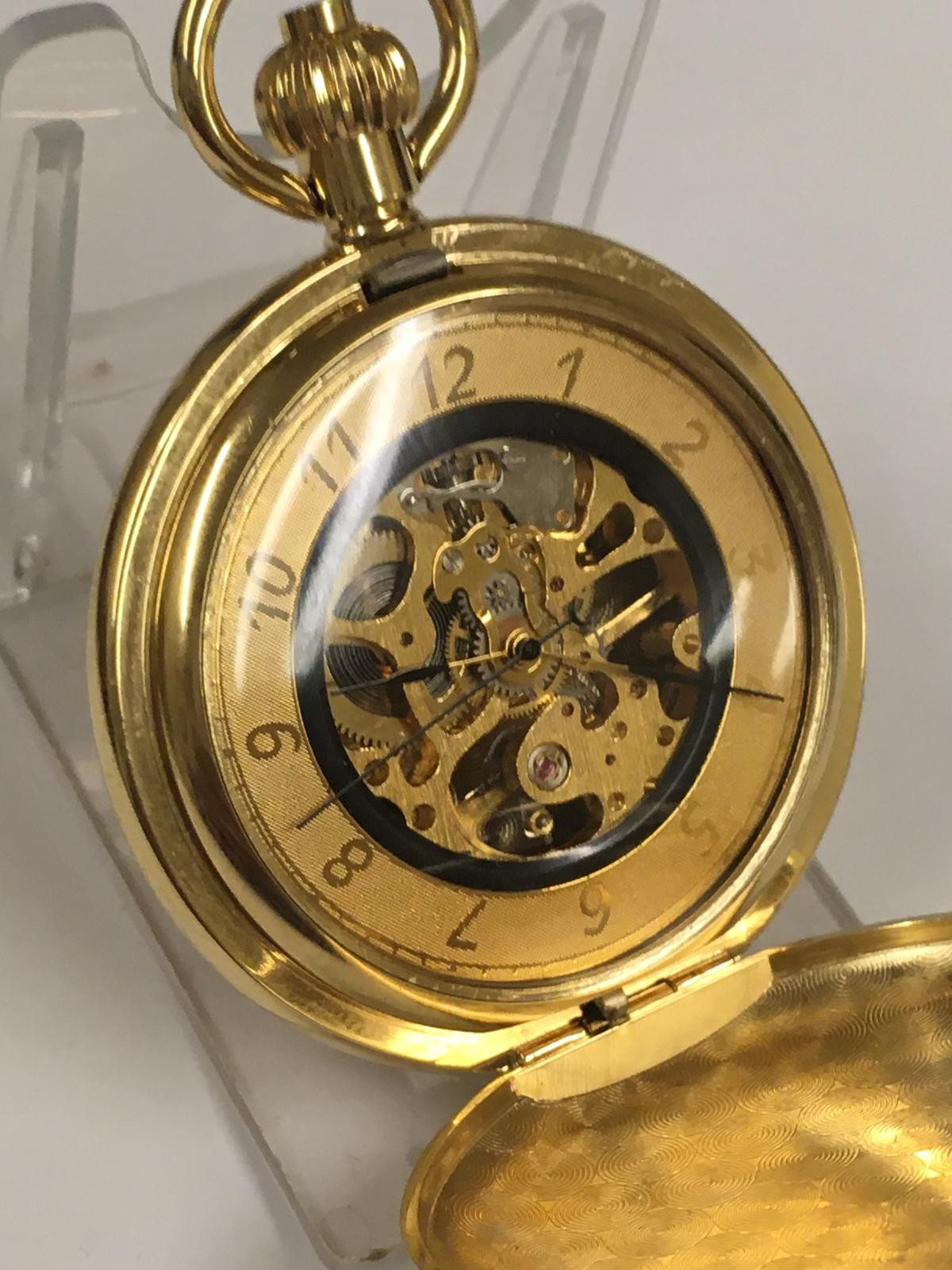 Skeletonised full hunter pocket watch working