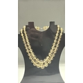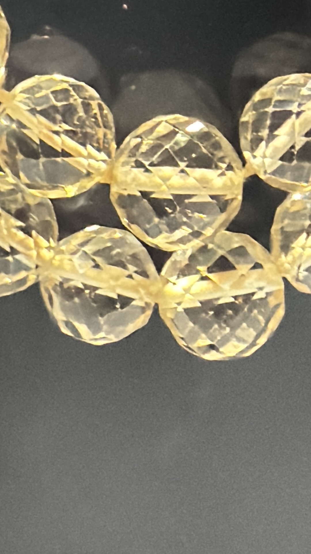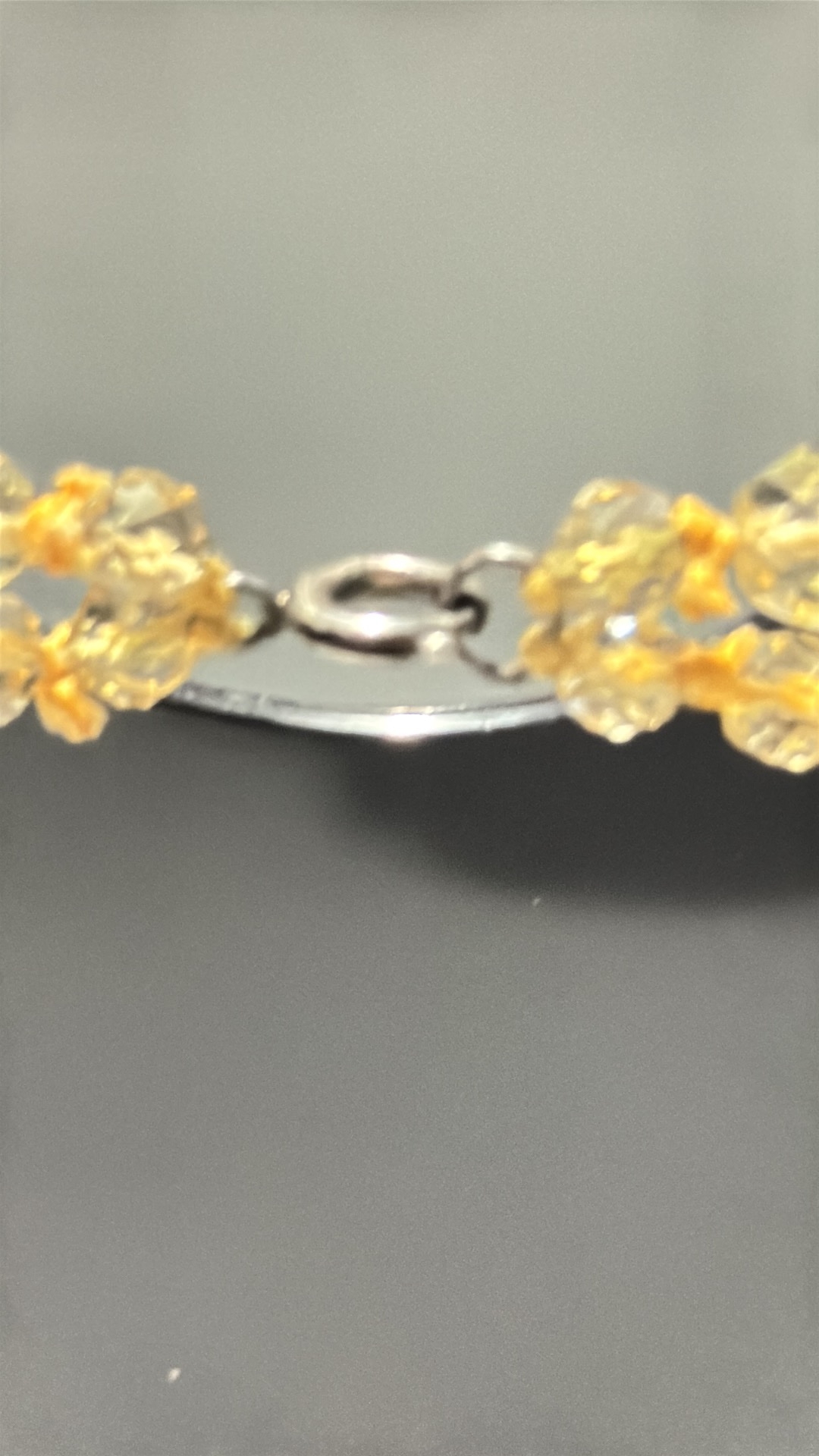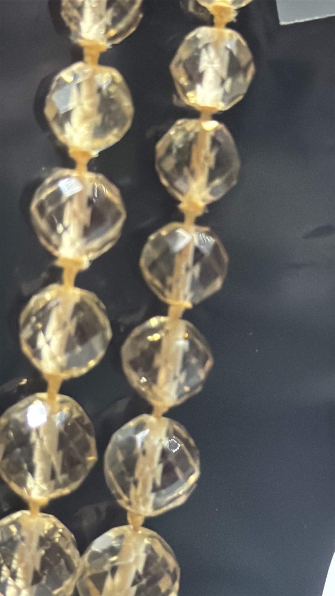 Double-strand necklace of faceted citrine coloured crystal beads, the graduated strands secured by a silver-tone spring-ring clasp.