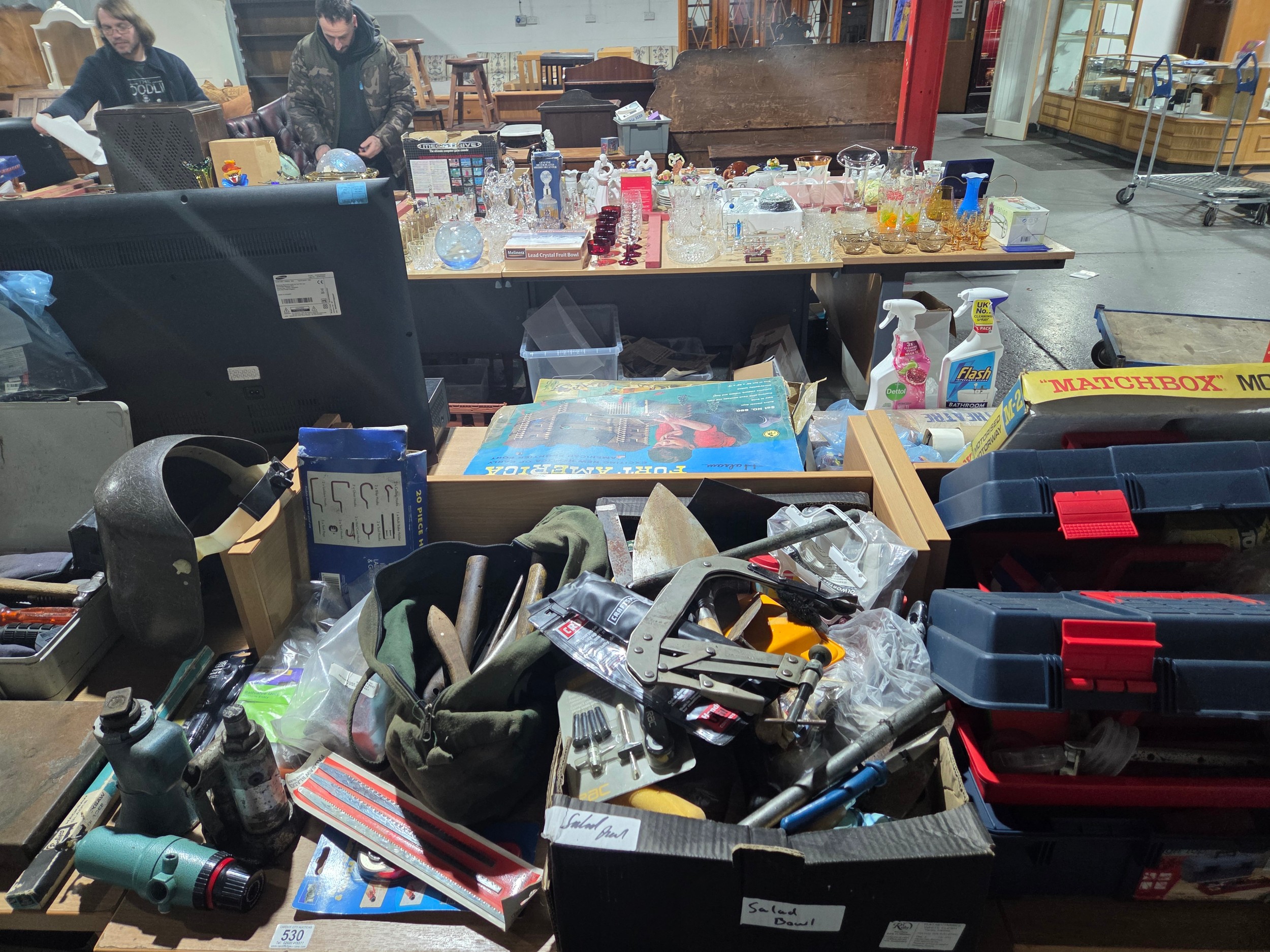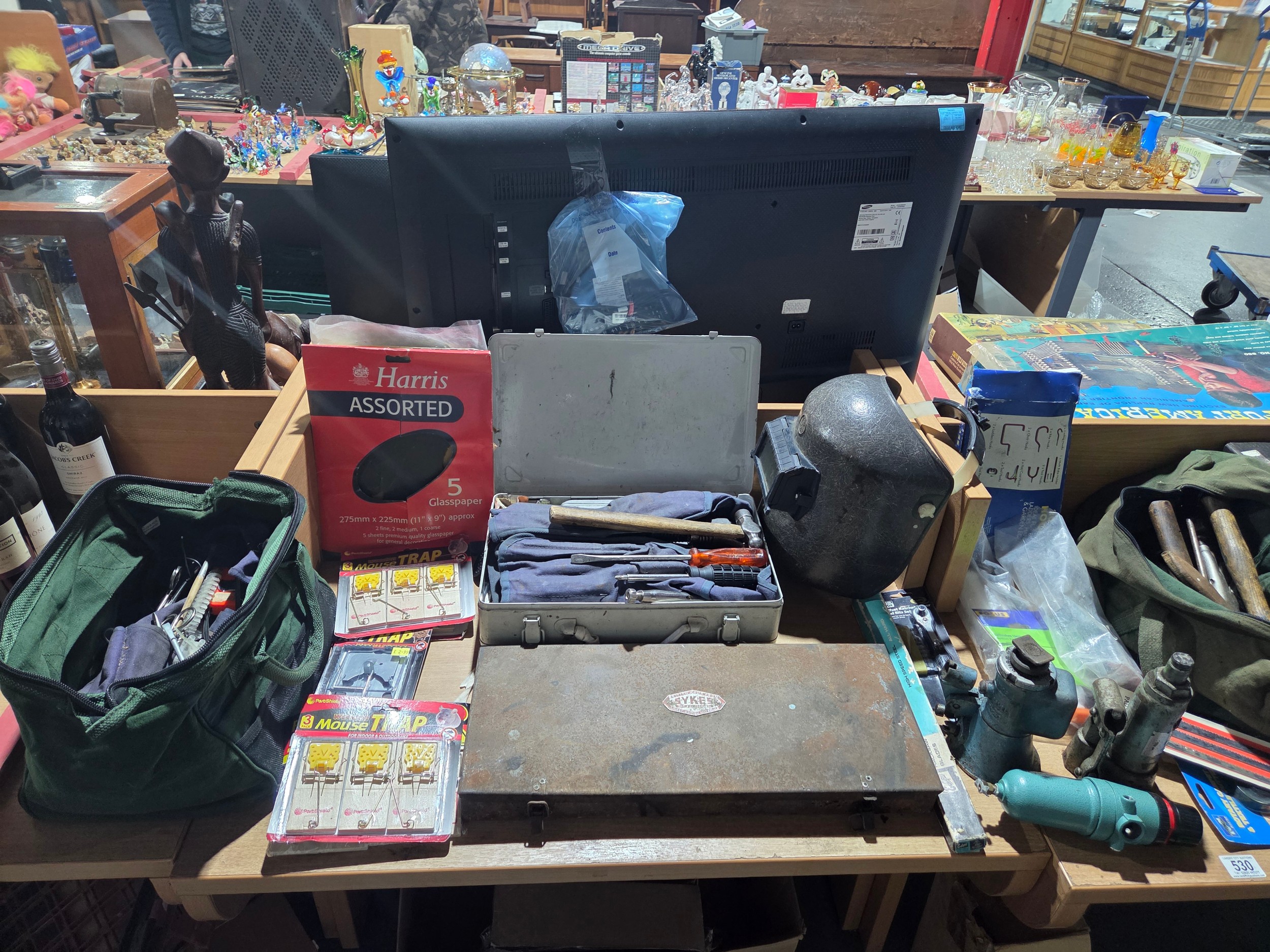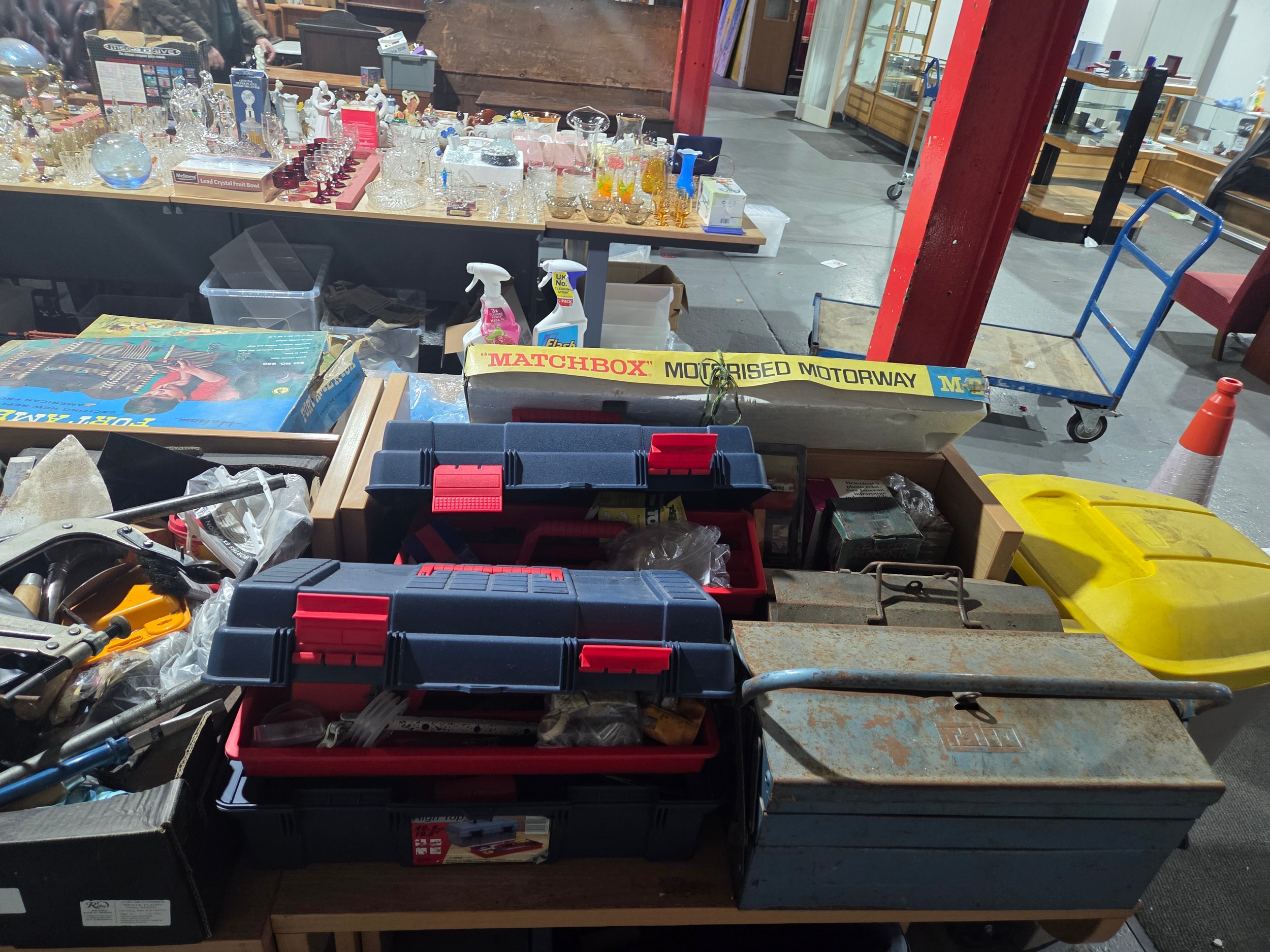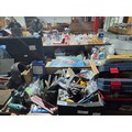 A selection of hand tools to include trowels, screwdrivers, hammers, clamps with toolboxes