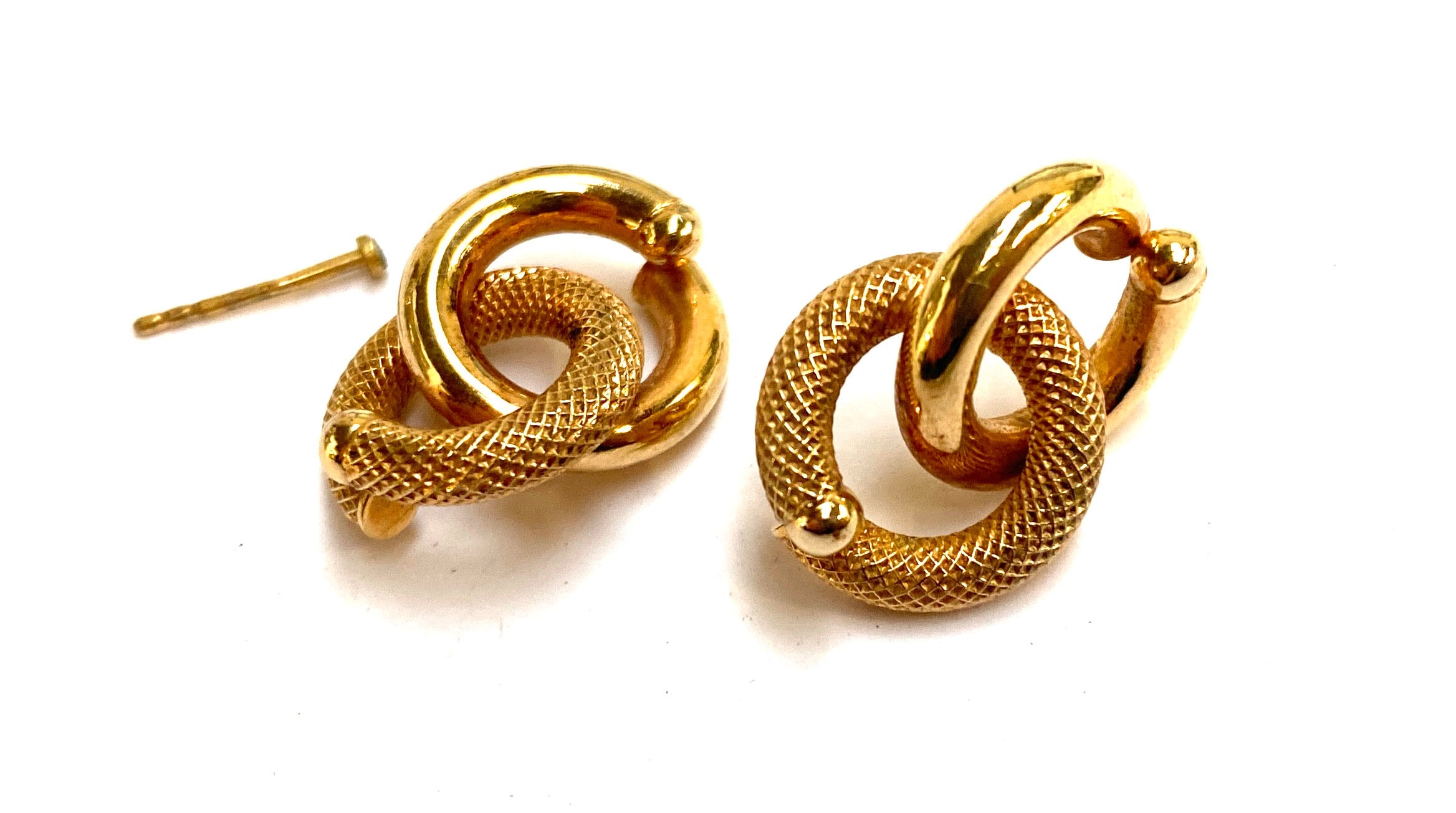 A pair of 9ct gold Unoaerre earrings (one post AF), gross weight 2.2g