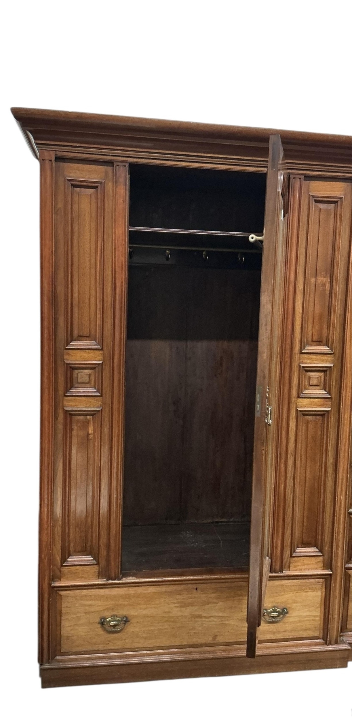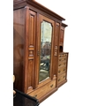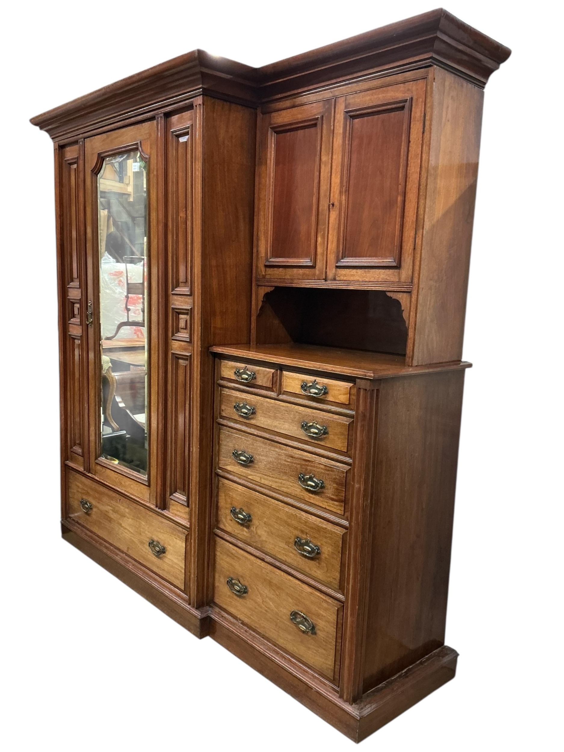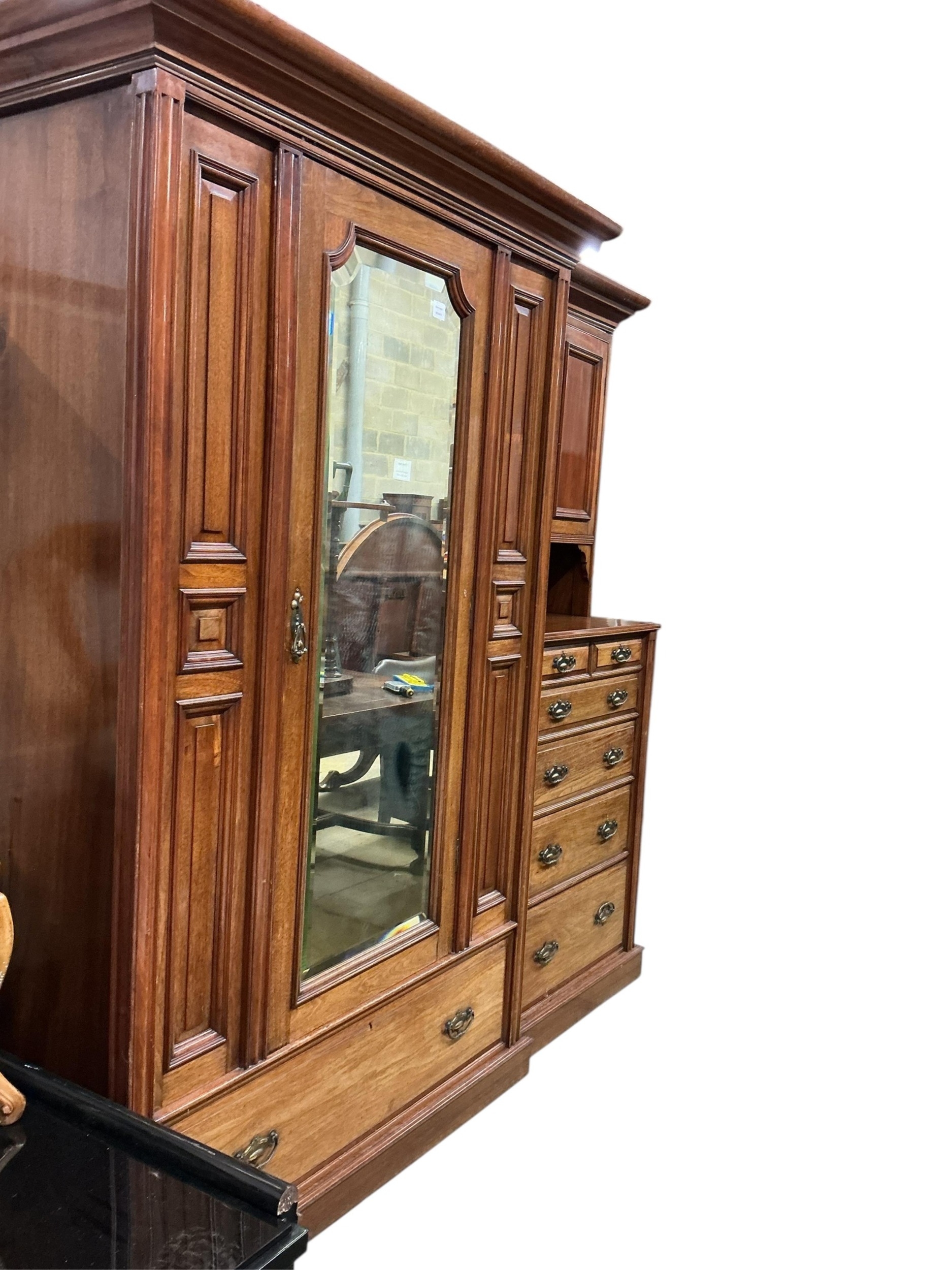 A late Victorian walnut mirrored compactum wardrobe, width 212cm, depth 56cm, height 211cm