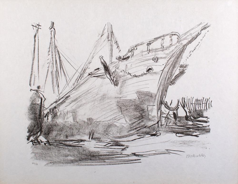 *Oskar Kokoschka (Austrian, 1886-1980) Apulia - Boat shaped like a dolphin (Schiff wie ein Delphin), 1963 signed and edition numbered 44/50 in pencil limited edition lithograph 49 x 64.5