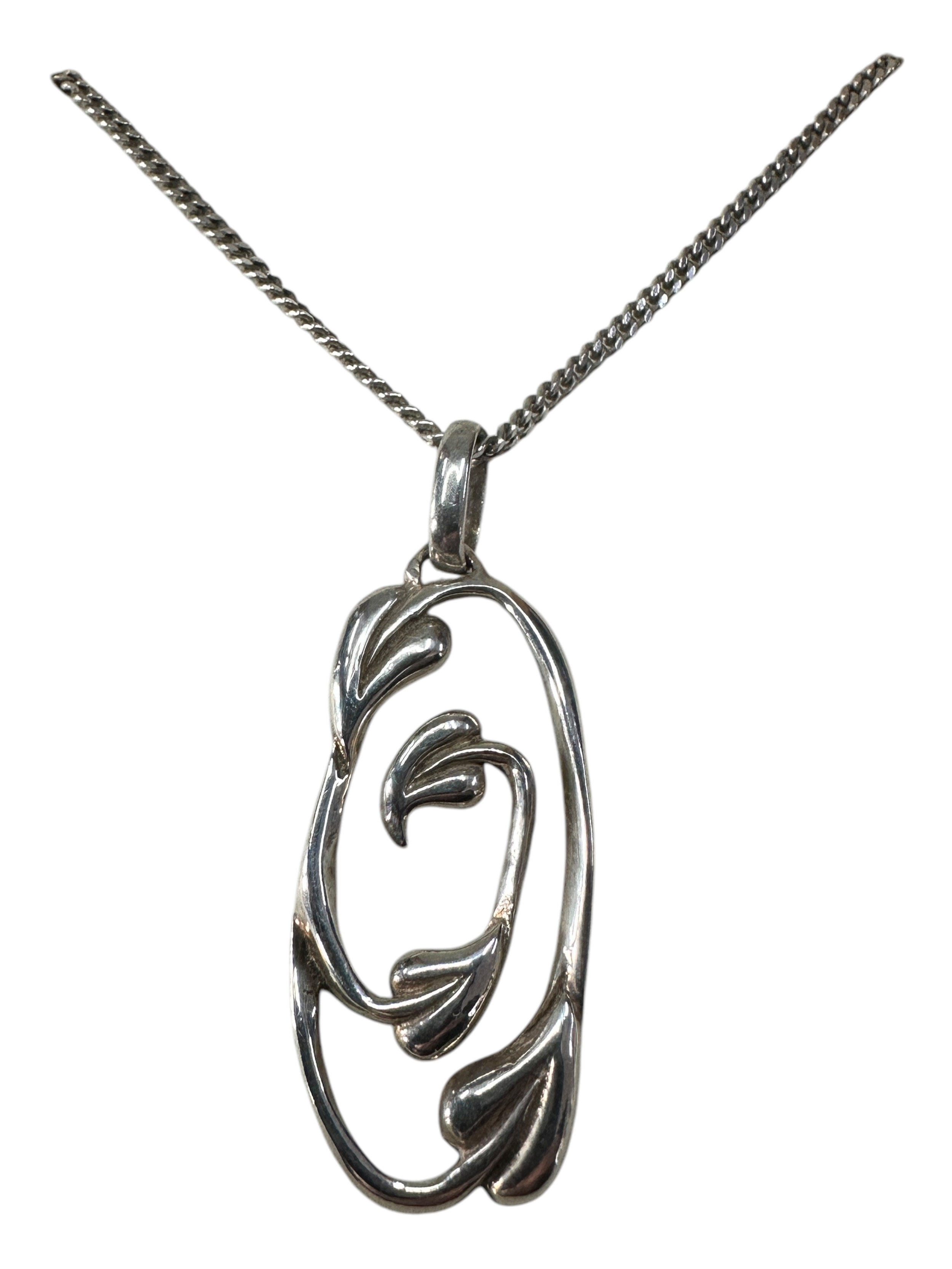 Art Nouveau Style 925 Silver Pendant & Chain with Makers Mark to Reverse