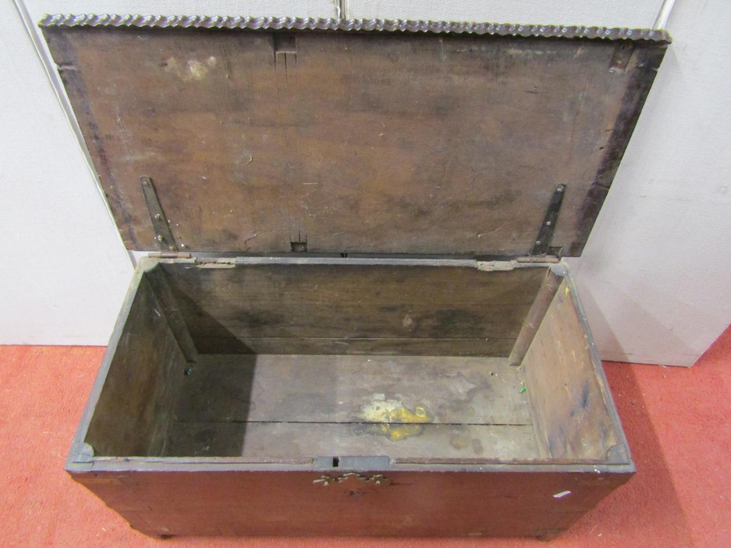 A 19th century hardwood Anglo-Indian coffer, with inset brass banded borders, 75cm wide