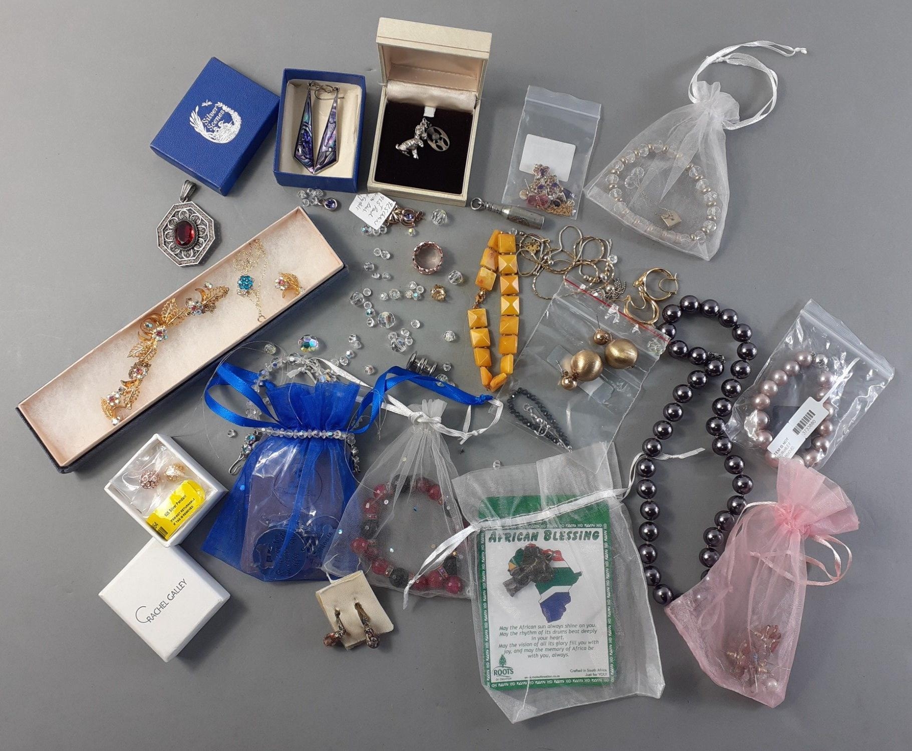 A box of jewellery containing pretty bracelets, pendants and other interesting items