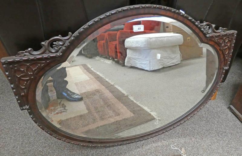 LATE 19TH/ EARLY 20TH CENTURY CARVED MAHOGANY FRAMED MIRROR WIDTH 93CM X HEIGHT 65CM