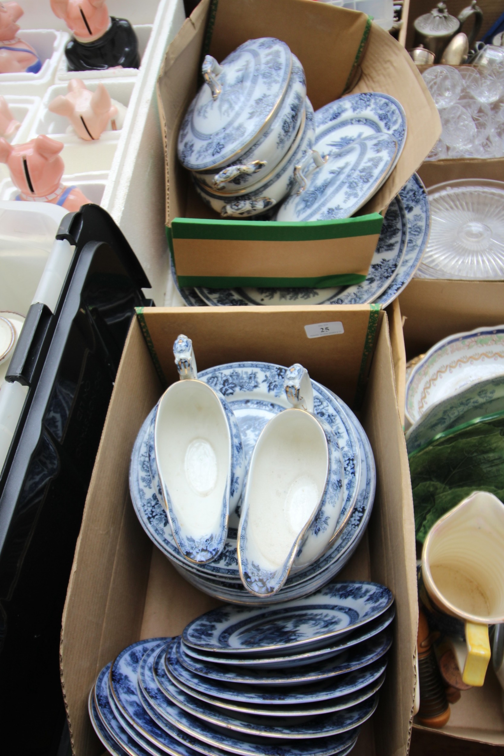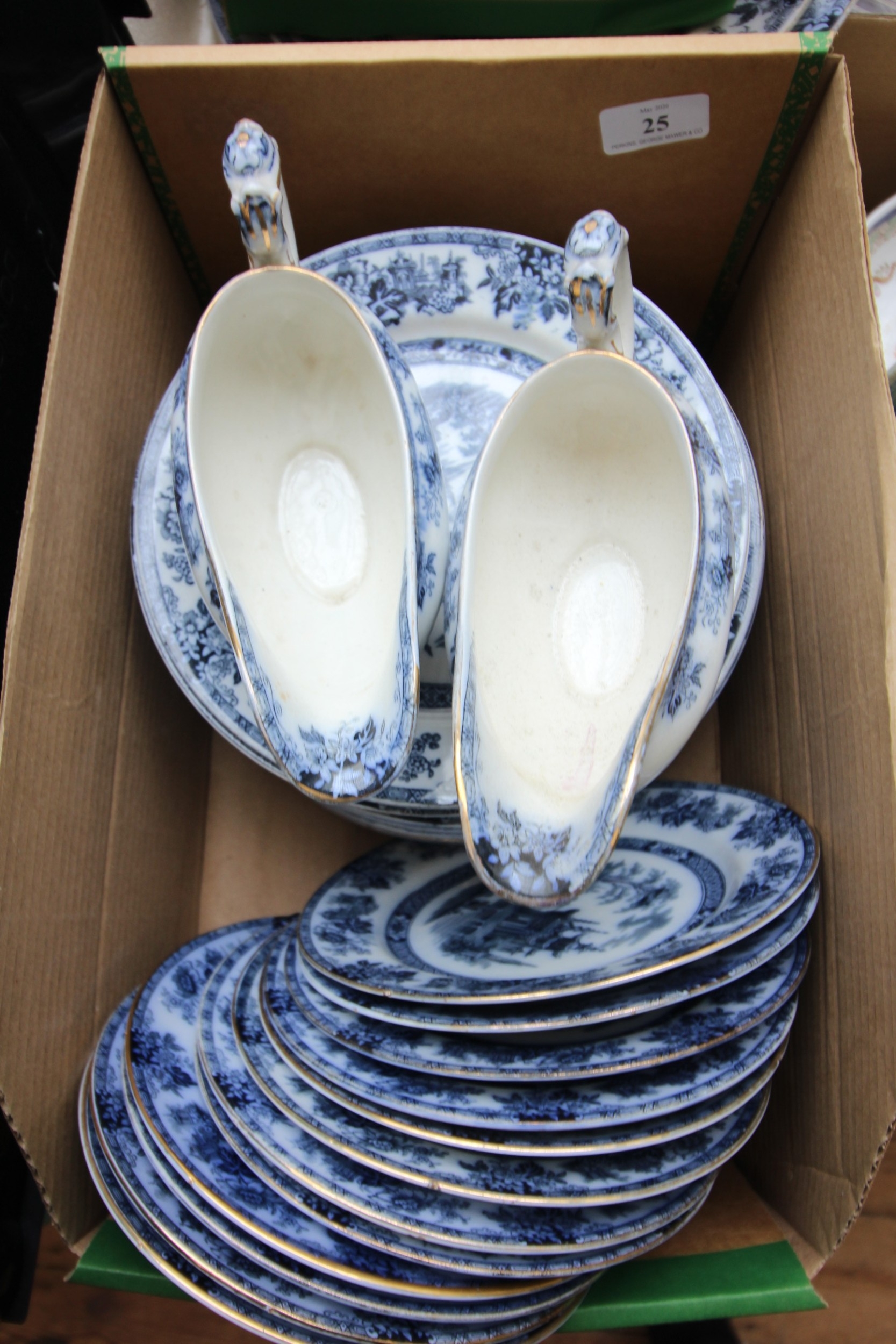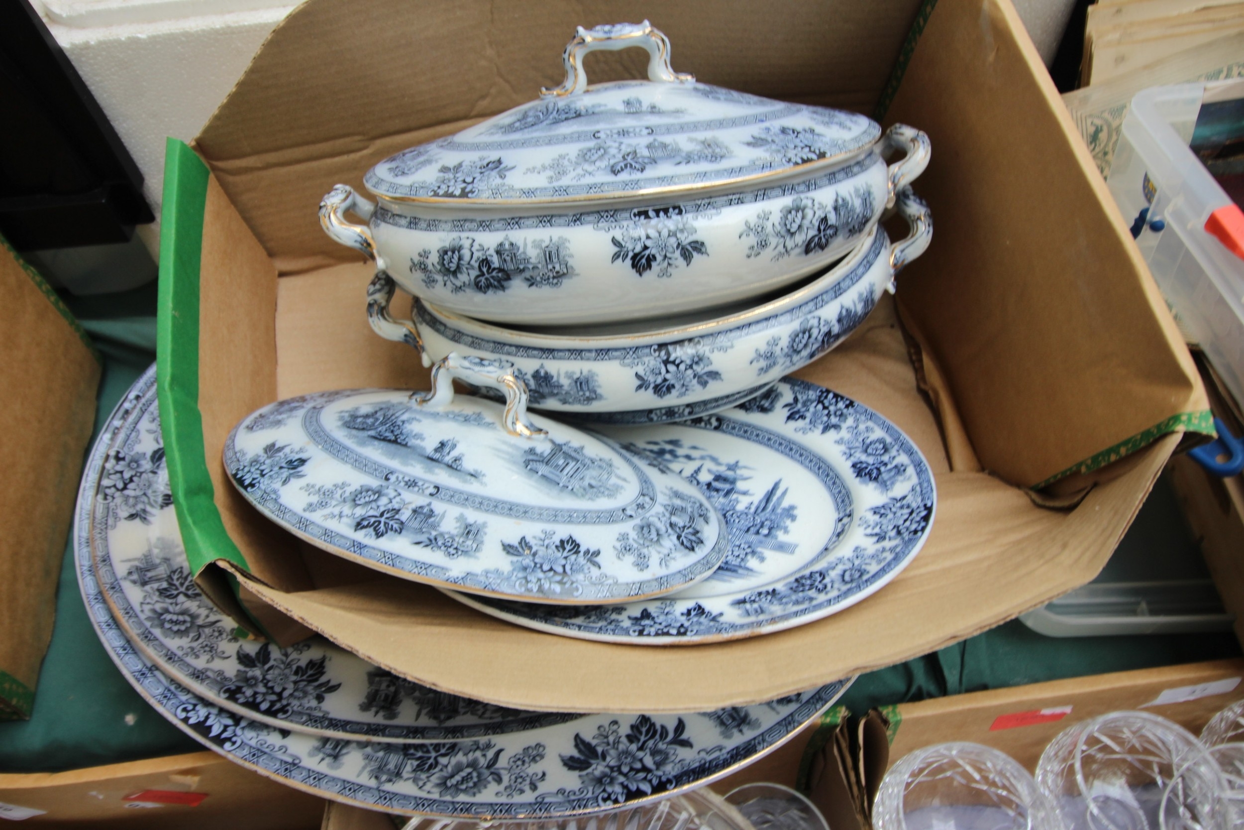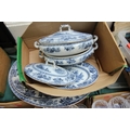Large selection of Chinese dinner plates, tureens, meat dishes and gravy boats (2 boxes)
