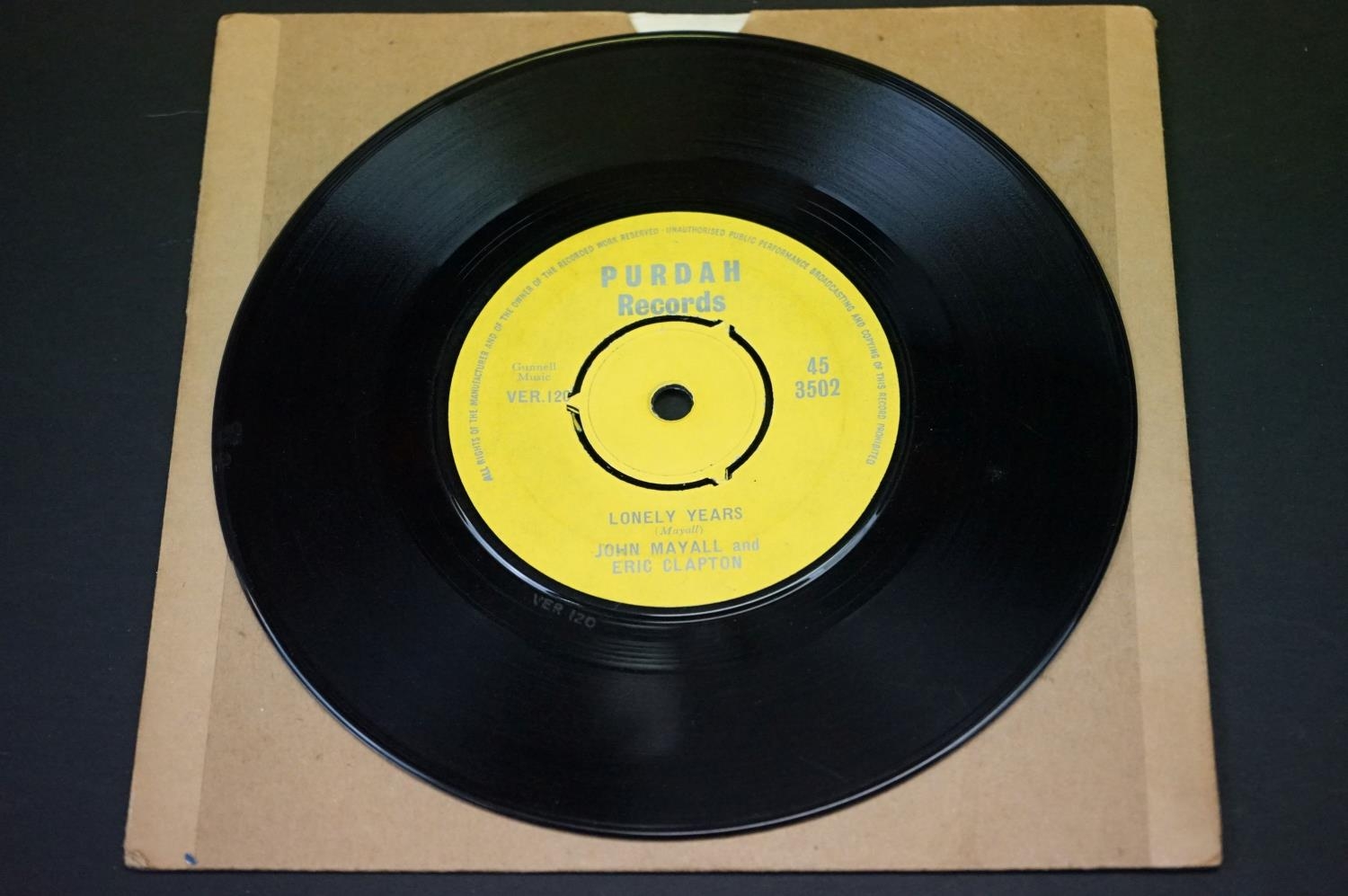 Vinyl - John Mayall And Eric Clapton - Lonely Years / Bernard Jenkins. Original UK 1st pressing of 99 copies on Purdah Records 45 3502. VG with many light non-feelable marks, and name written on side A. label.