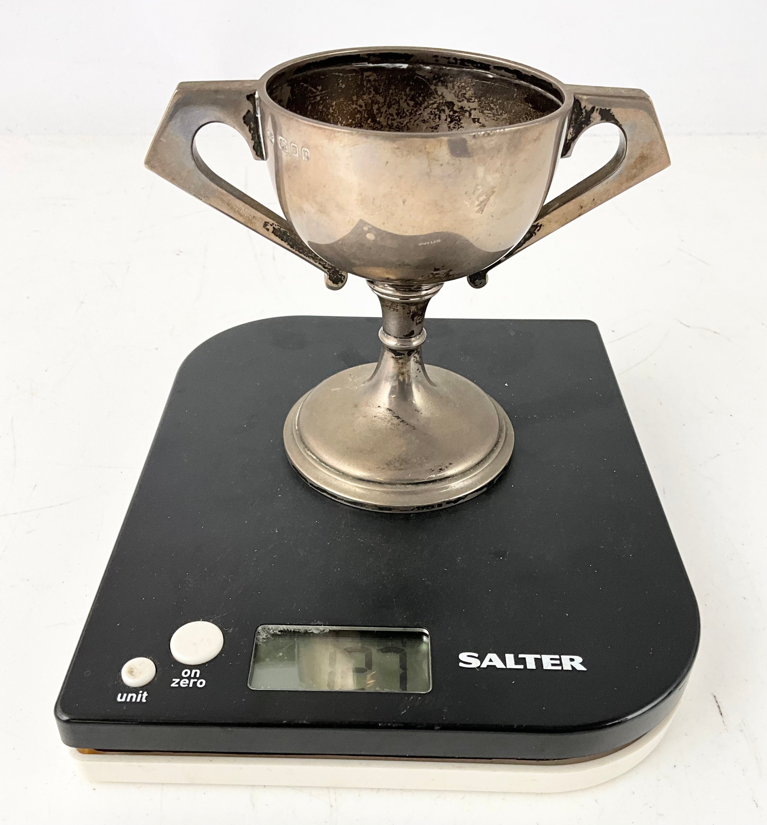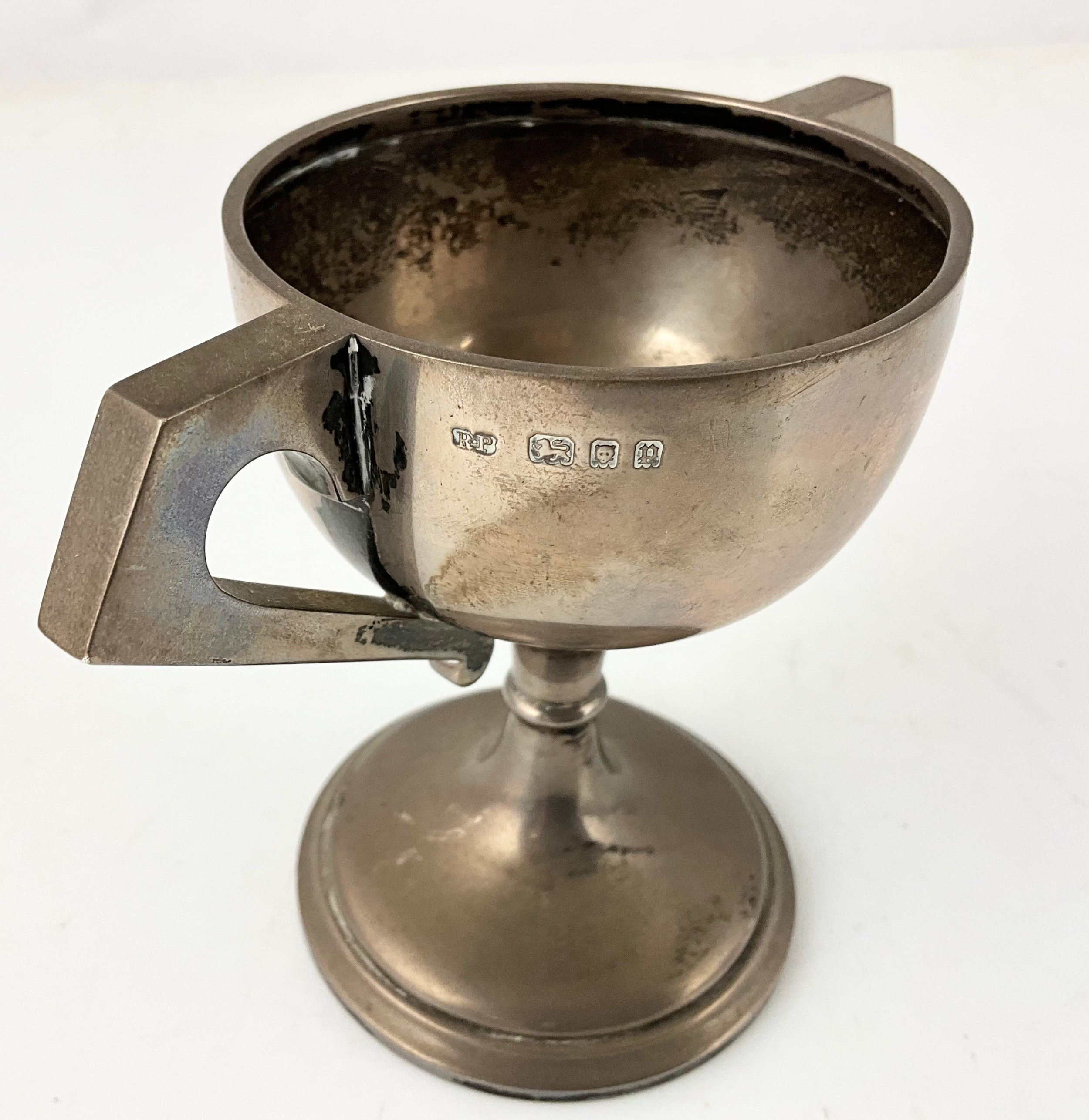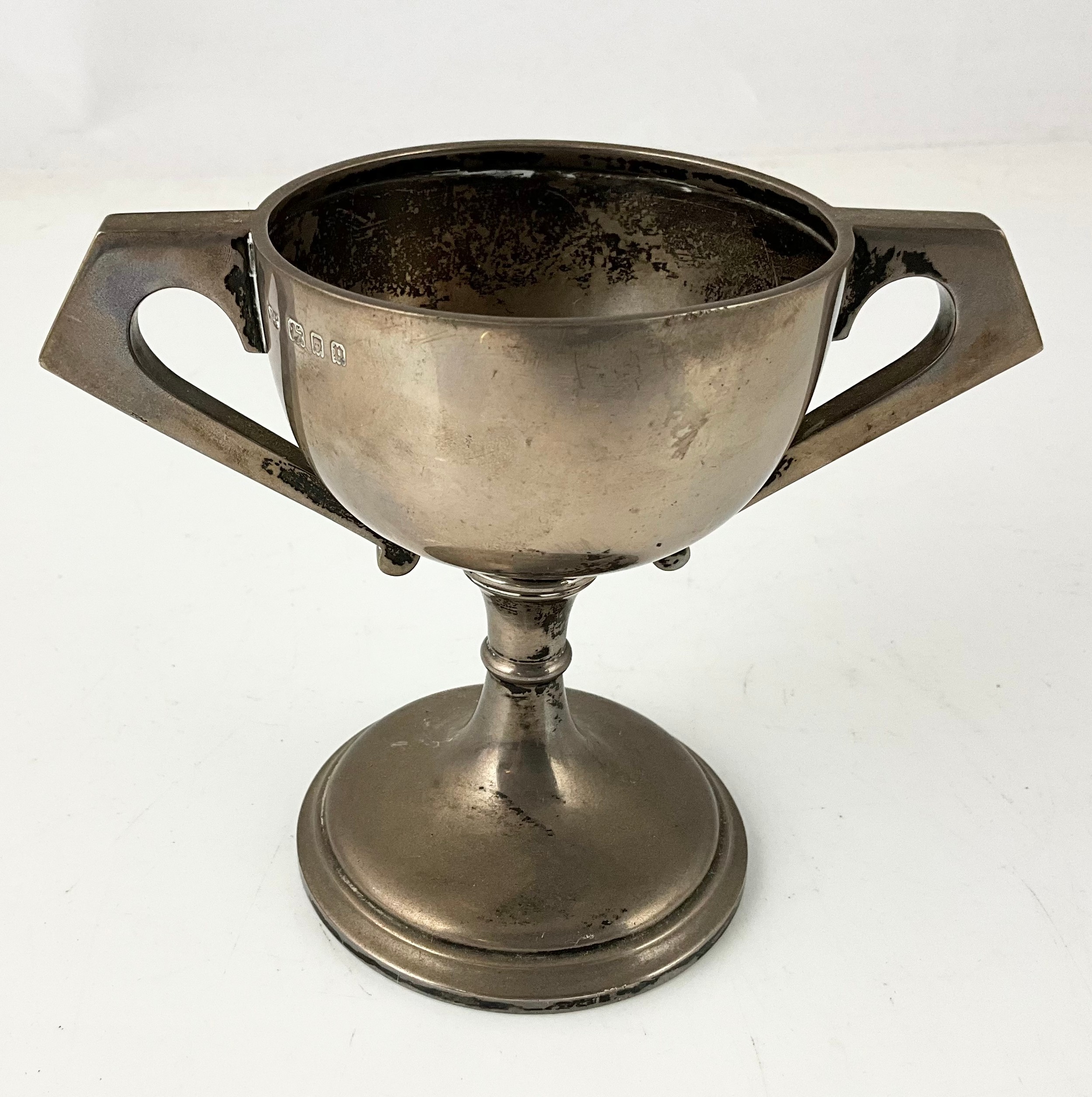 HALLMARKED ROBERT PRINGLE LONDON 1930 SILVER ART DECO 2 HANDLED TROPHY 126g