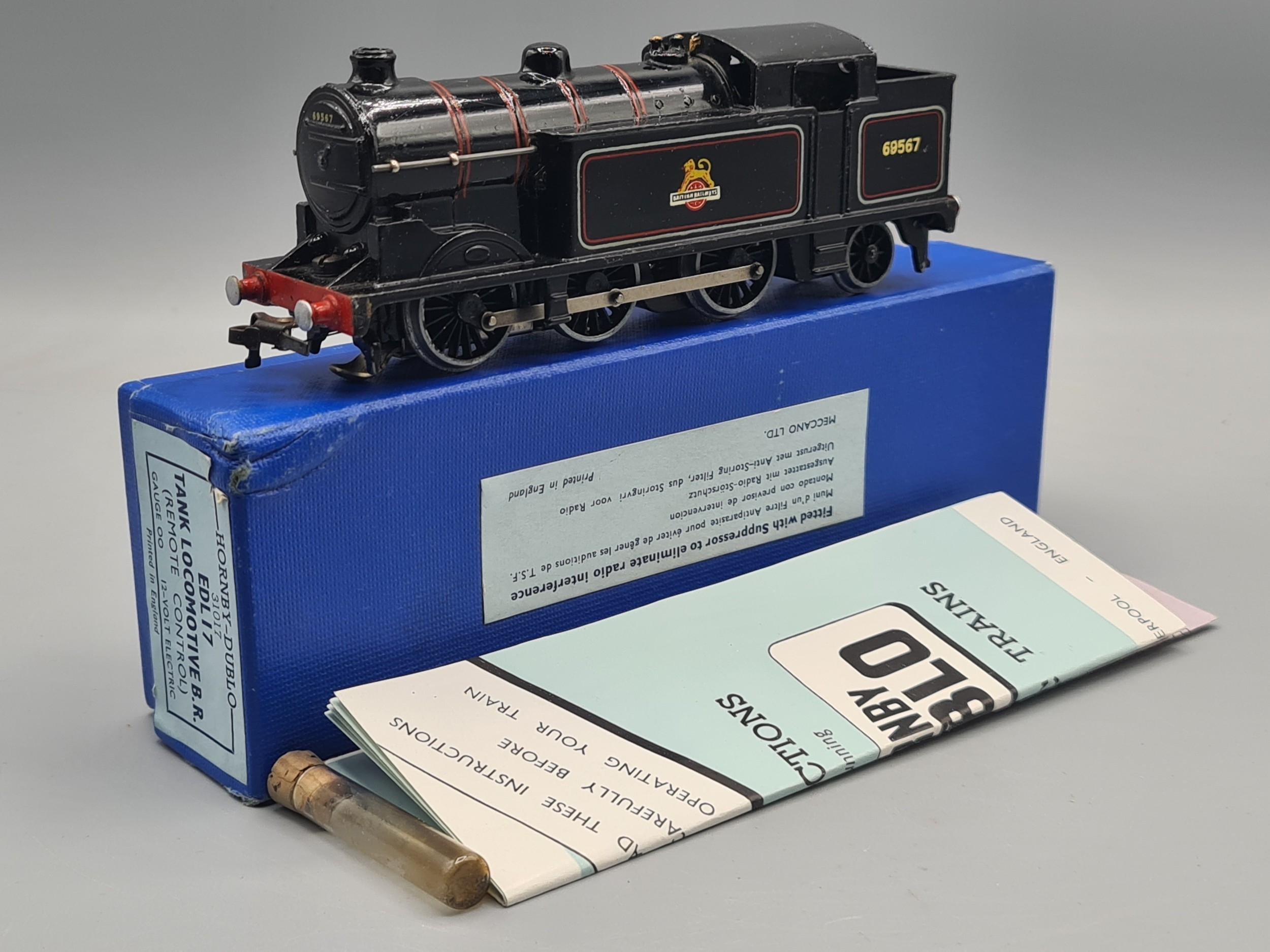 A boxed Hornby Dublo EDL17 gloss 0-6-2T, M, showing no signs of use. Box Nr perfect, slight crush at one corner. Complete with instructions, guarantee, test tag and oil phial