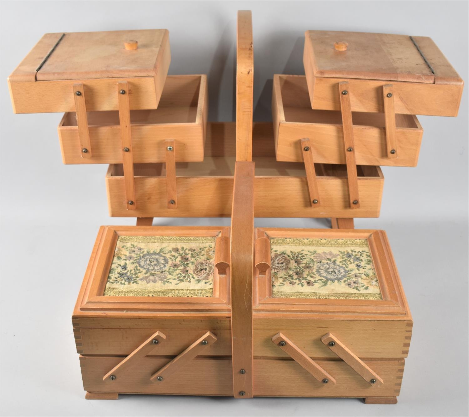 Two Mid 20th Century Cantilevered Sewing Boxes, Both Empty