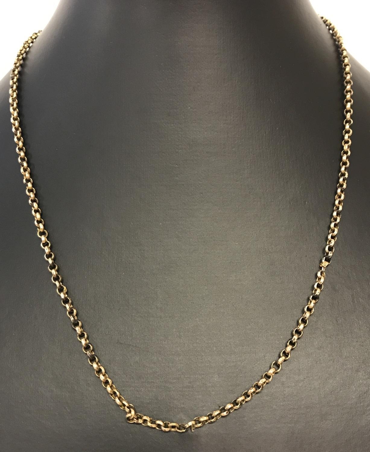 A vintage gold belcher chain approx. 16" long. Tests as 9ct gold.Some links are worn. Total weight approx. 3.1g.