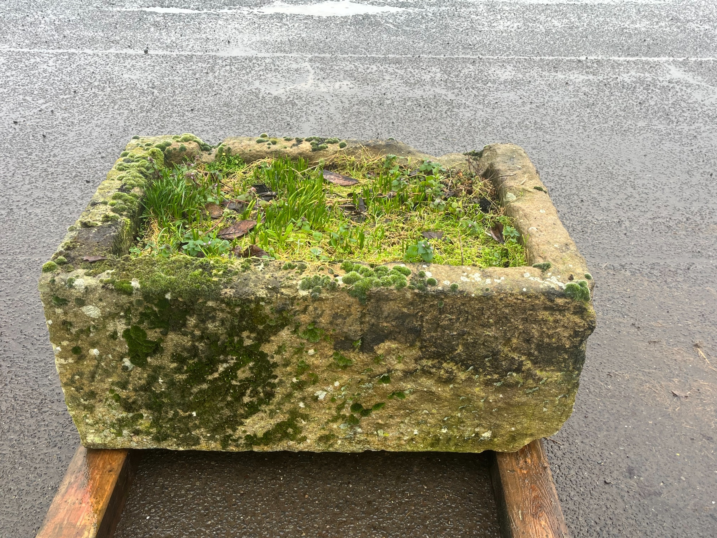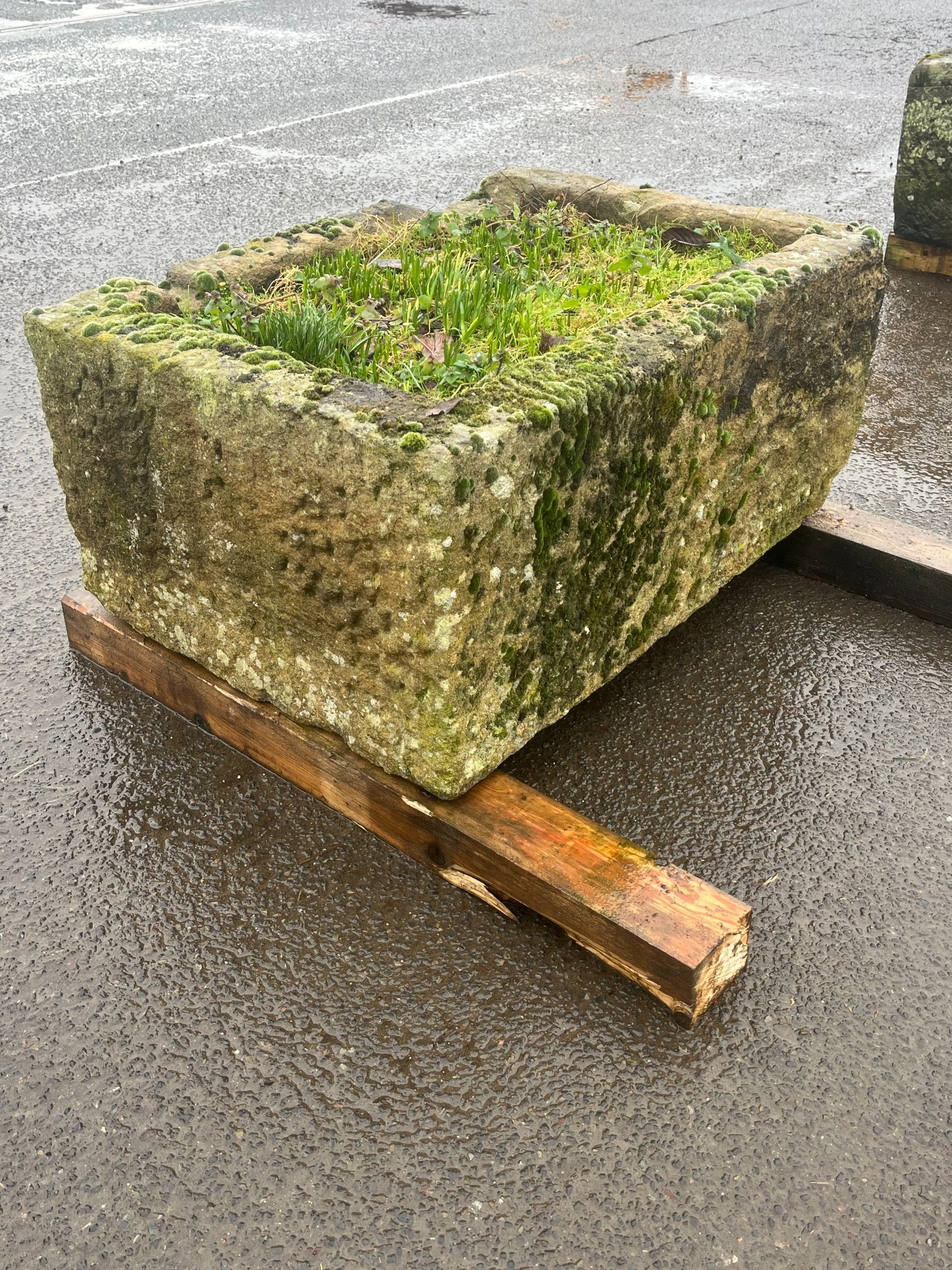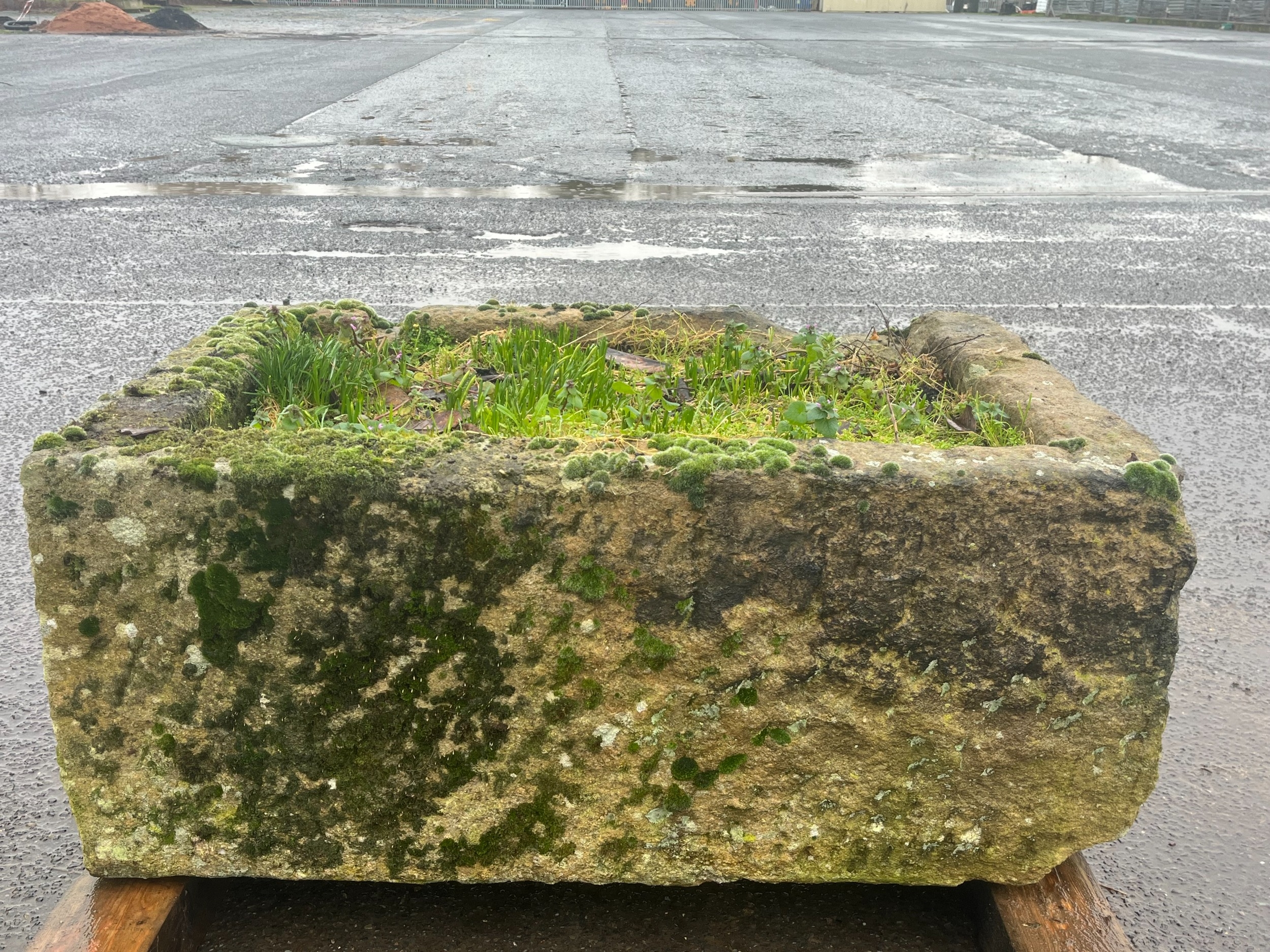 LARGE EARLY GRANITE SQUARE TROUGH