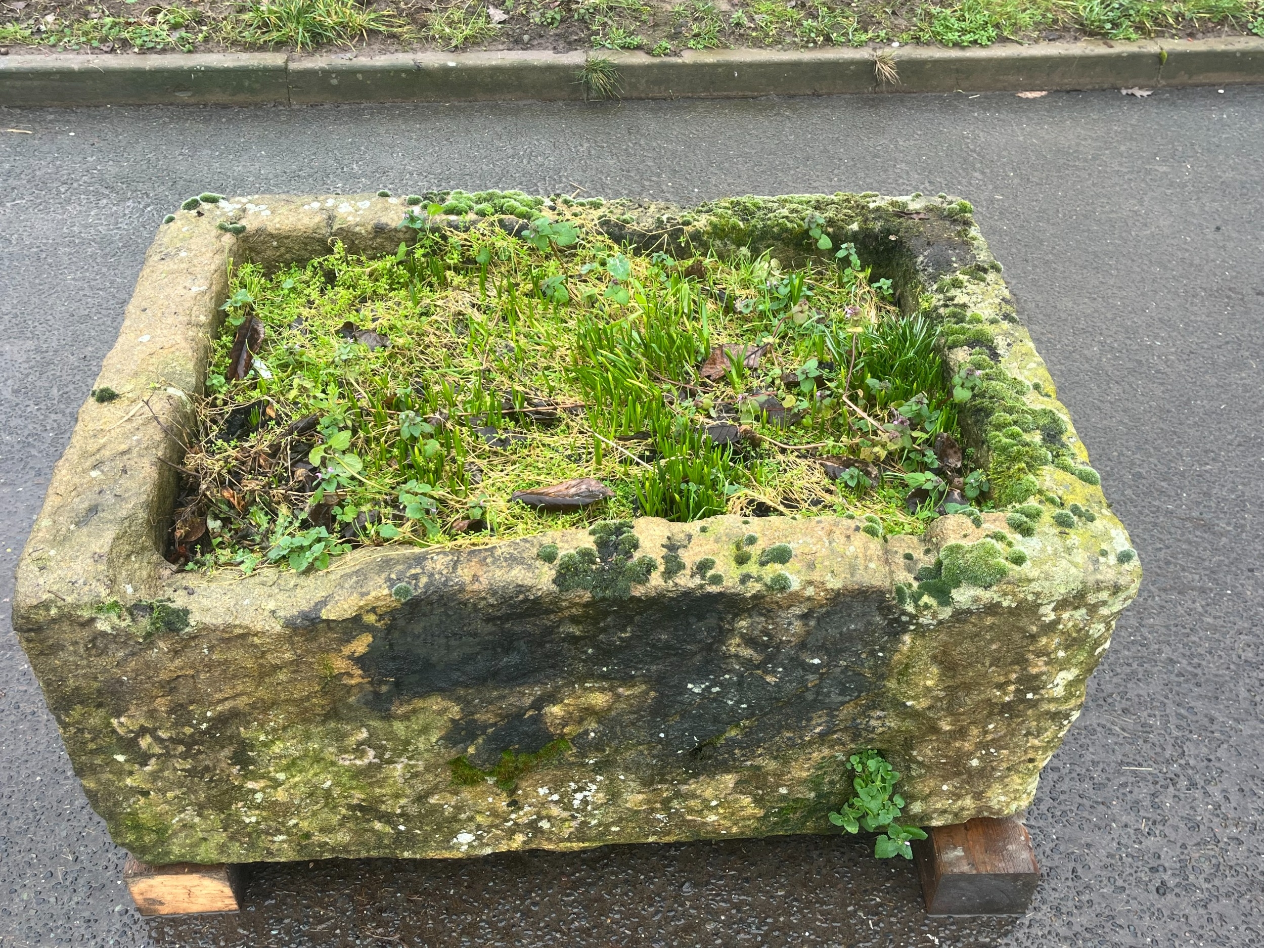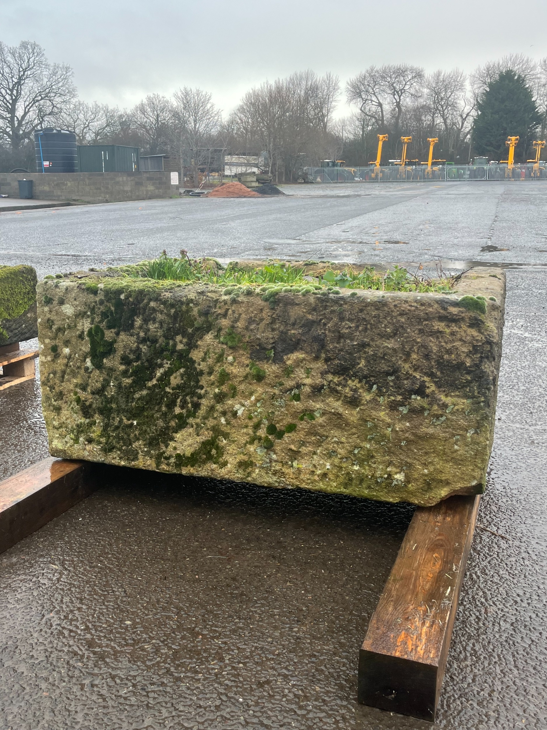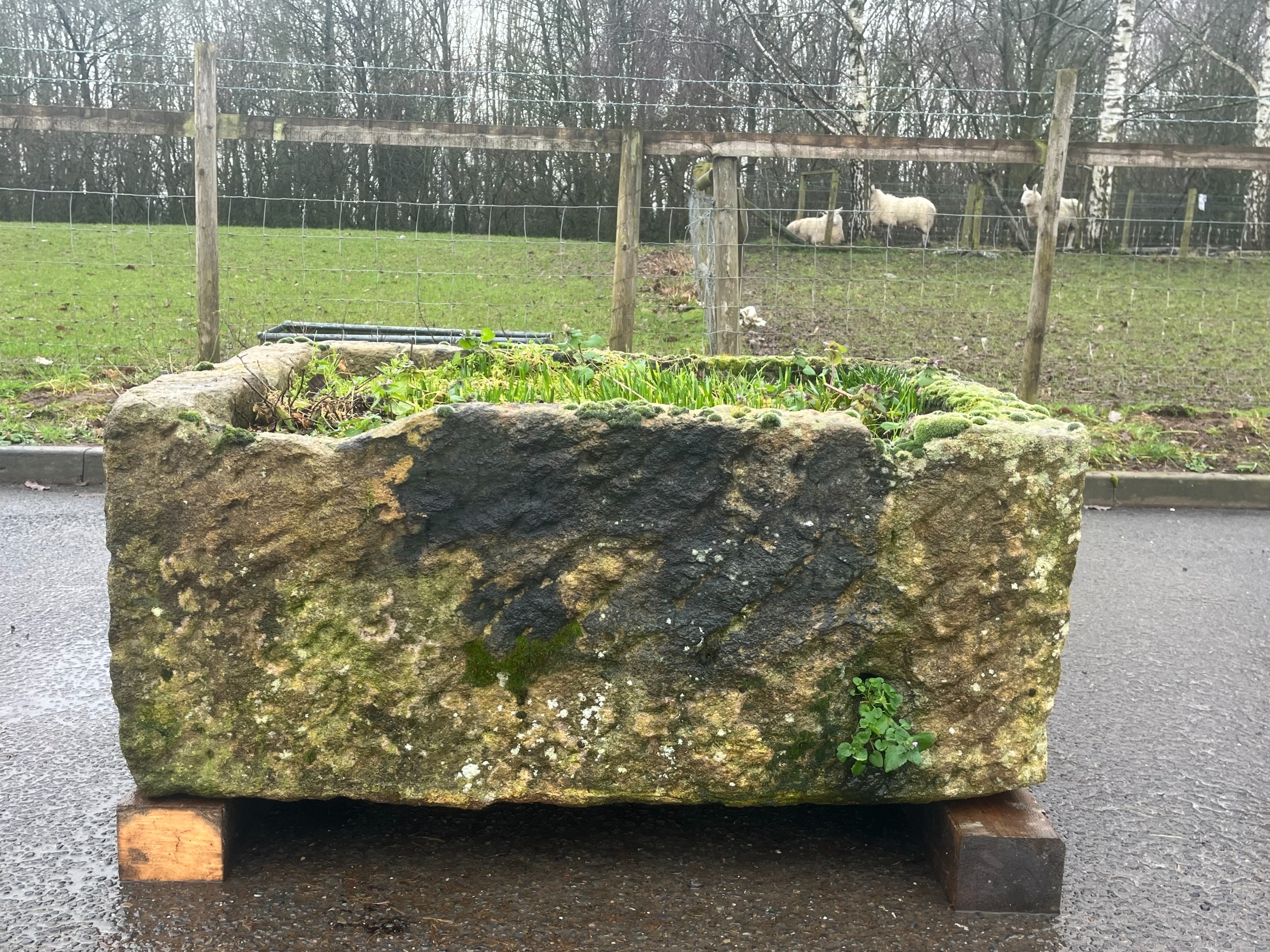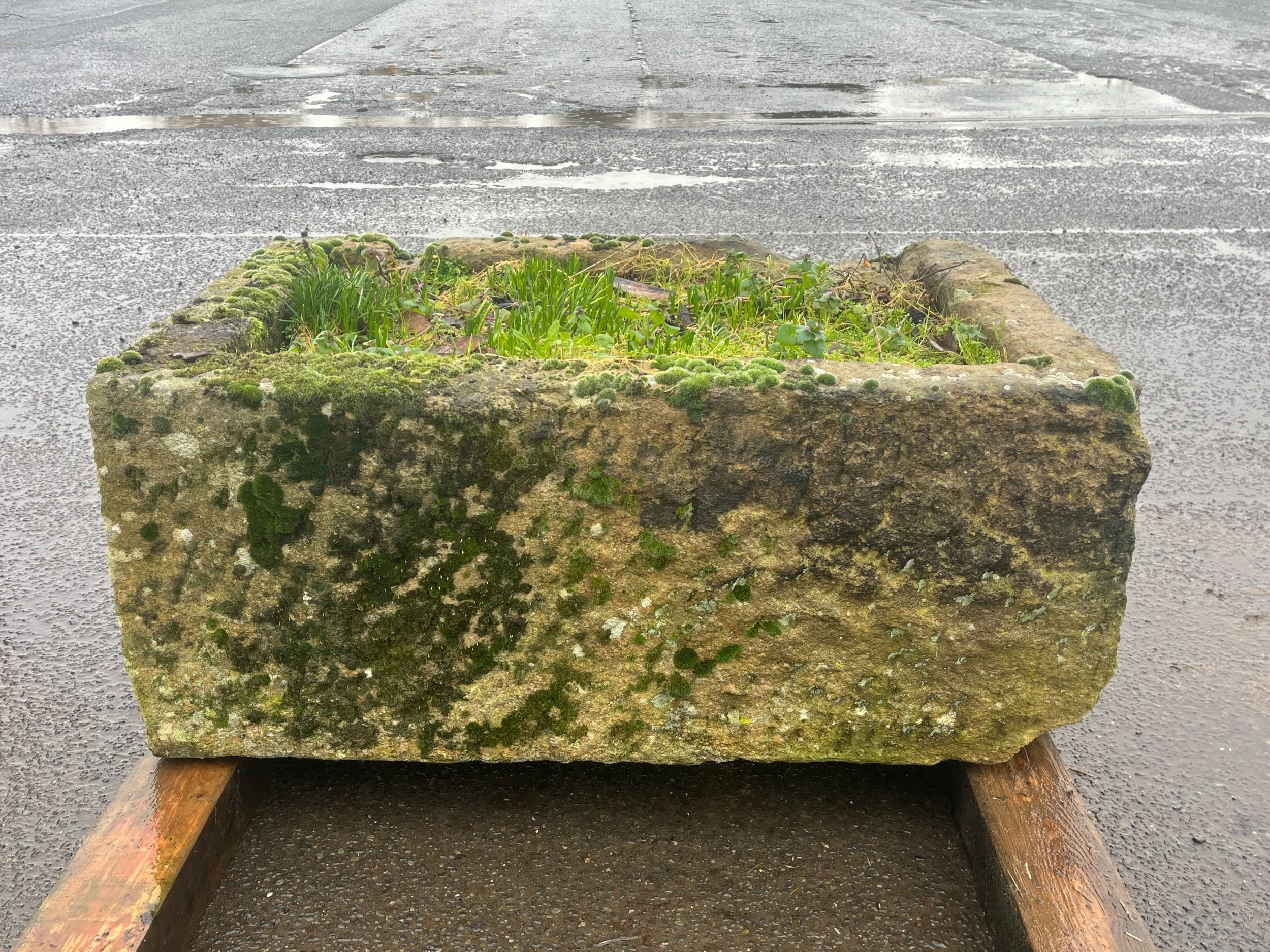 LARGE EARLY GRANITE SQUARE TROUGH