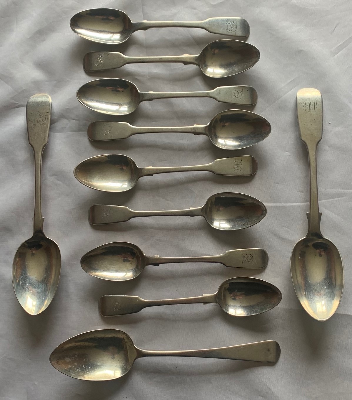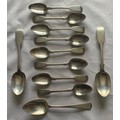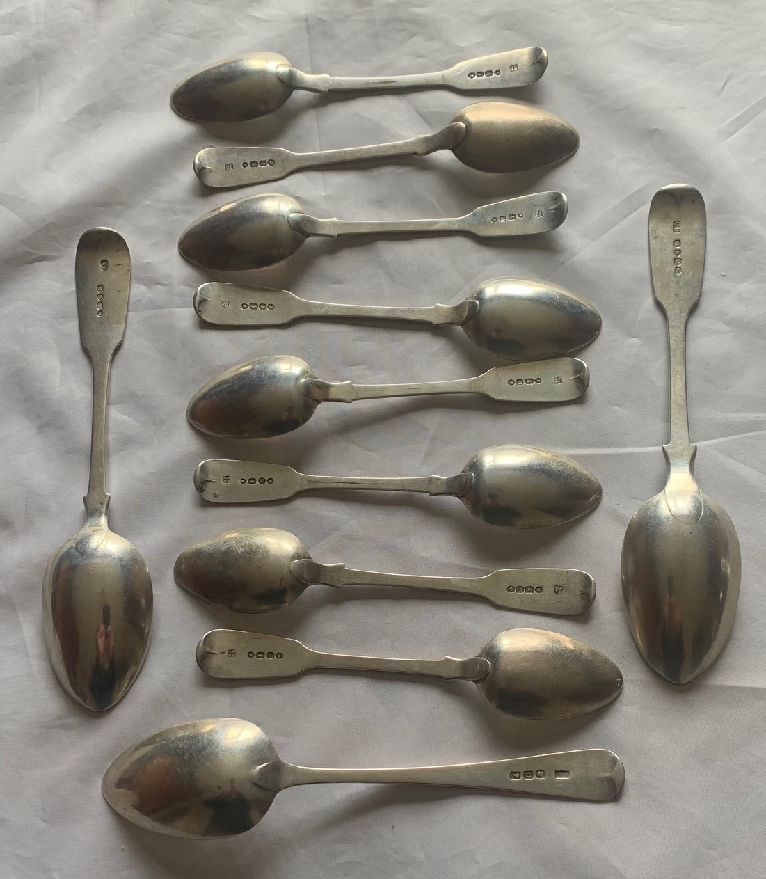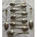 Set of eight Victorian silver tea spoons, London circa 1839, by H.J.Lias, together with a Georgian silver dessert spoon and two Victorian silver Dessert spoons, weight 274 grams (11).