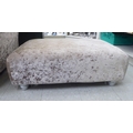 A modern four piece suite, upholstered in silvered effect, shimmer crushed velvet comprising a three person settee, raised on turned feet 96"w; two armchairs 44"w; and a footstool