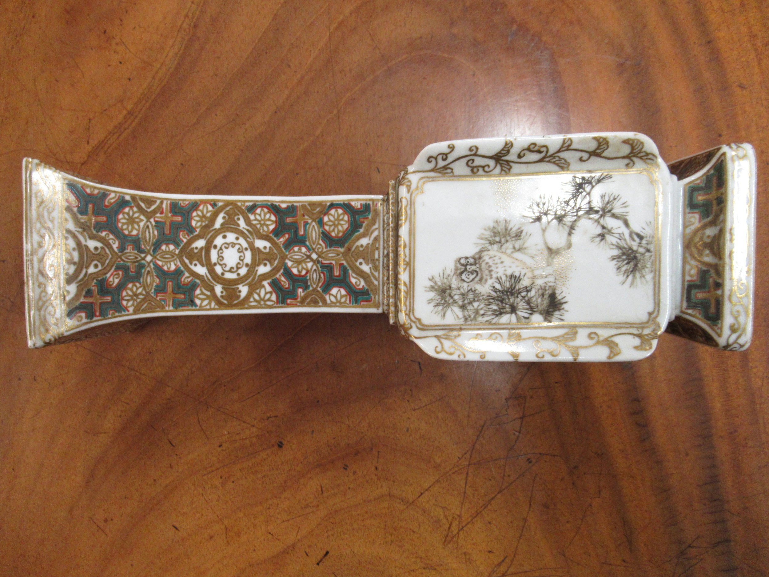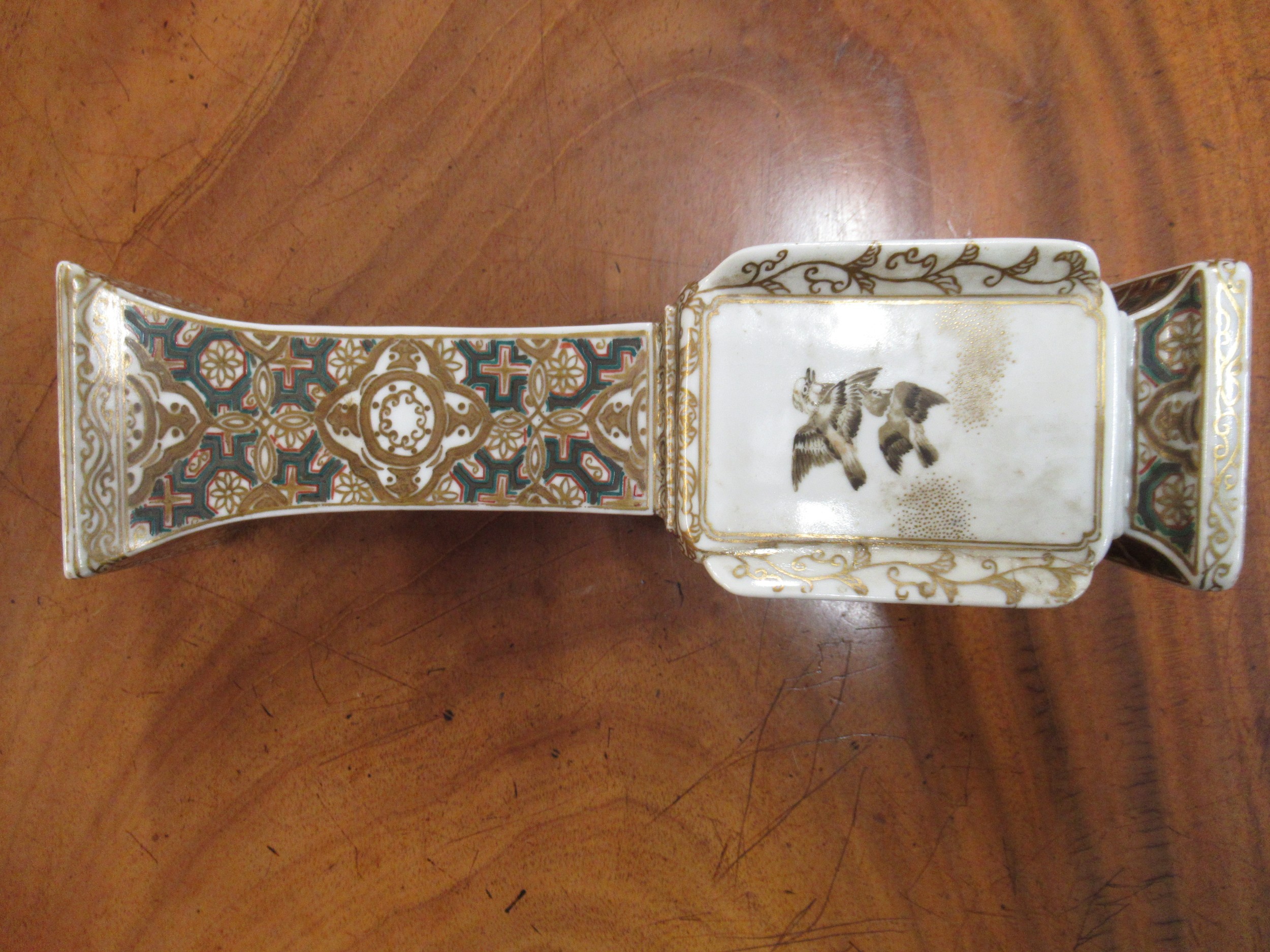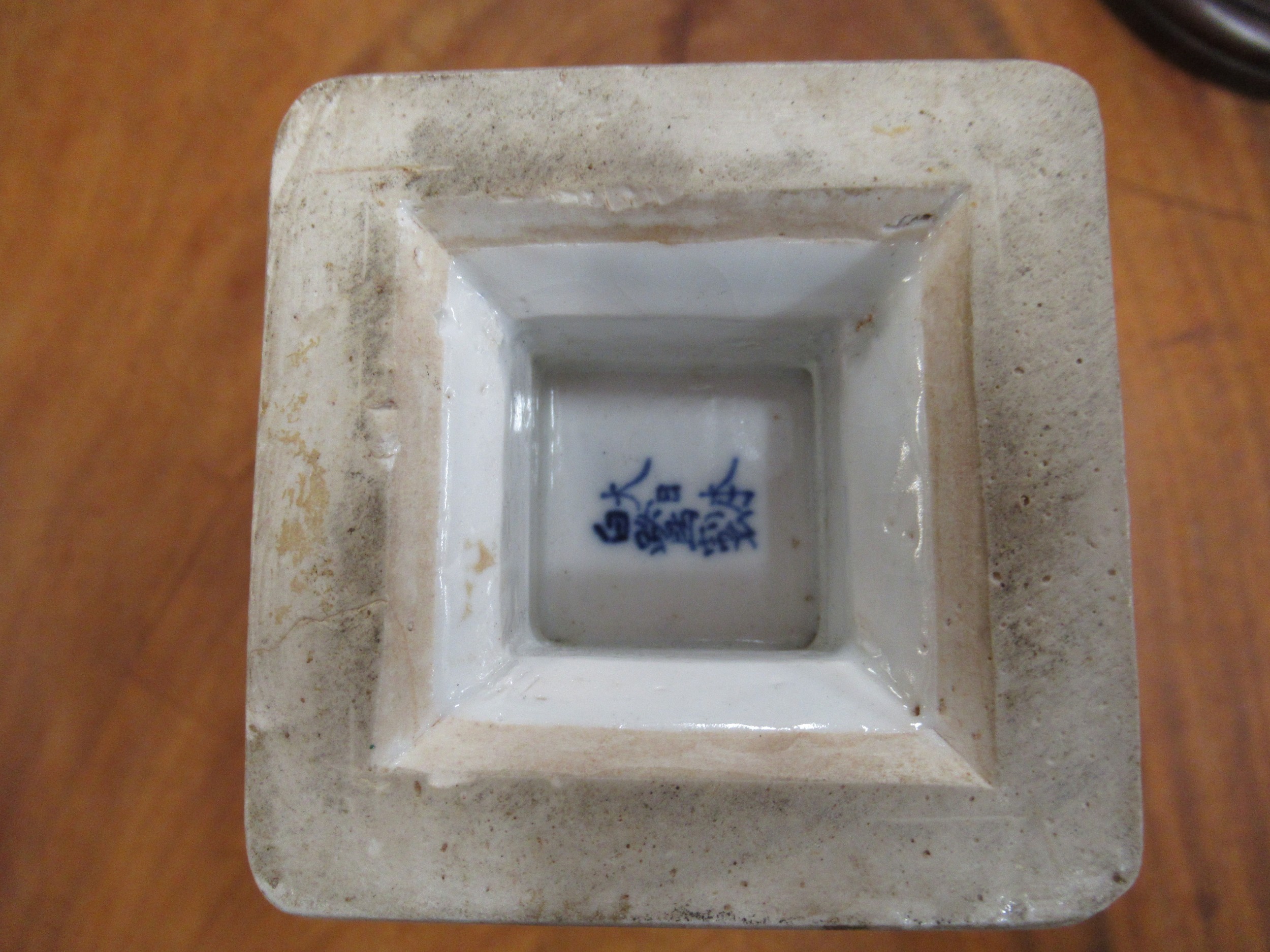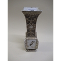 Japanese porcelain square flared rim vase, decorated with panels of birds, signed with character marks to base, 25cm high