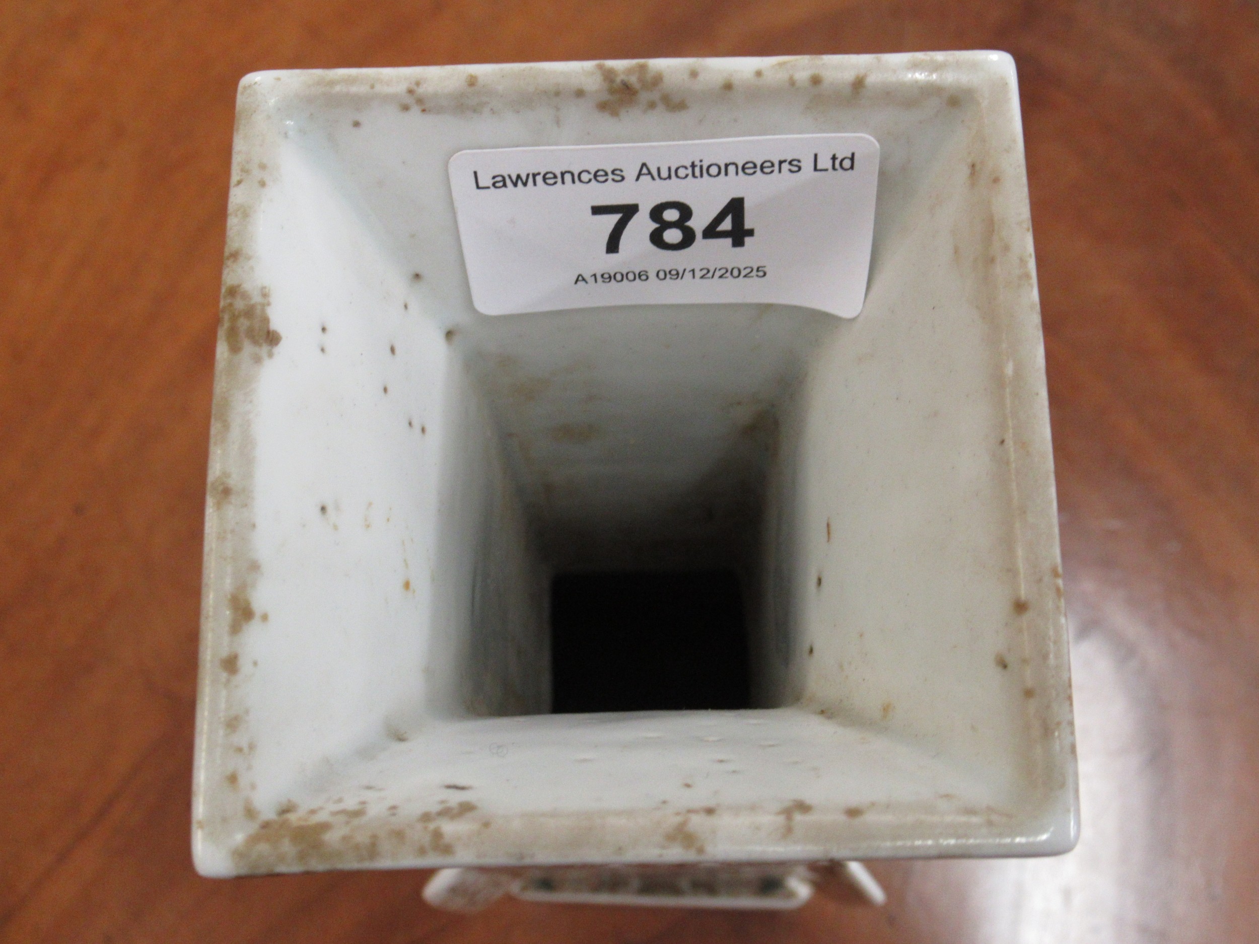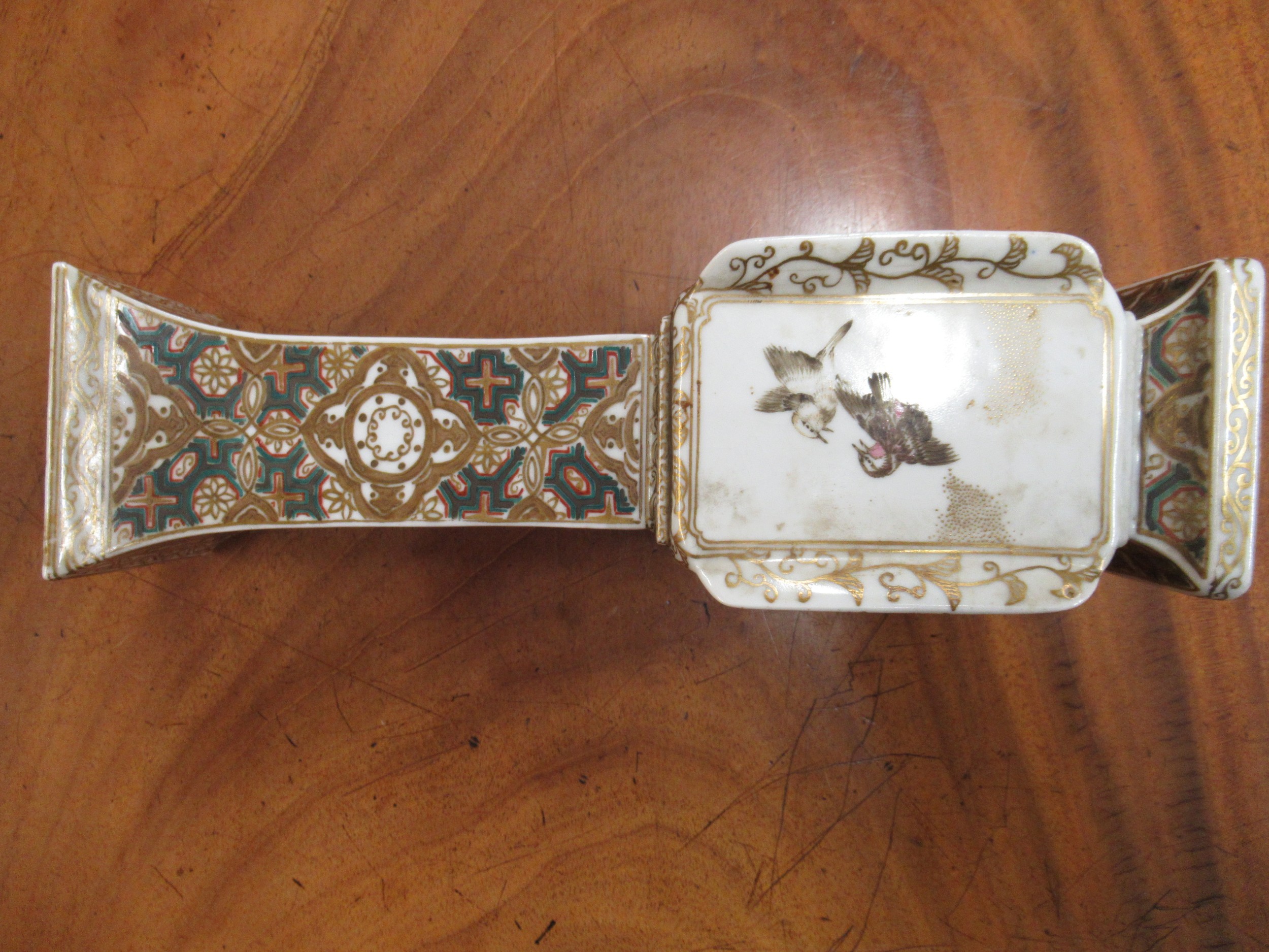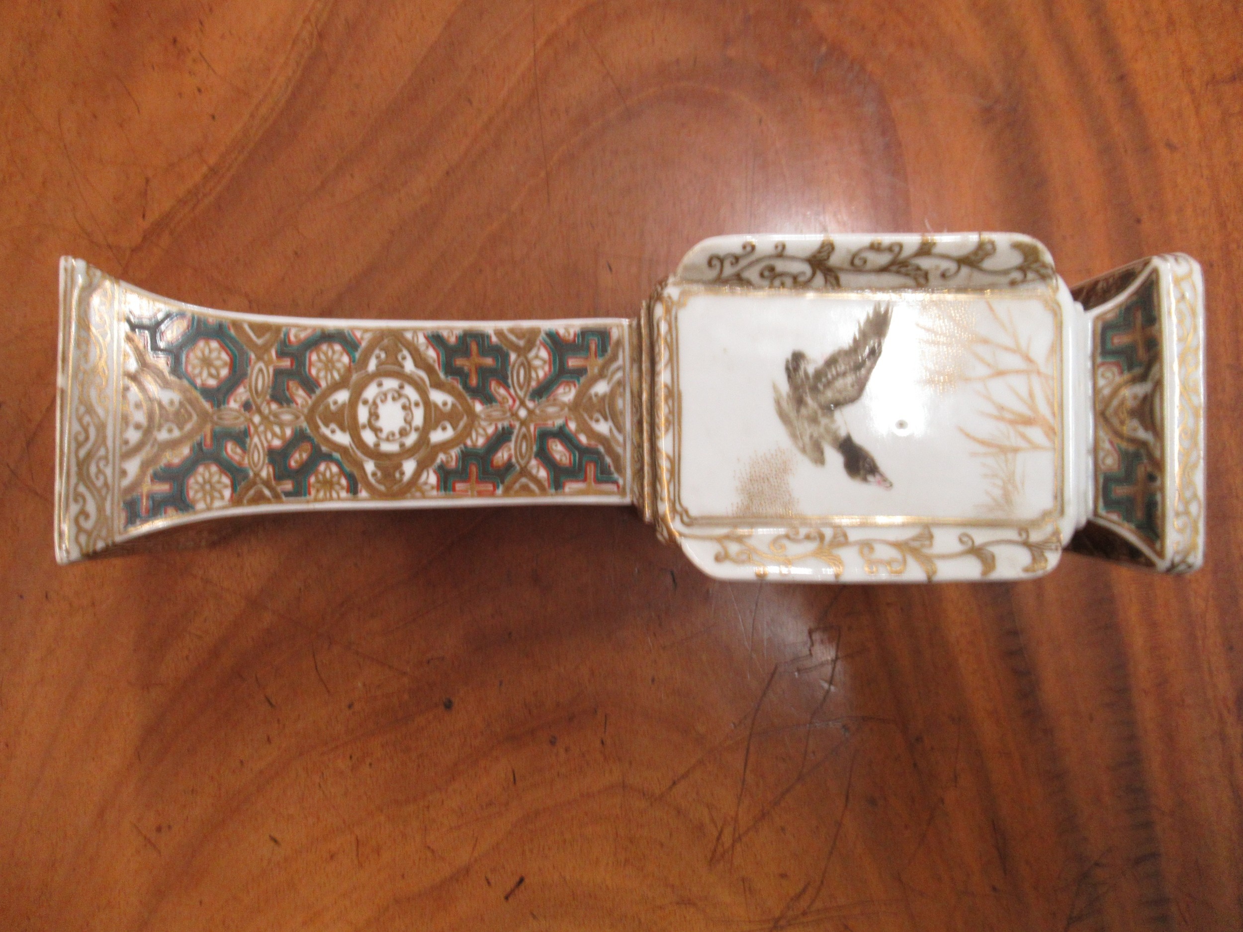 Japanese porcelain square flared rim vase, decorated with panels of birds, signed with character marks to base, 25cm high