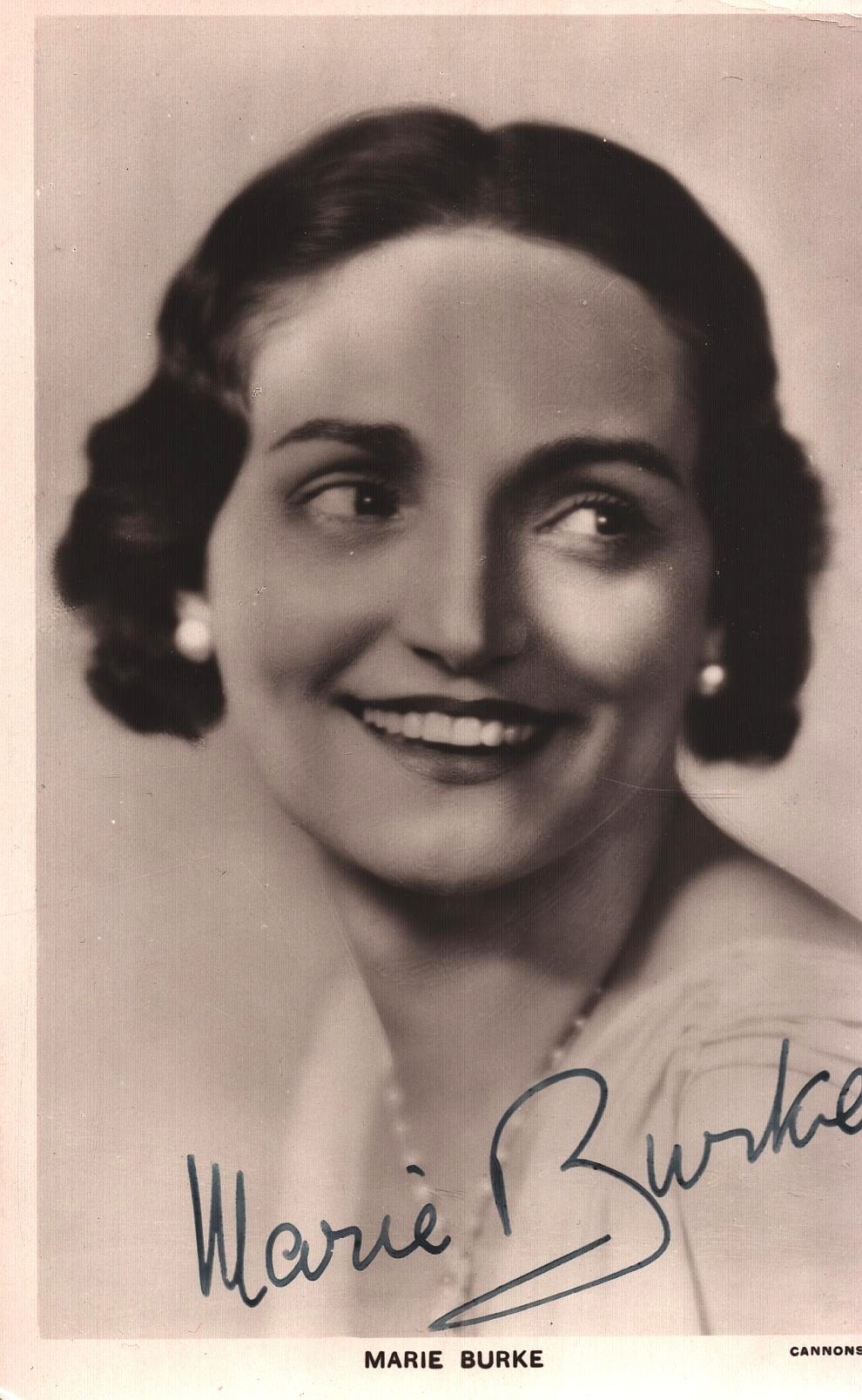 Marie Burke signed 6x4inch black and white postcard photo.