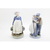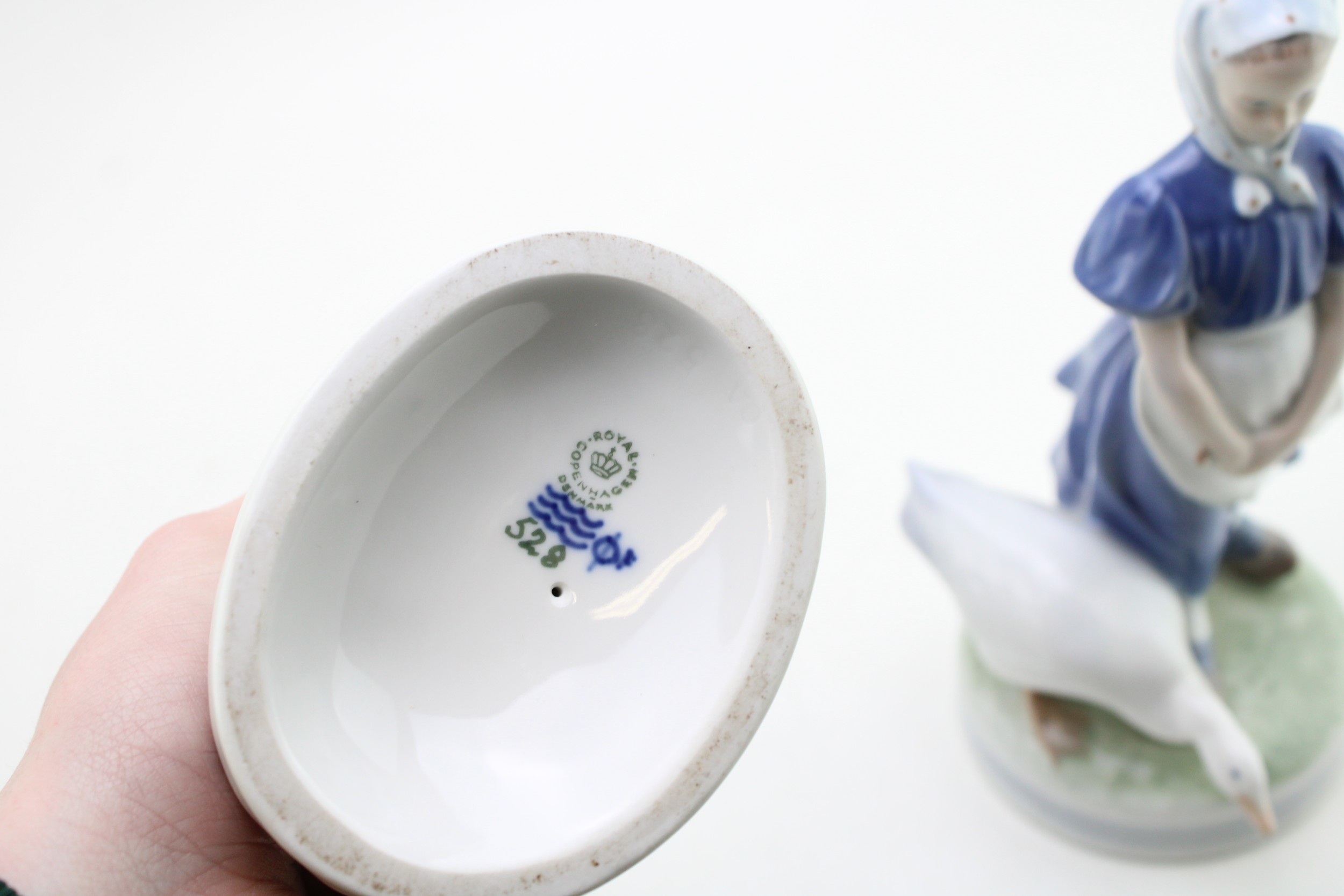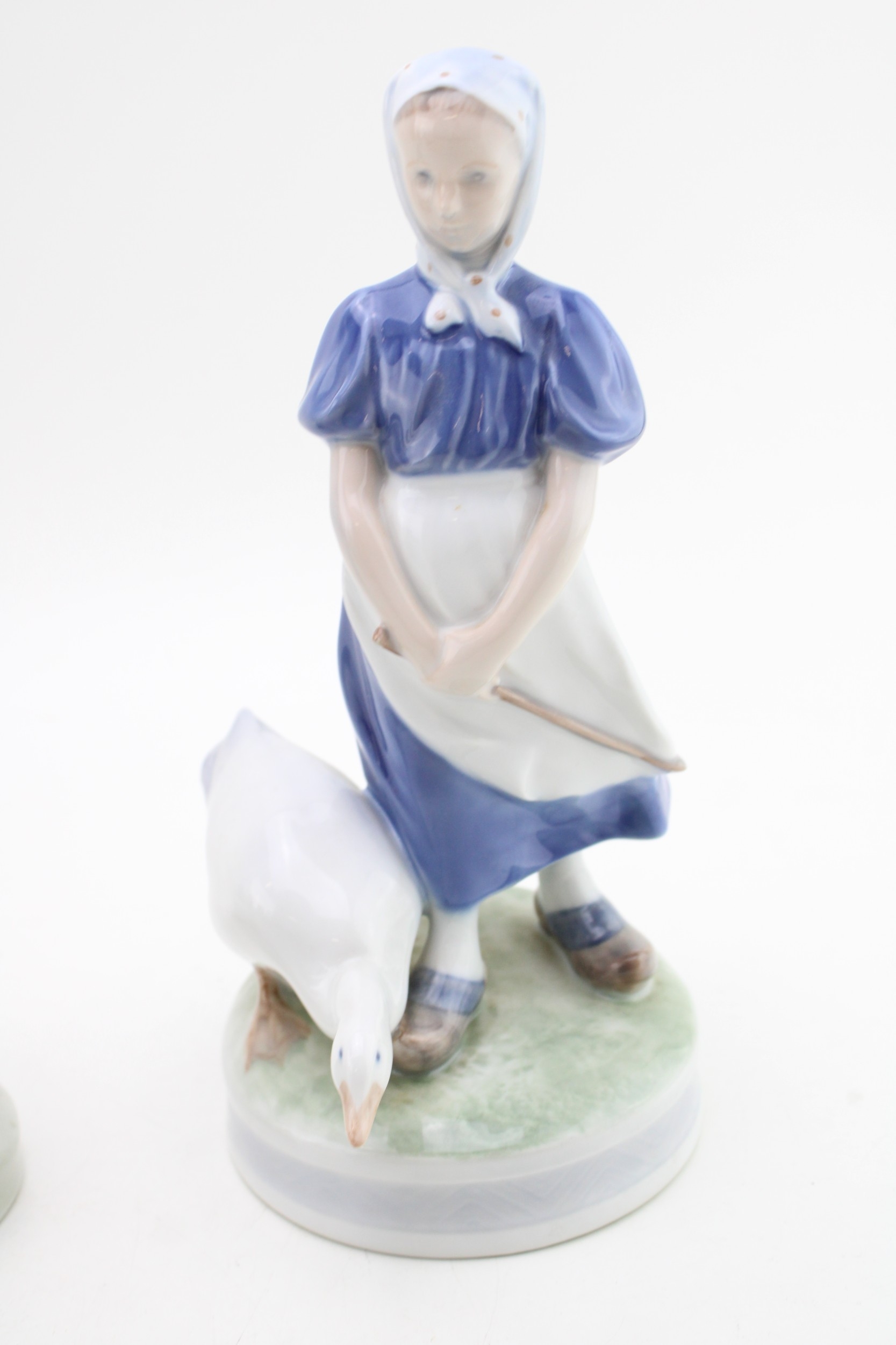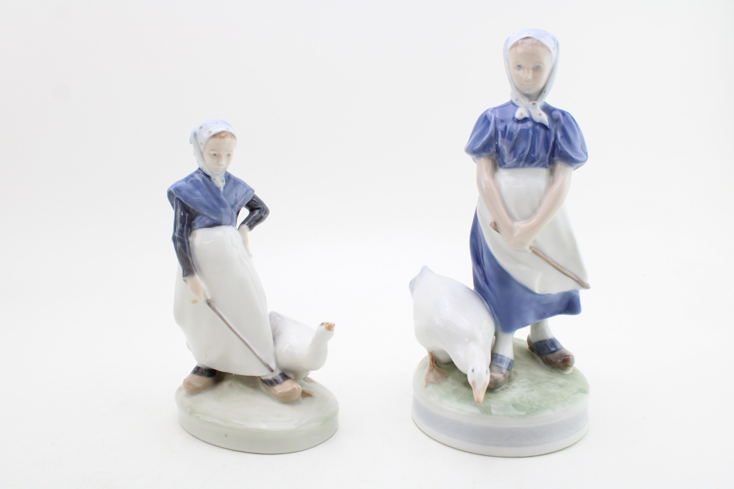 Royal Copenhagaen figure of a girl with a goose 527 and one similar, 528, tallest 23cm tall.