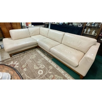 WHITE LEATHER ITALIANATE LOUNGER ON CHROME LEGS 84CM H - 170CM L - 82CM W