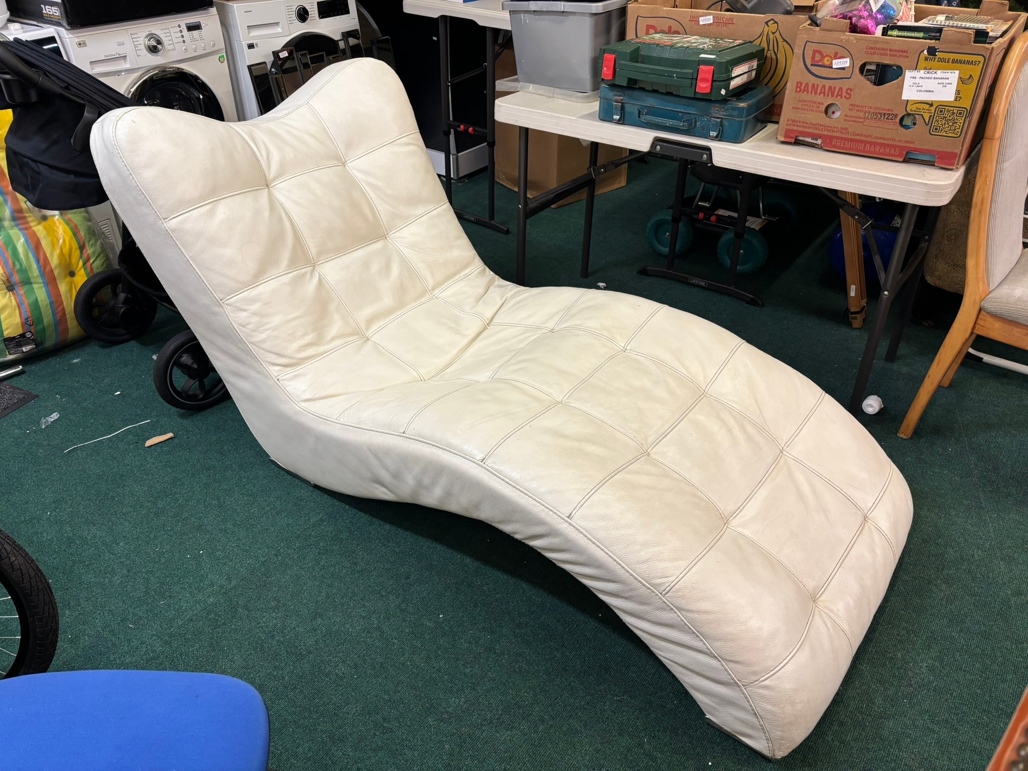 WHITE LEATHER ITALIANATE LOUNGER ON CHROME LEGS 84CM H - 170...