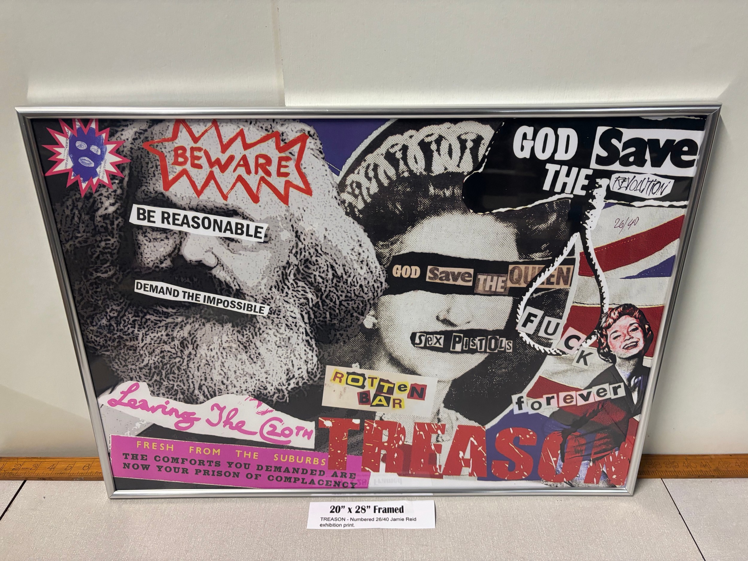 Framed Treason Numbered 26/40 Jamie Reid exhibition print 20x28" (info in pictures)