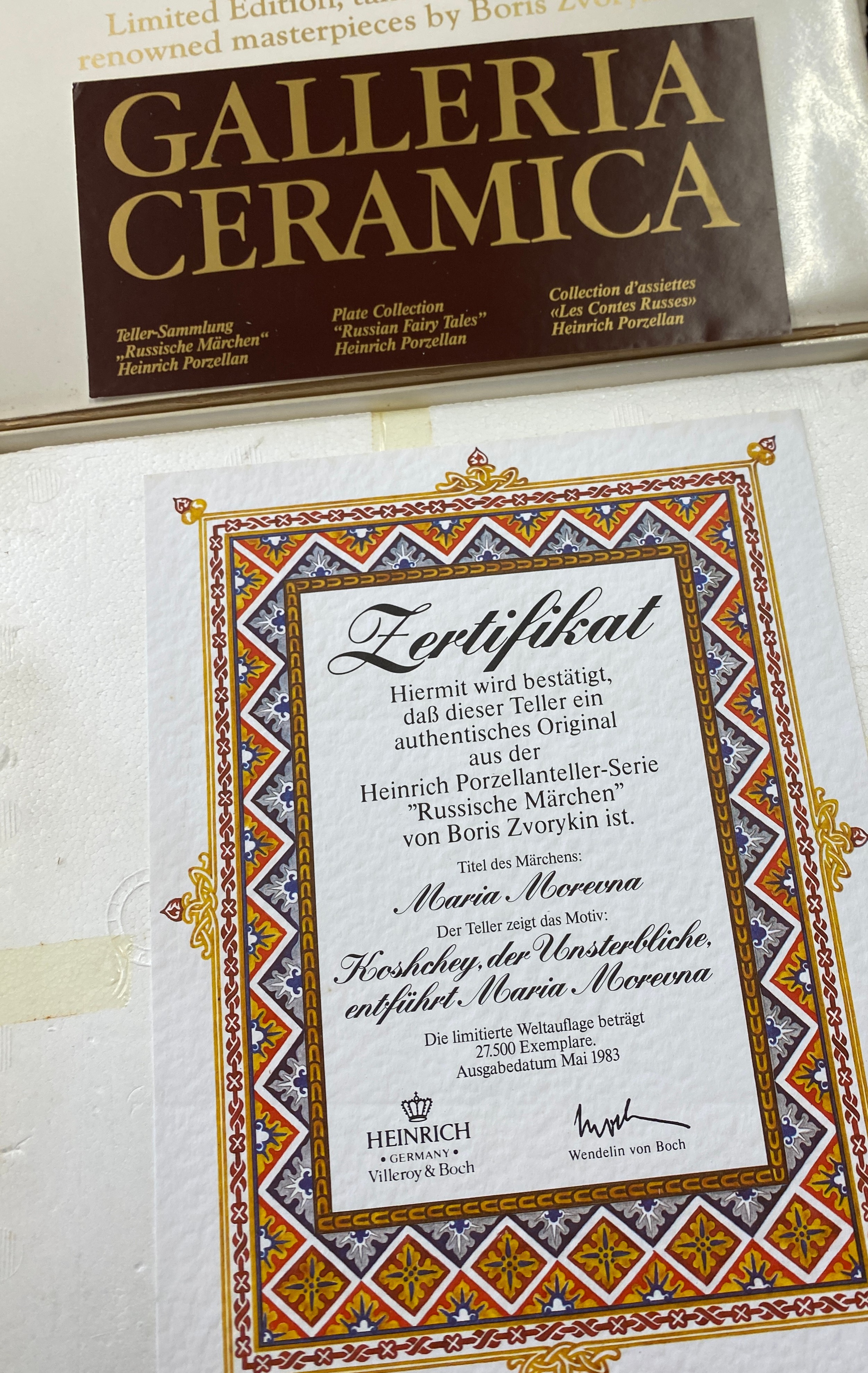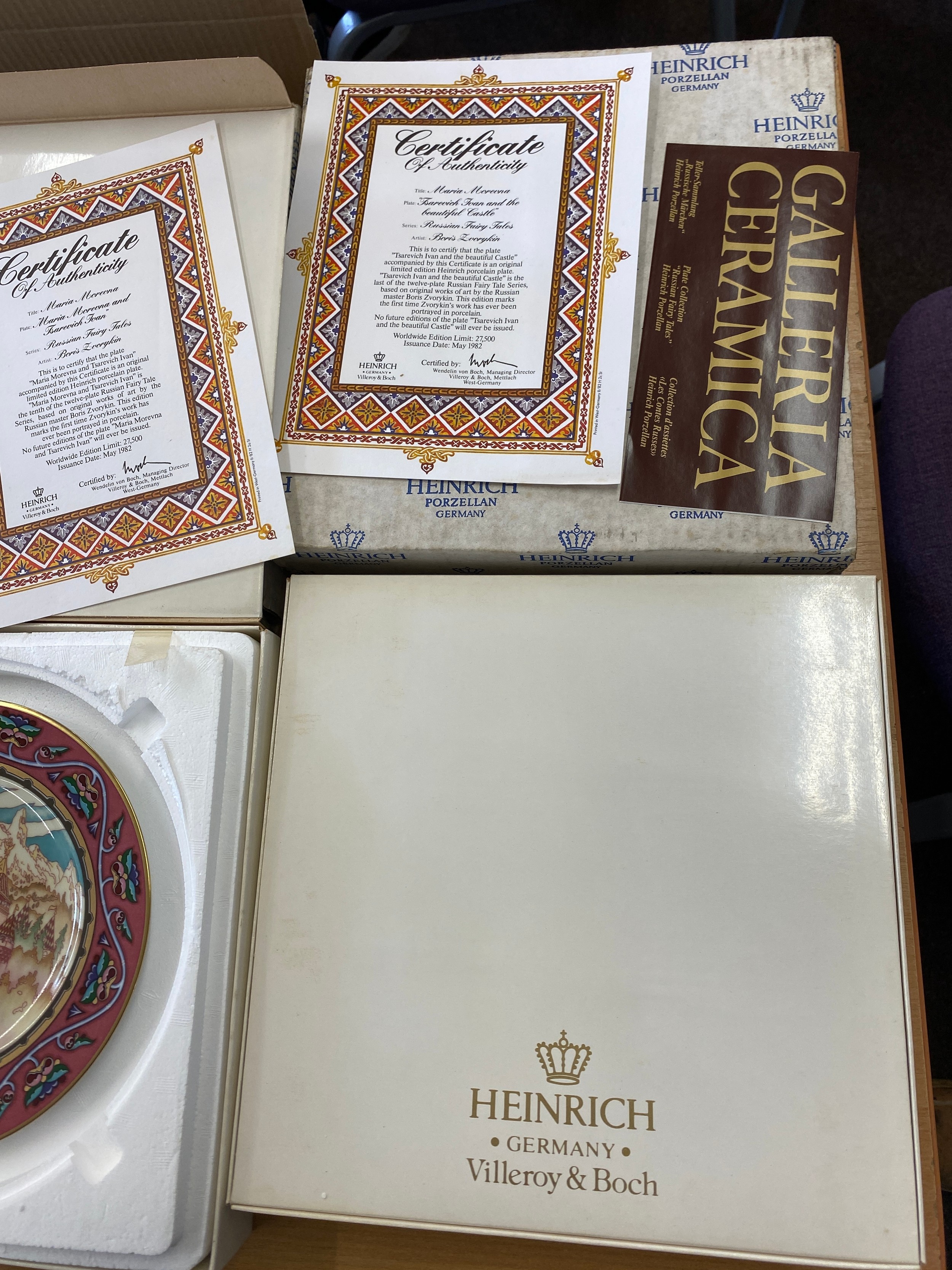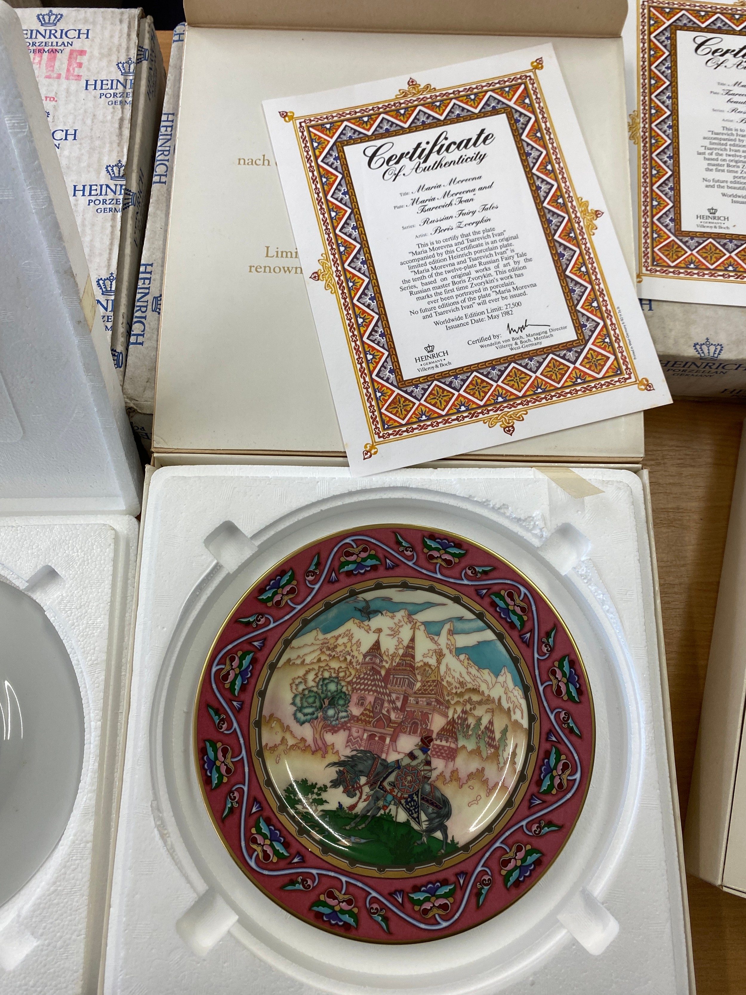 3 Villeroy & Boch Russian Fairy Tales Plate Heinrich collectors plates with COA and original boxes, Davenport plate, selection Bradford Exchange collectors plates