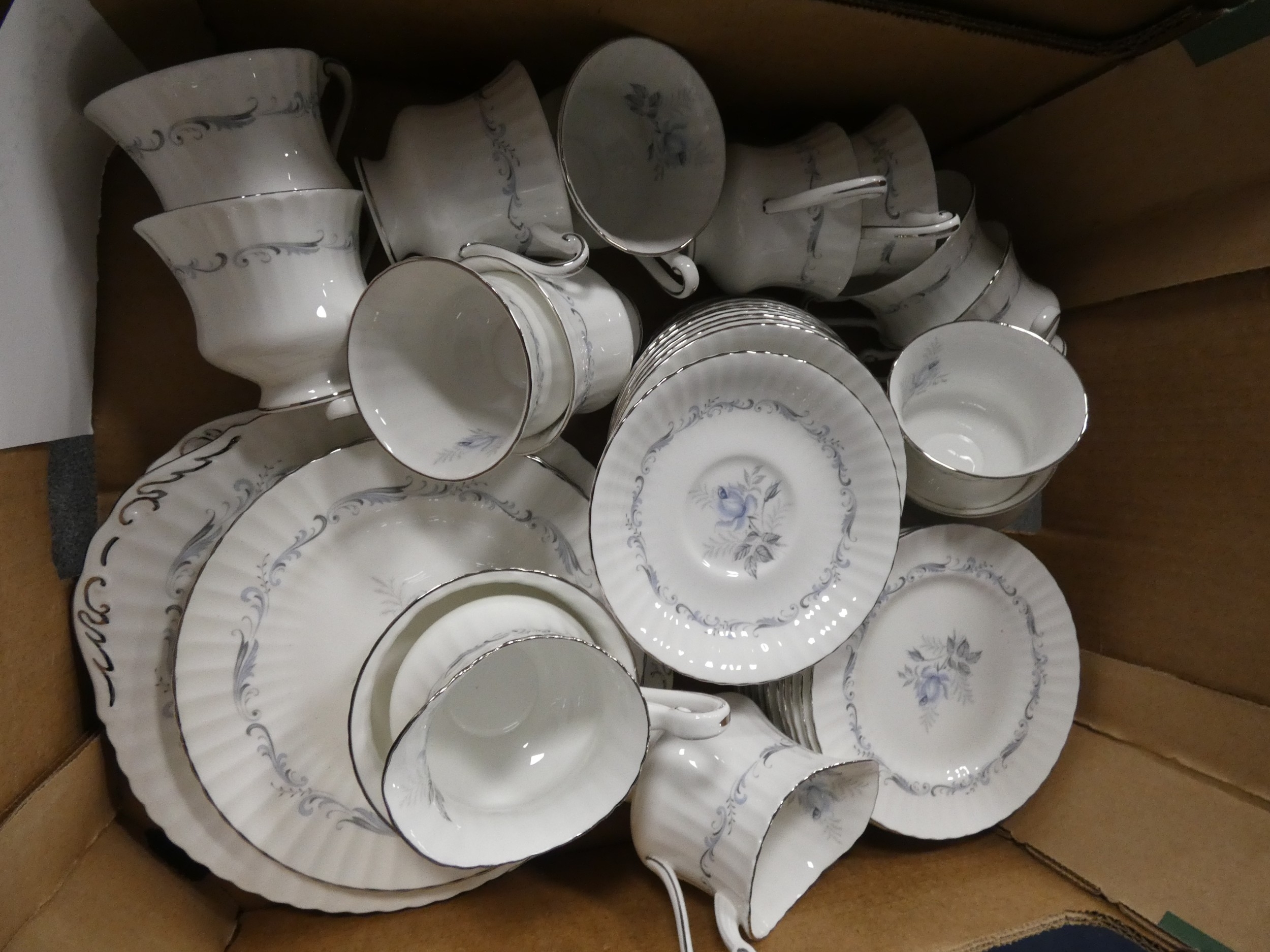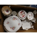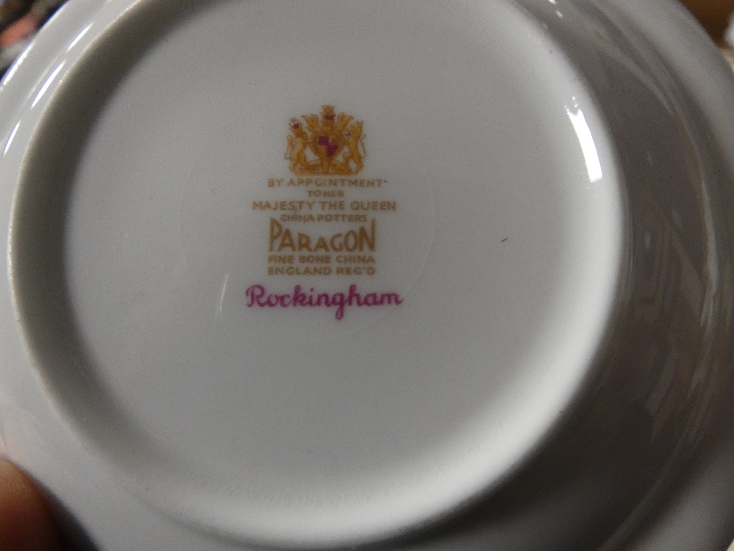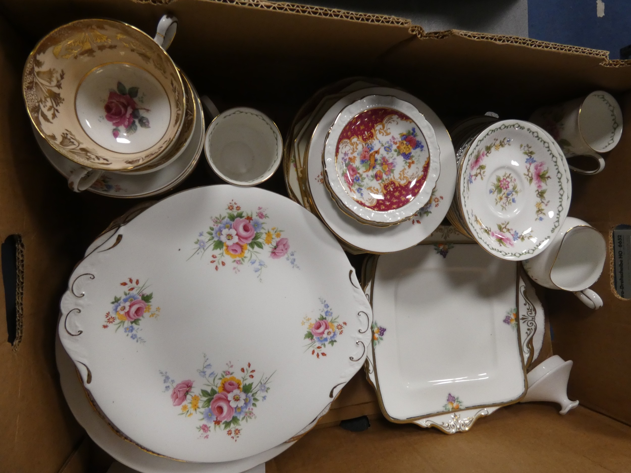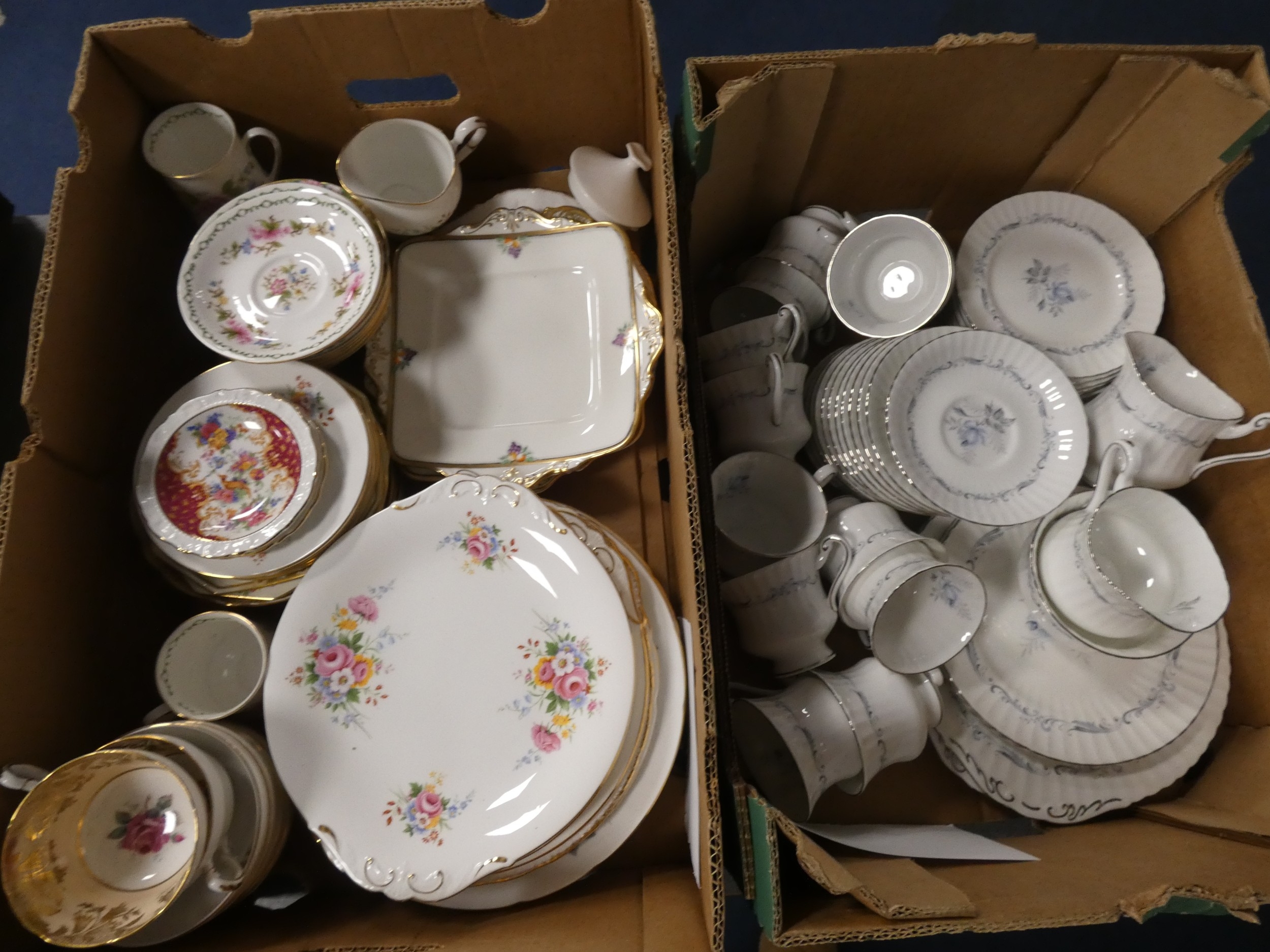 Two cartons containing Paragon part tea and dinnerwares to include 'Morning Rose' pattern etc.