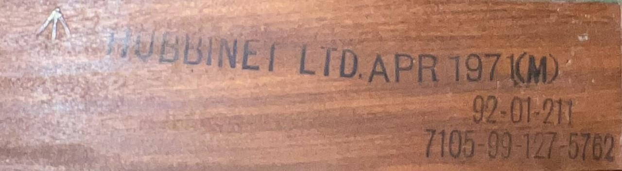 A folding, green baized, card-table by Hubbinet Ltd (stamped 1971), Military stamp present,(assumed from officers' mess) 92-01-211; 7105-99-127-5762.
