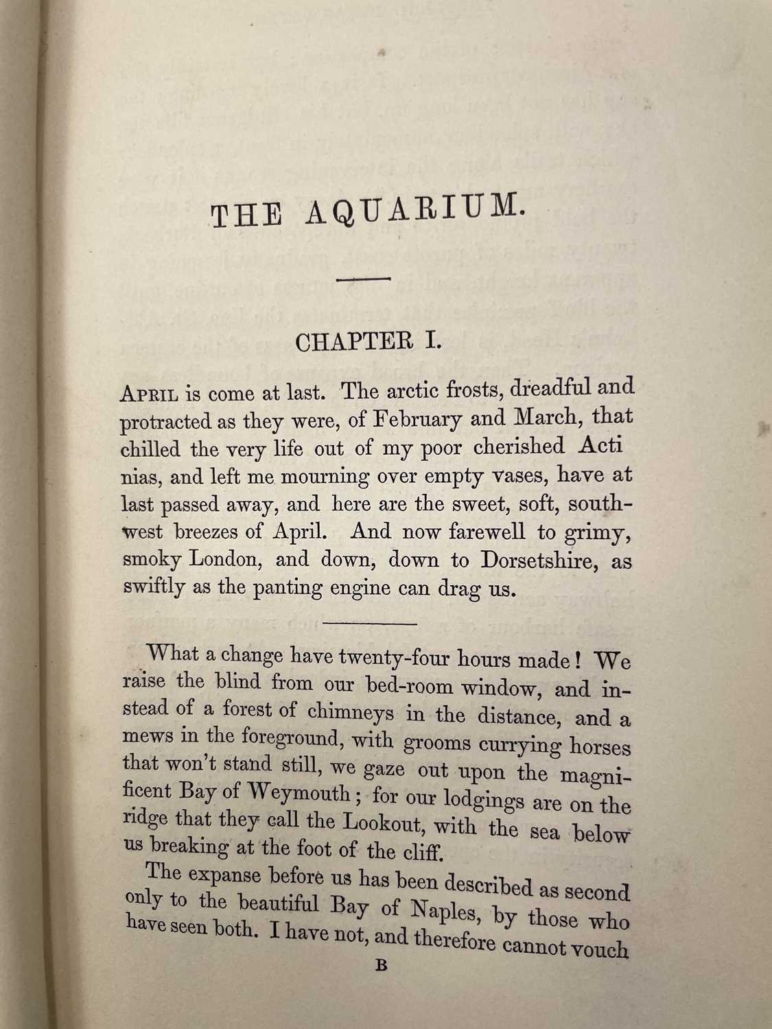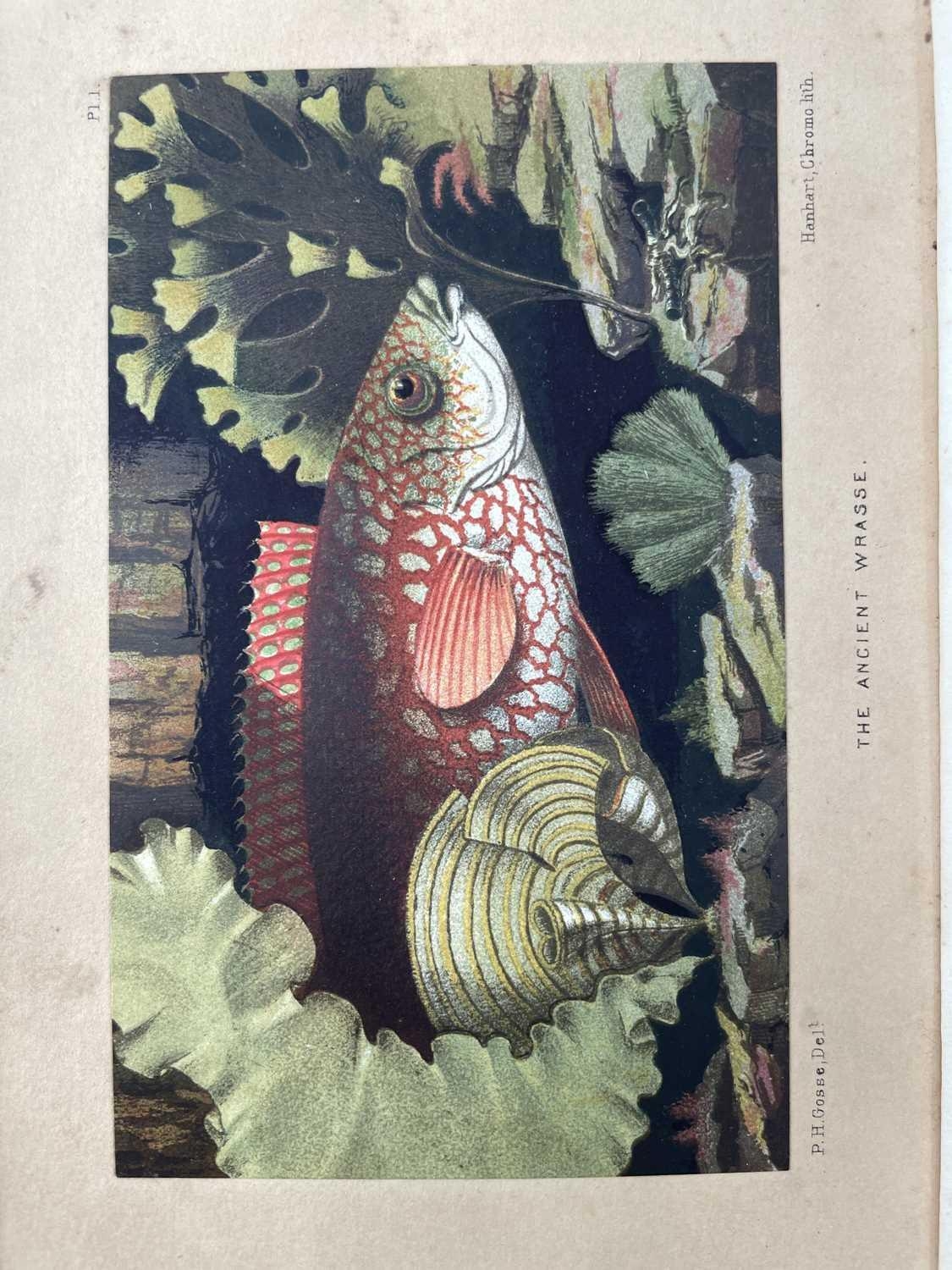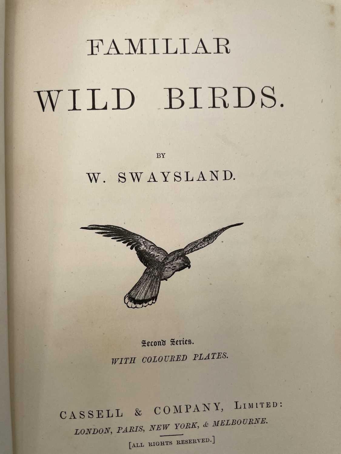 PHILIP HENRY GOSSE. 'The Aquarium: An Unveiling of the Wonders of the Deep Sea,' second edition, original cloth, colour frontis, John Van Voorst, London; 'The Ocean,' rebound, numerous engravings, Society for Promoting Christian Knowledge, London, 1854; W. SWAYSLAND. 'Familiar Wild Birds,' two volumes, half leather, colour frontis, illustrations, Cassell & Co, London, 1883; With fourteen other handsome books on natural history. (18)