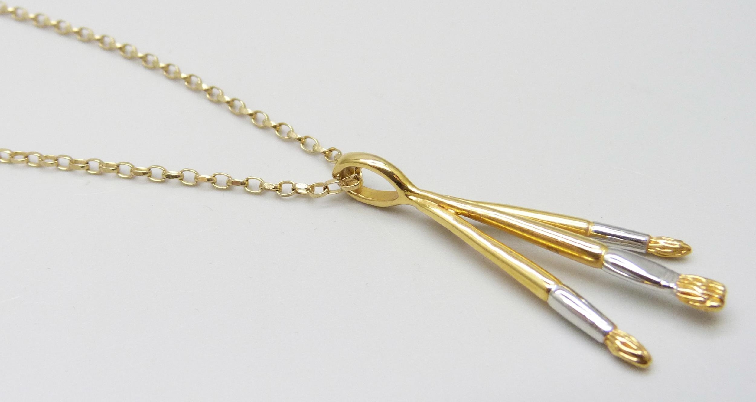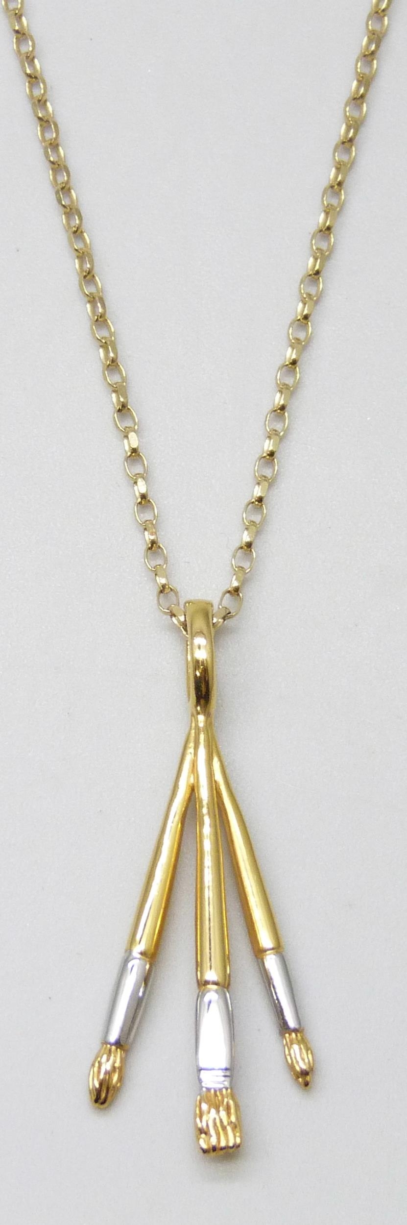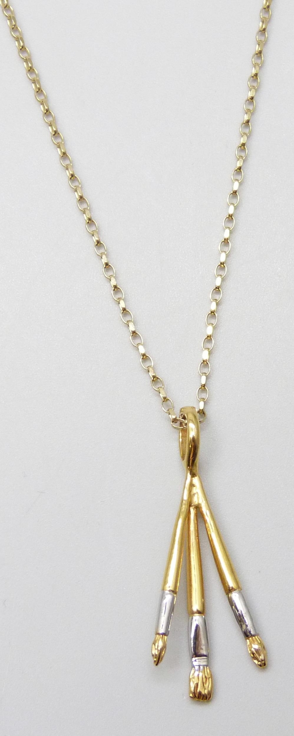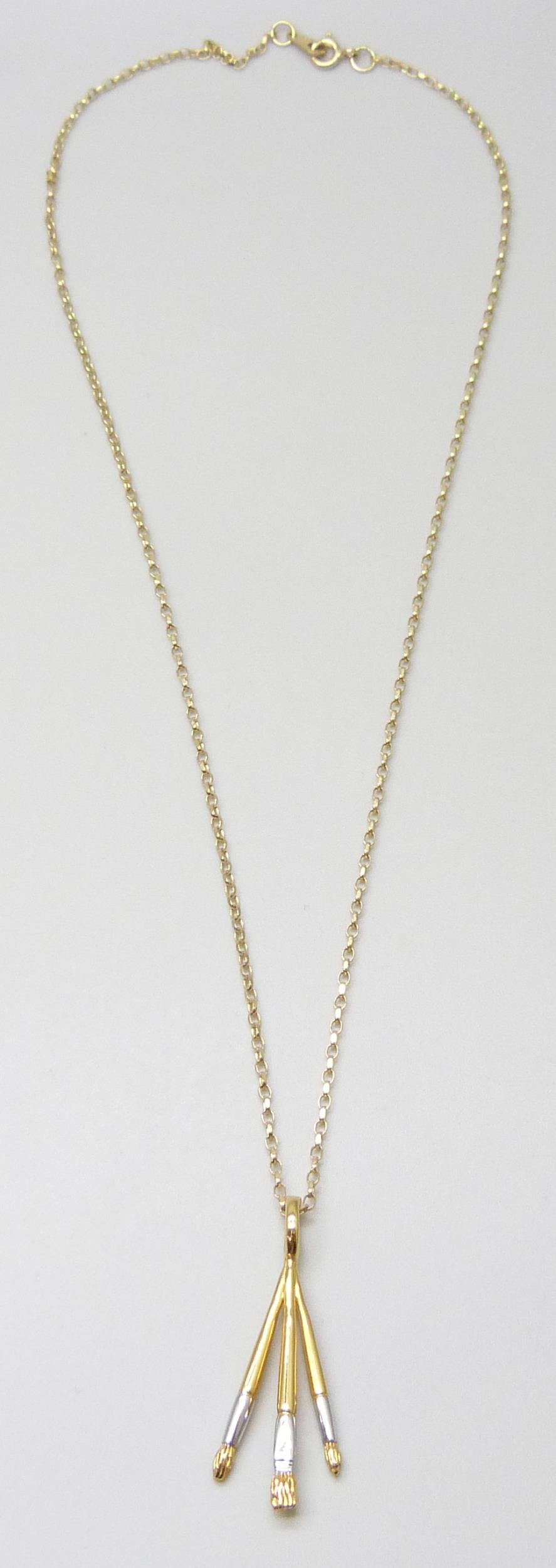 A 9ct gold chain, 2.1g, with an unmarked paintbrush pendant, 3.7cm