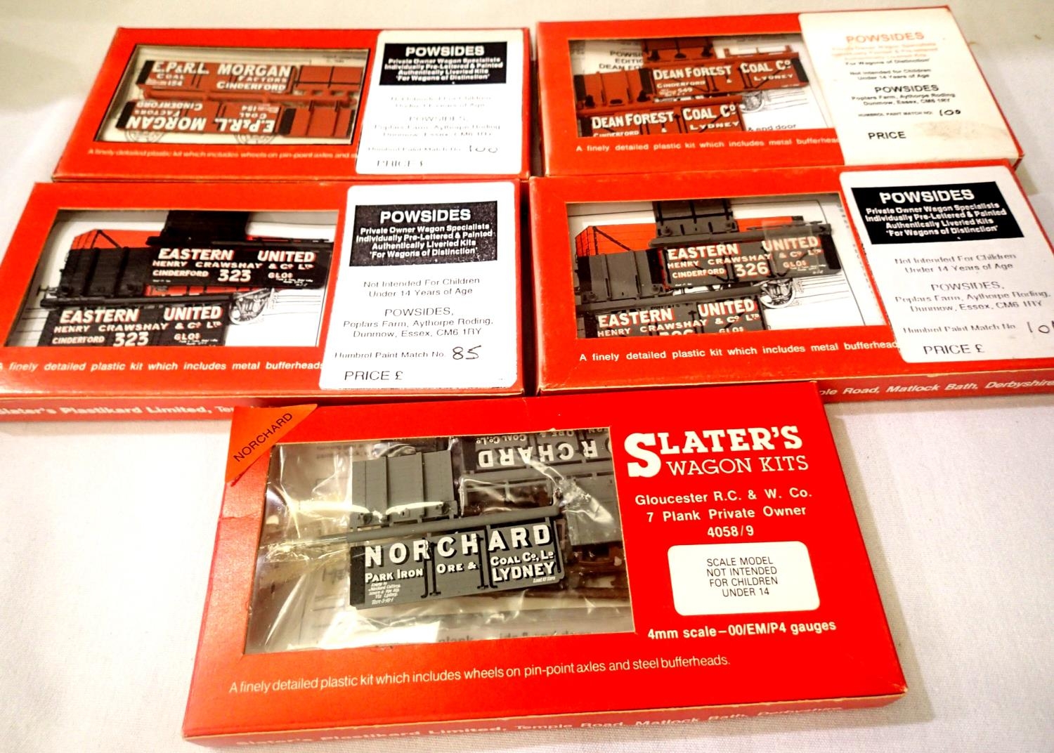 Five Slaters OO scale private owner wagon kits, appears complete, contents unchecked. P&P Group 1 (£14+VAT for the first lot and £1+VAT for subsequent lots)
