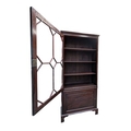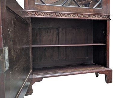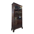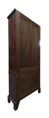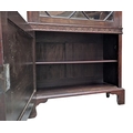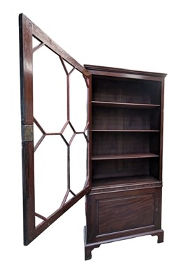 A 19th century Victorian mahogany library bookcase cabinet. The cabinet having a astragal-glazed door opening to reveal a sheleved interior over a cupboard below. All raised on bracket feet supports with blind fretwork detailing.