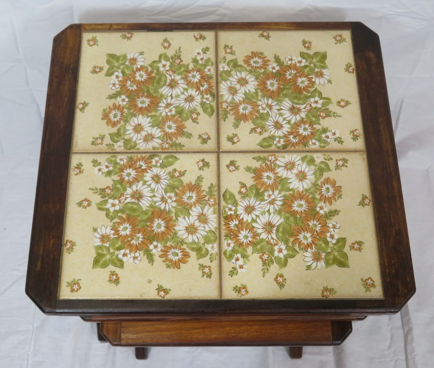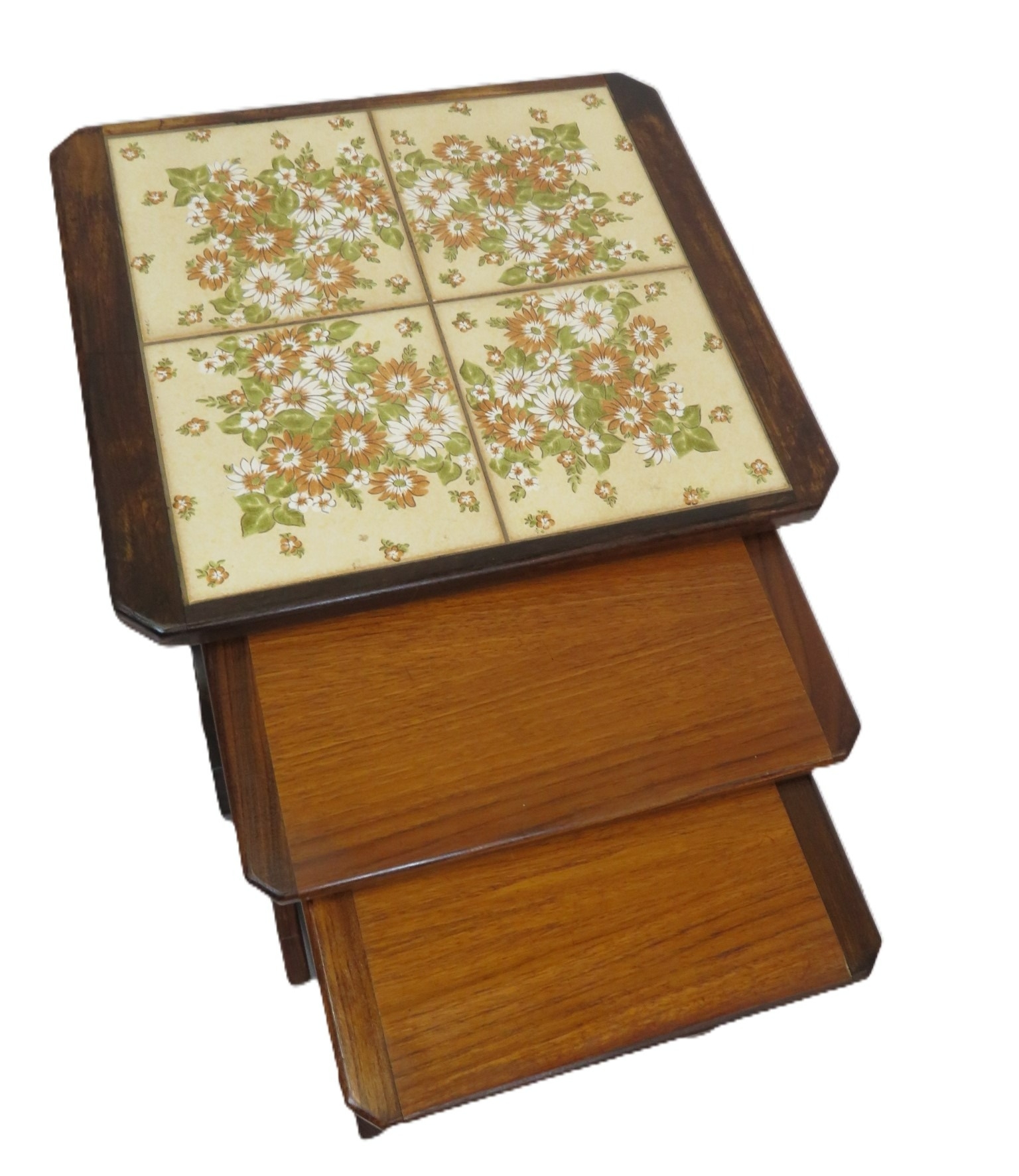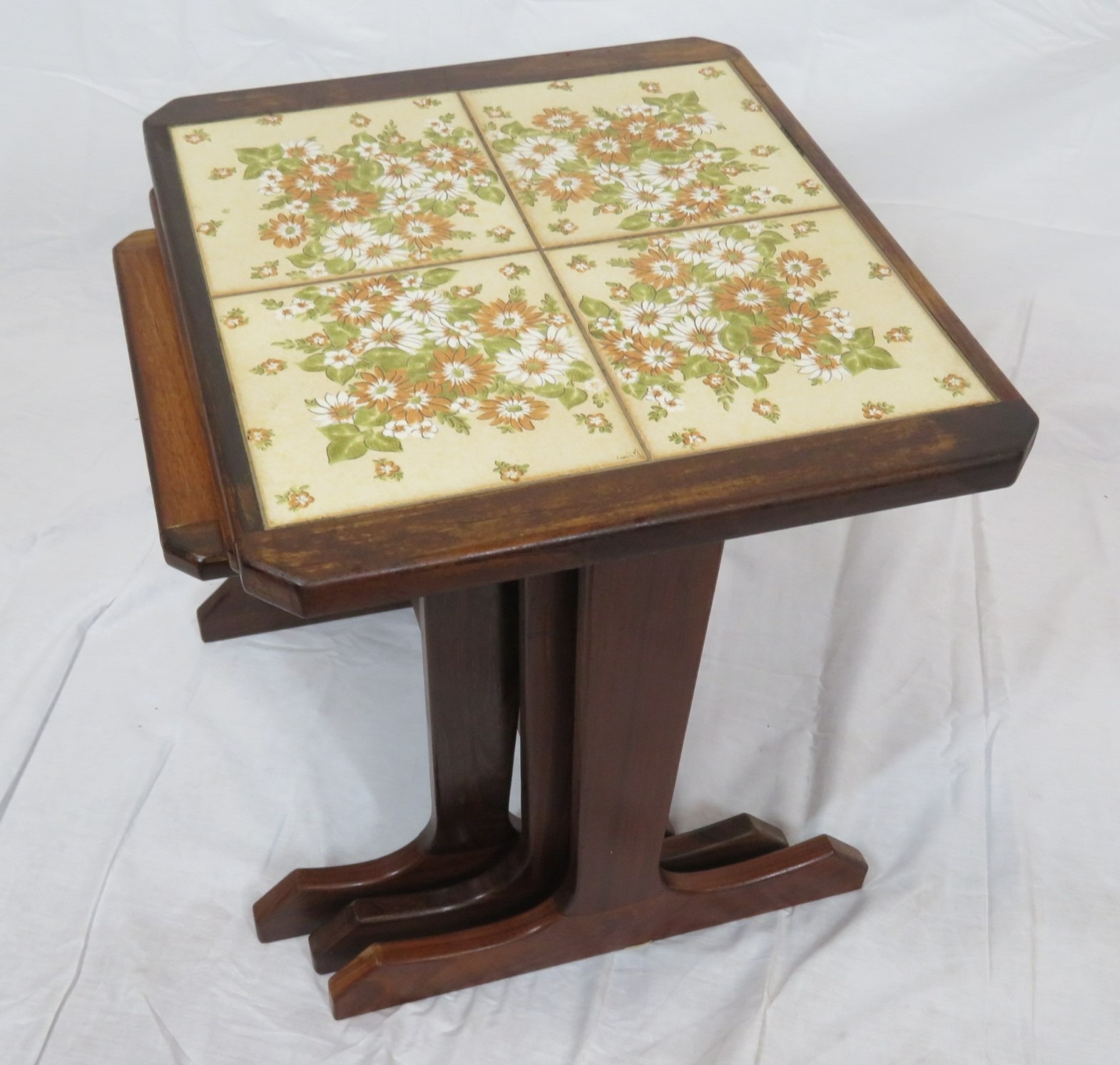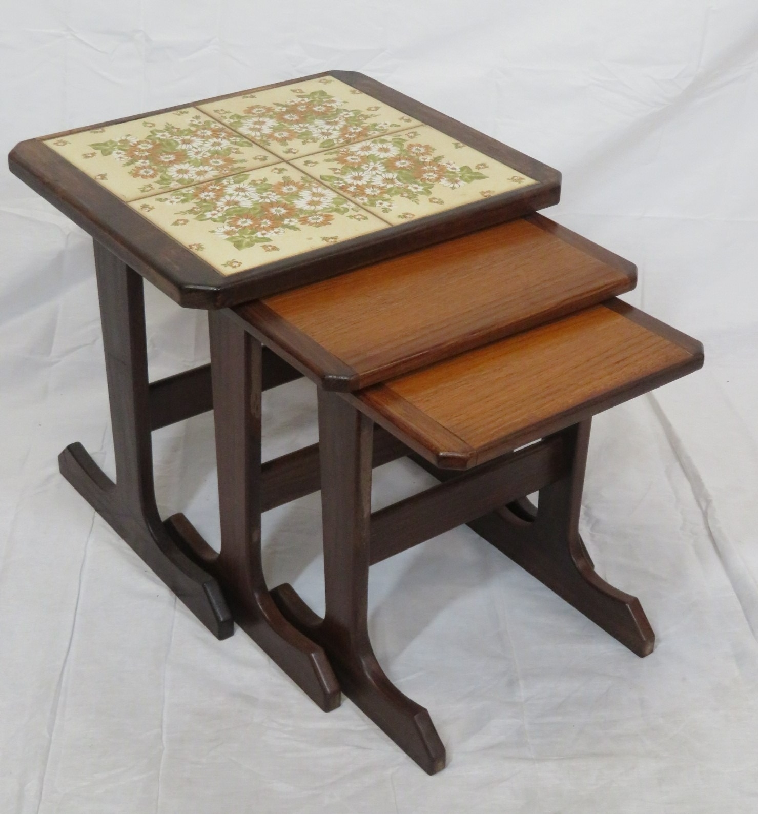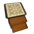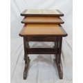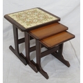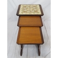 Nest of 3 G-plan tables, top one with tiled insets on oblong plinths