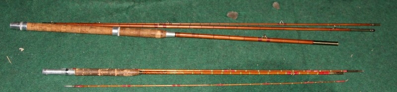 Two vintage split cane fishing rods: 3 piece Stream Fly by Lee of Reddich and 3 piece Test by elasticane