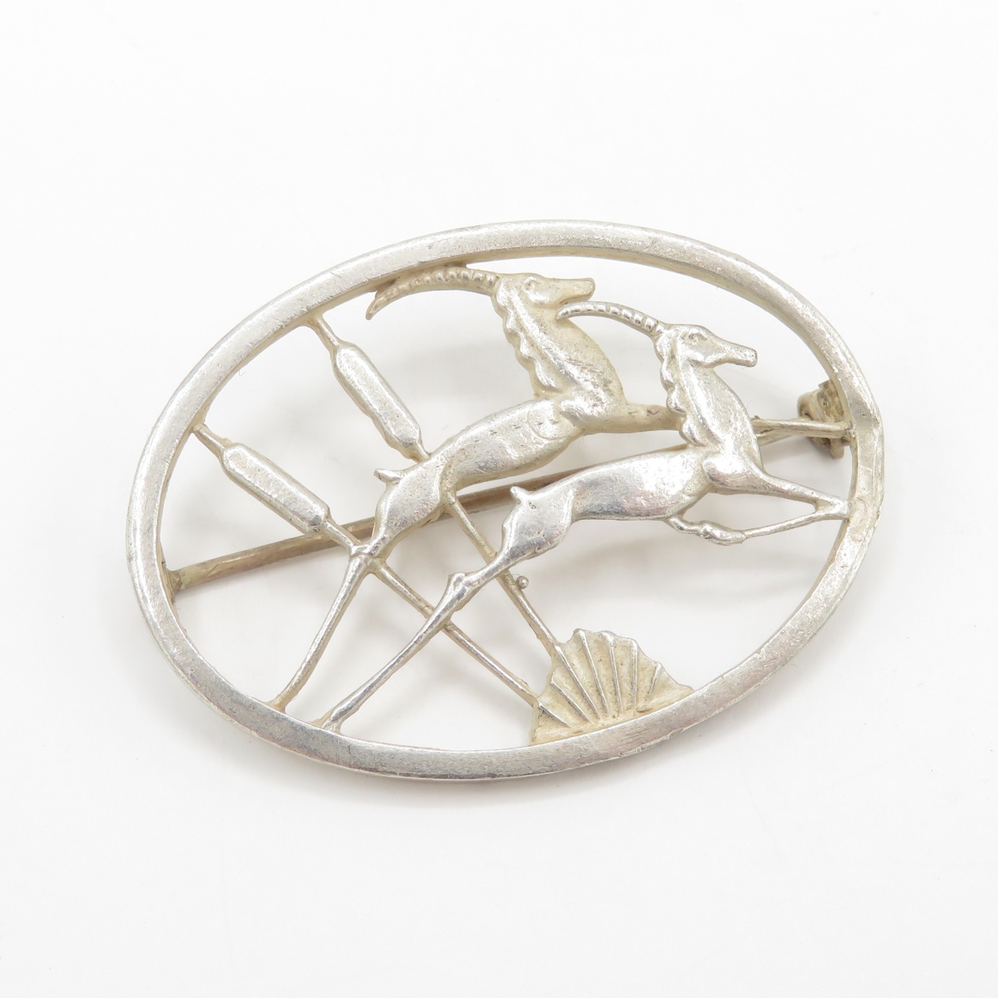 Sterling Silver George Tarrat Leaping Gazelles Brooch No. 117 9.8g