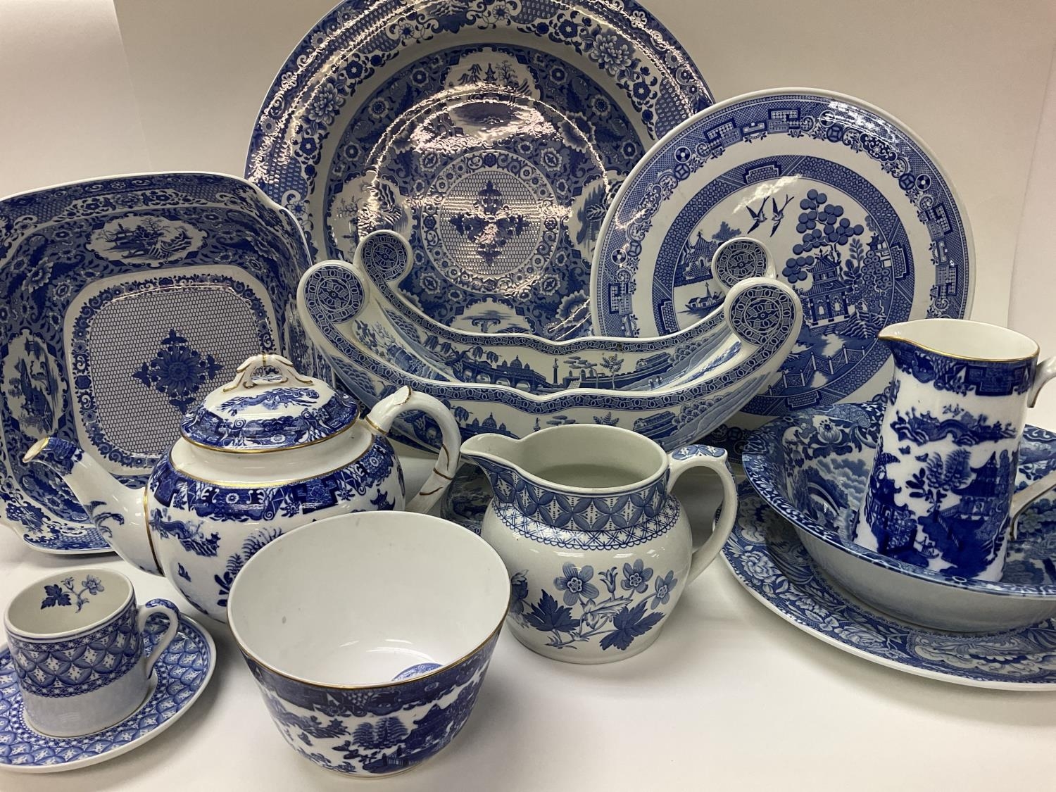 A collection of good blue and white pottery and porcelain including a Spode And Royal Doulton.