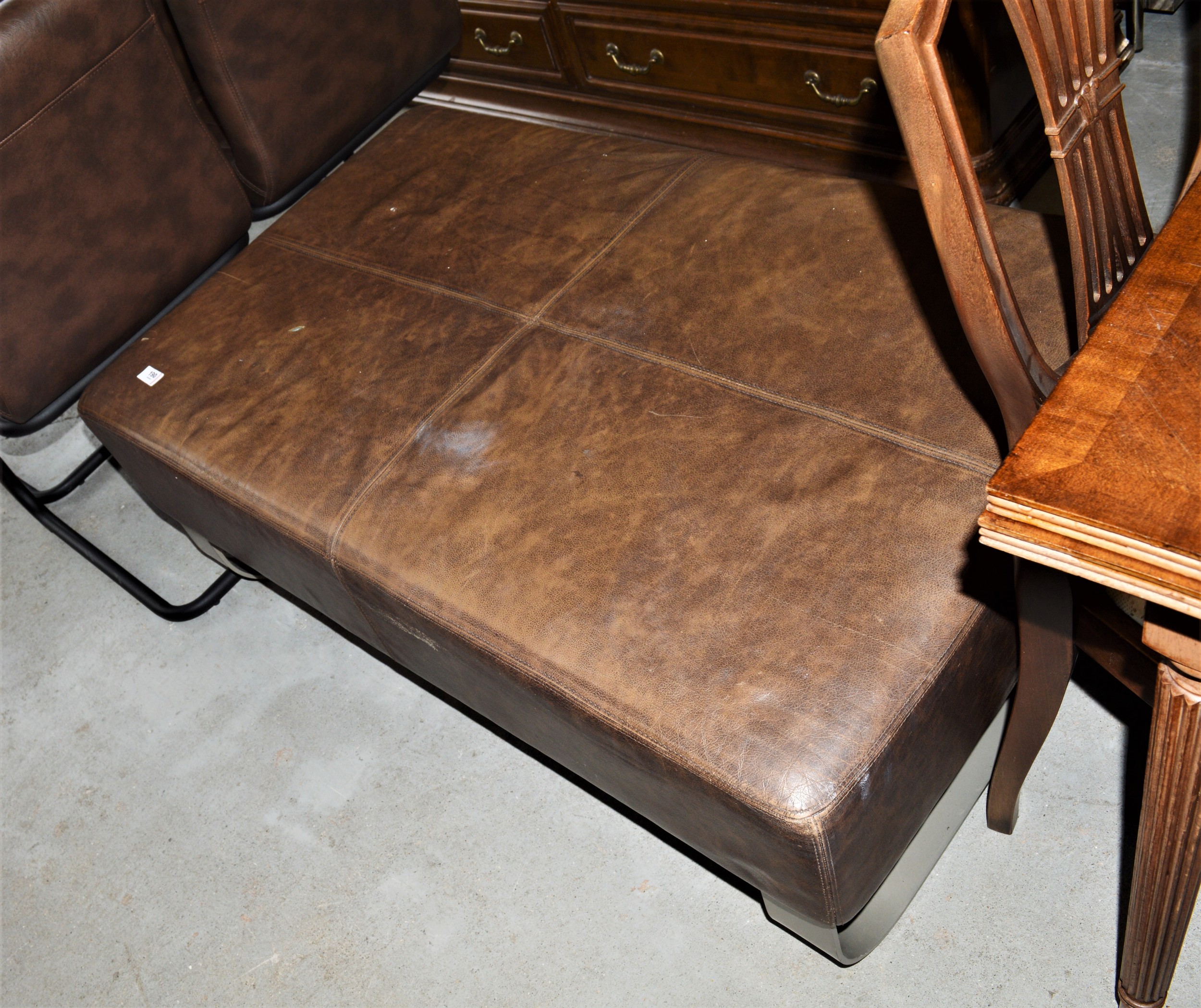 Large Seat/Footrest having Modern Steel Curved Leg Base and "Antique Brown Leather" Seat - Dimensions 44'' Length x 26.5'' Wide Height 16.5'' High