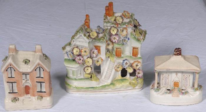 3 early pottery incense burners in the form of houses -