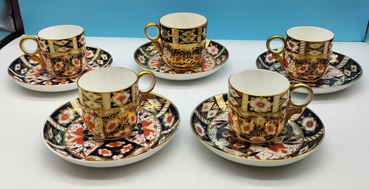 Mixed Royal Crown Derby Cups and Saucers. Pattern 2451. (10 pieces)